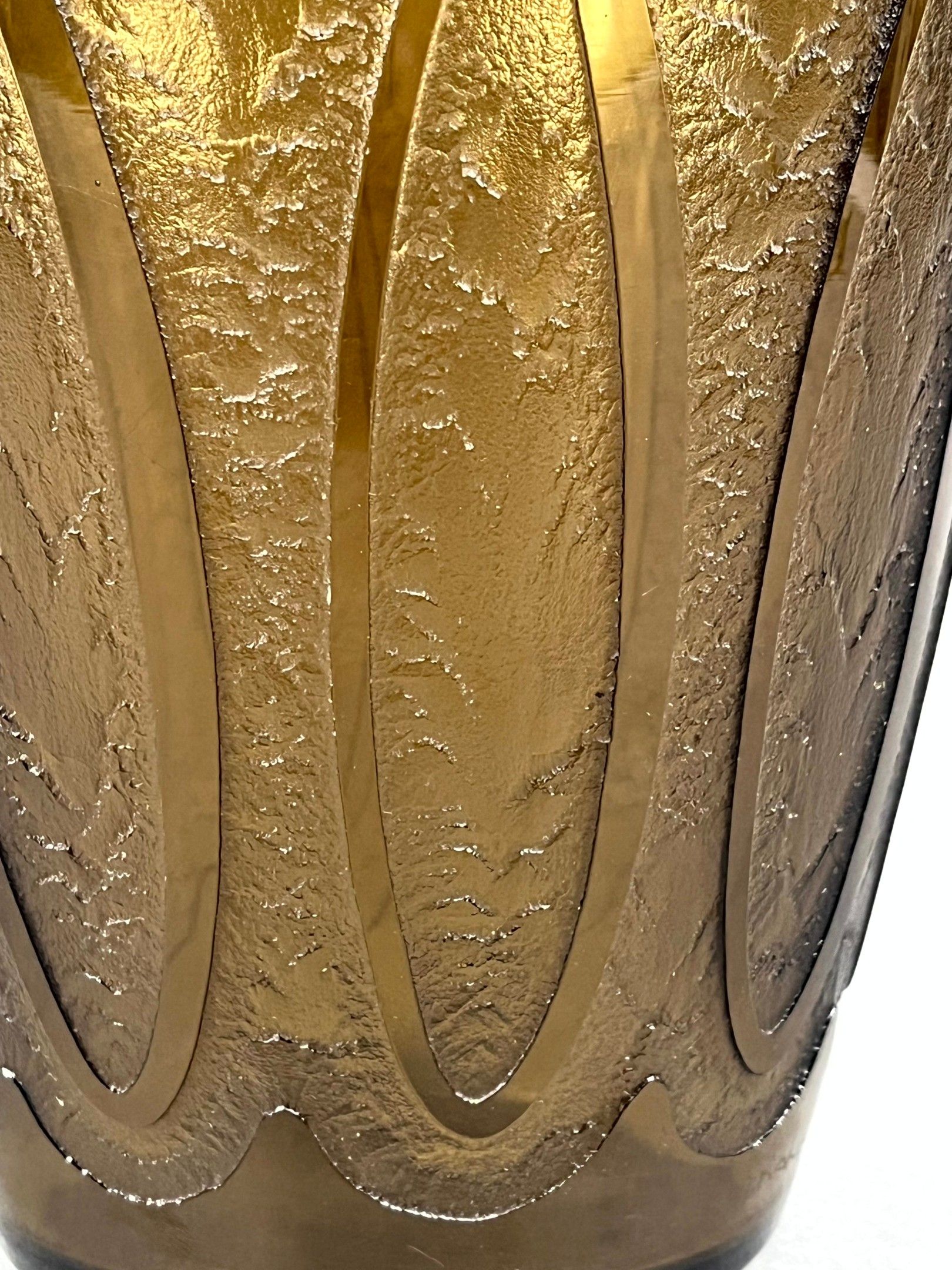 DAUM, Nancy (Lorraine). Art Deco smoked glass vase etched with sinusoidal lines. Signed. Circa 1930. Height 24 - diameter 21 cm.