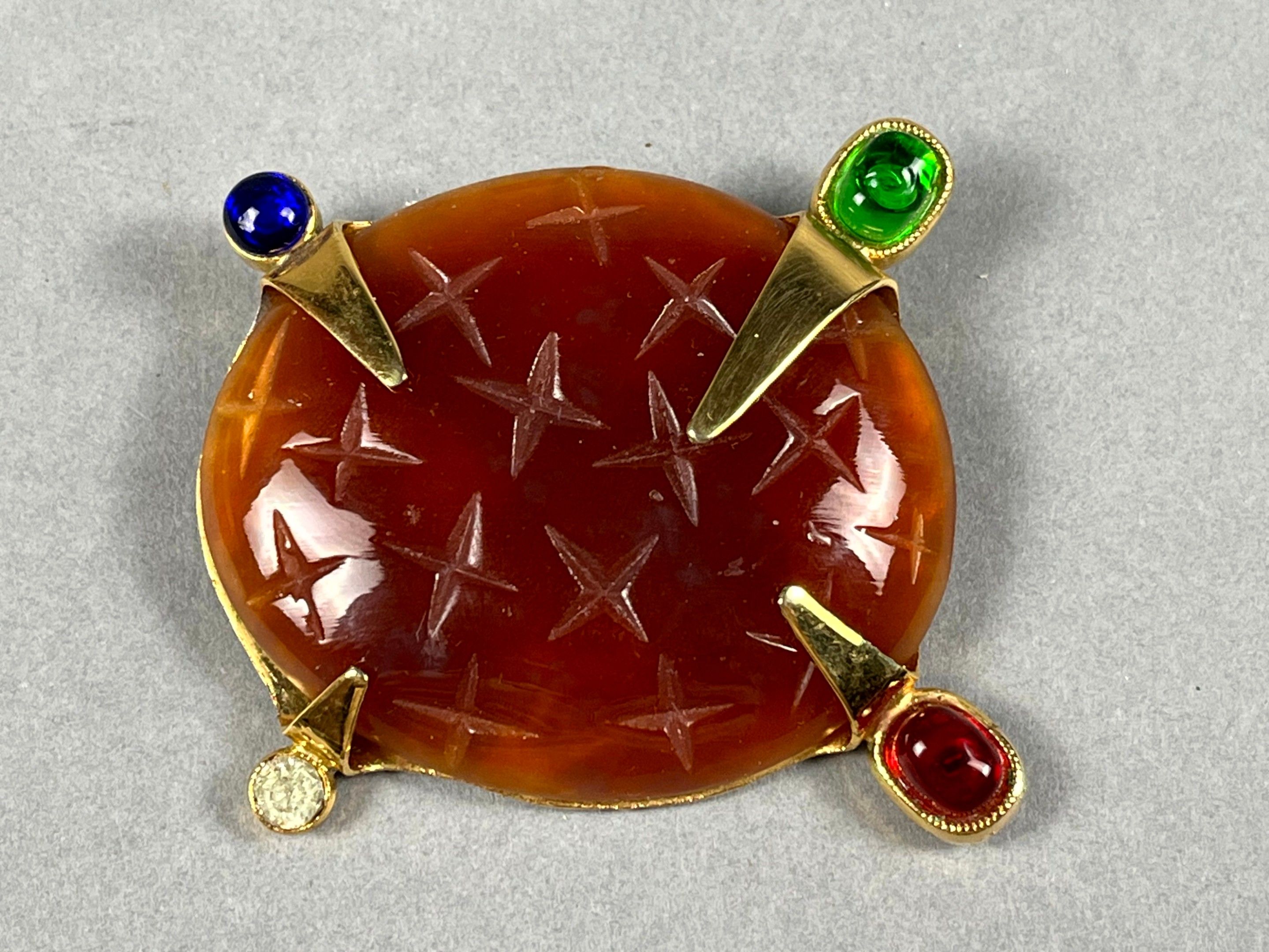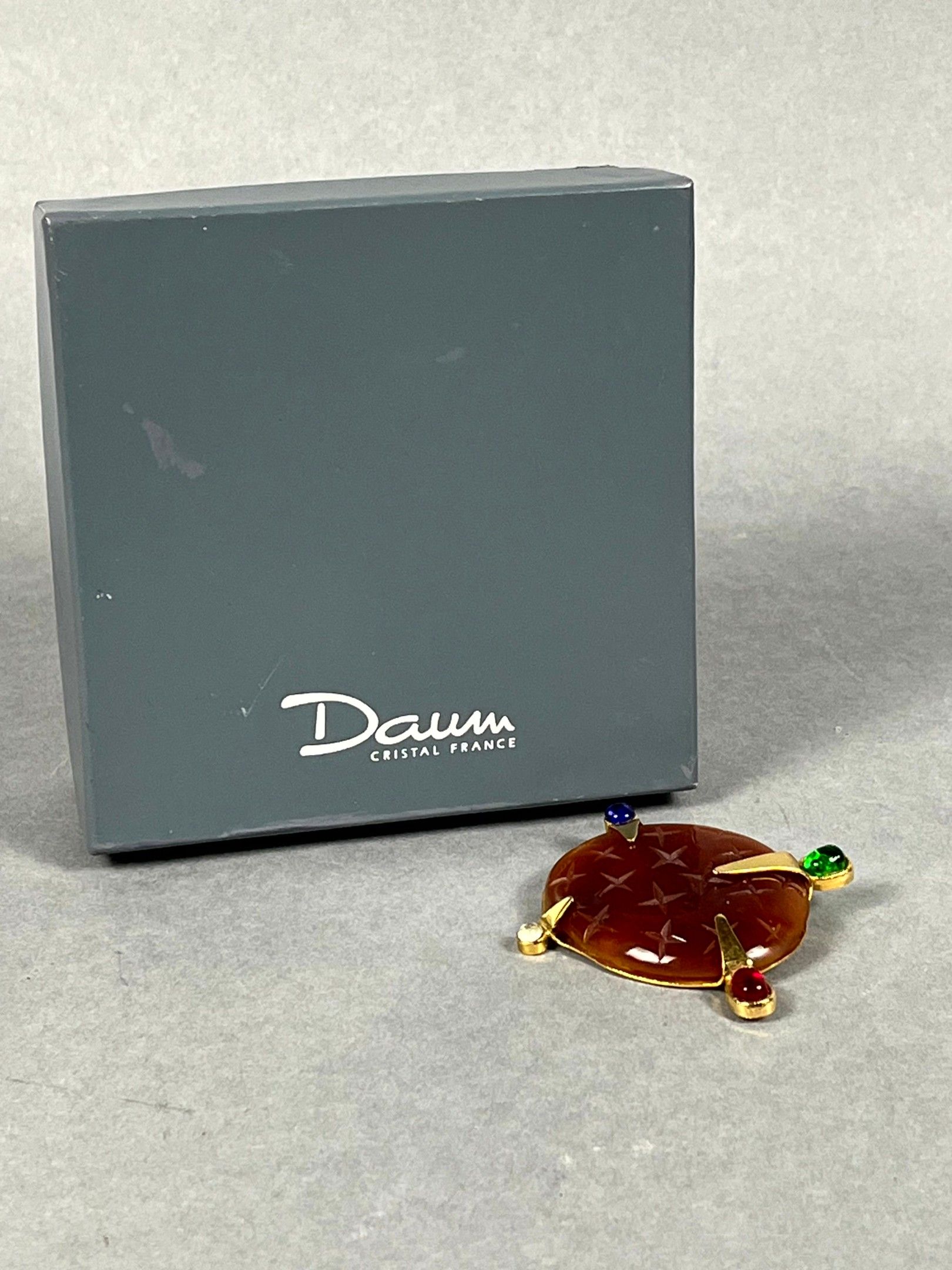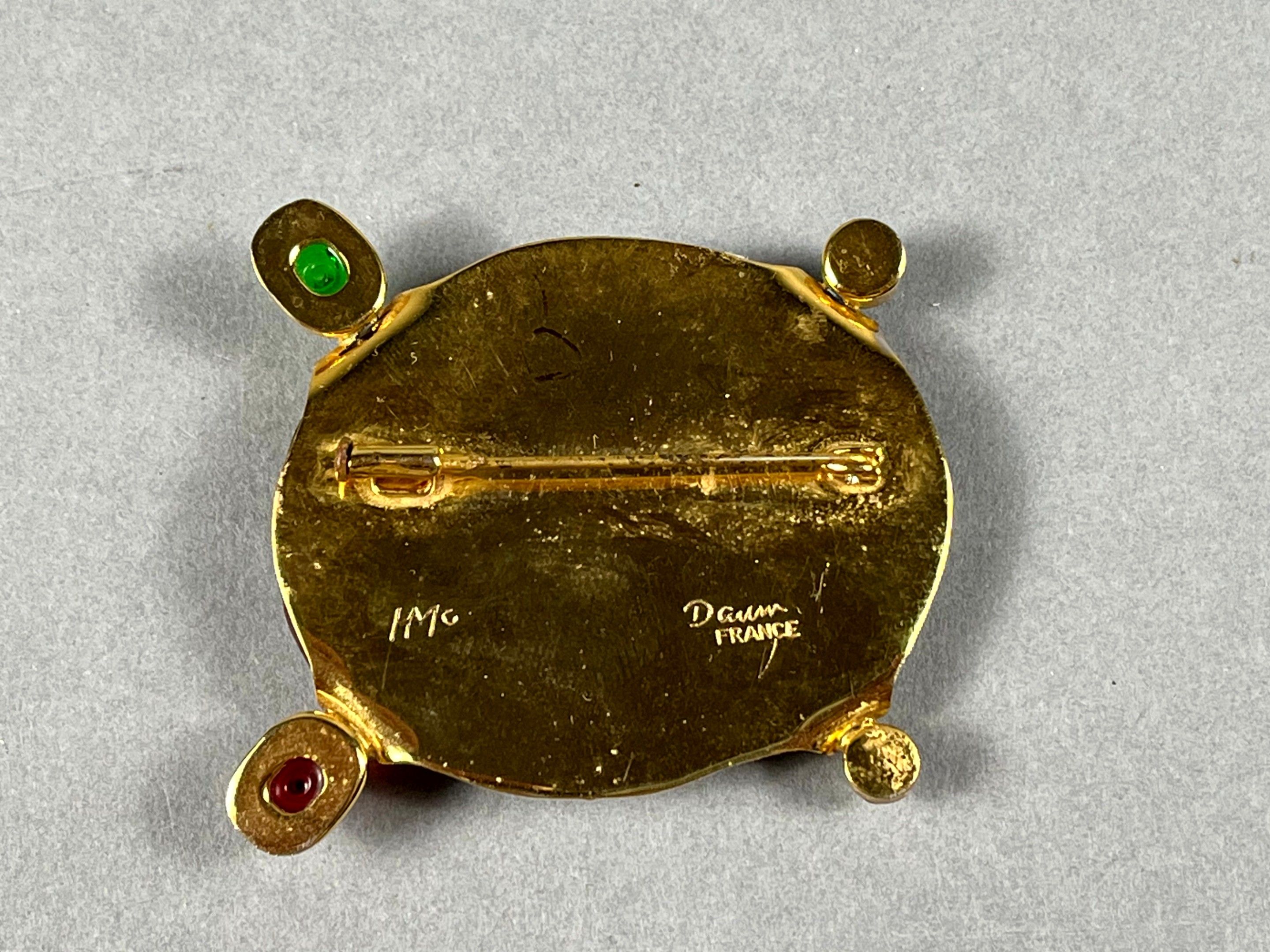 Hilton Mc CONNICO (1943-2018), for DAUM France (Lorraine). Brooch in pâte de verre with gilt metal mounting. Signed. Maximum width: 5.5 cm. With box.