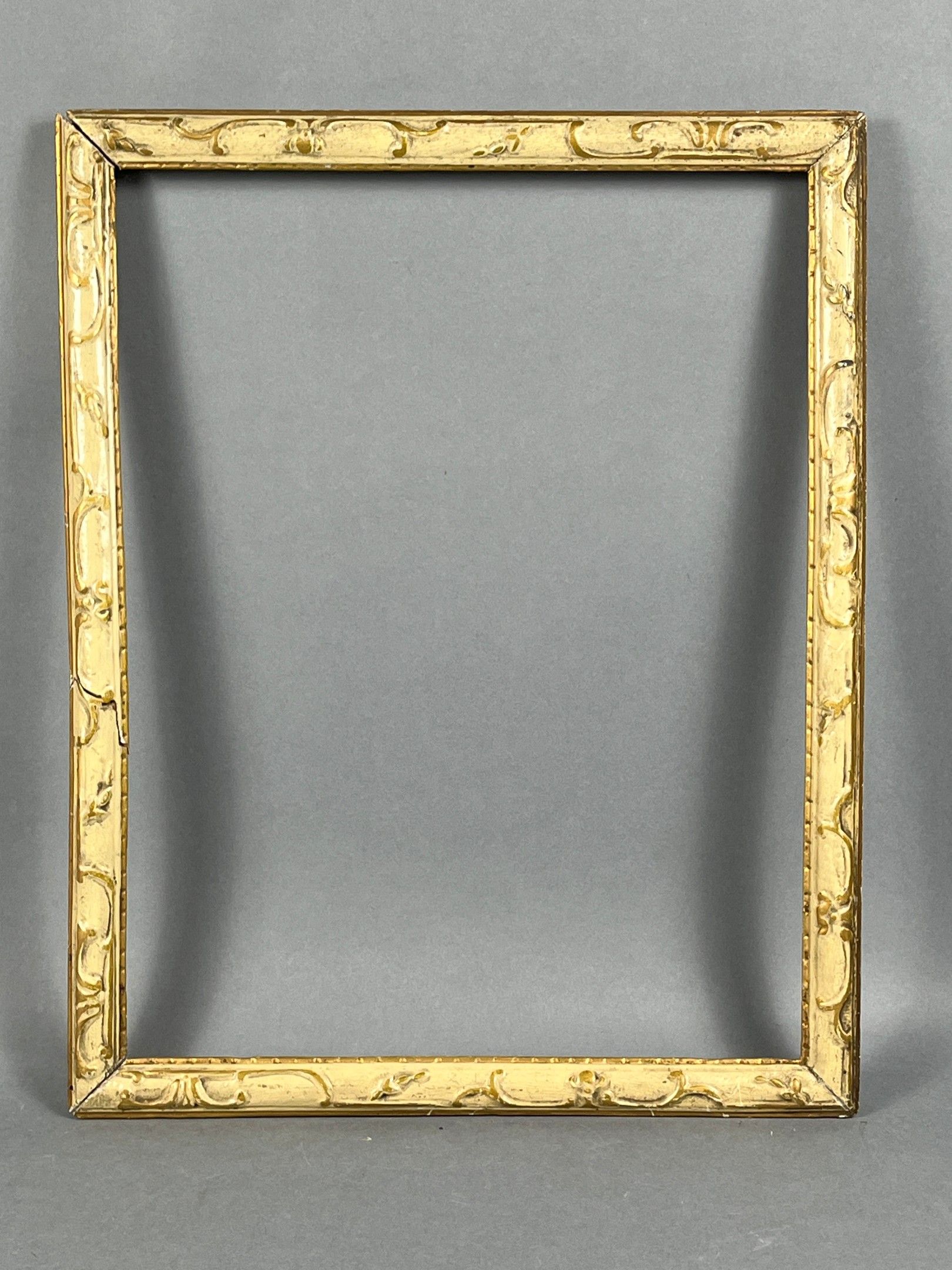 A Louis XV period frame with a half-length rod carved with arabesques. 18th century. Rebate dimensions: 55.5 x 43 cm. Overall dimensions: 60 x 48.5 cm.