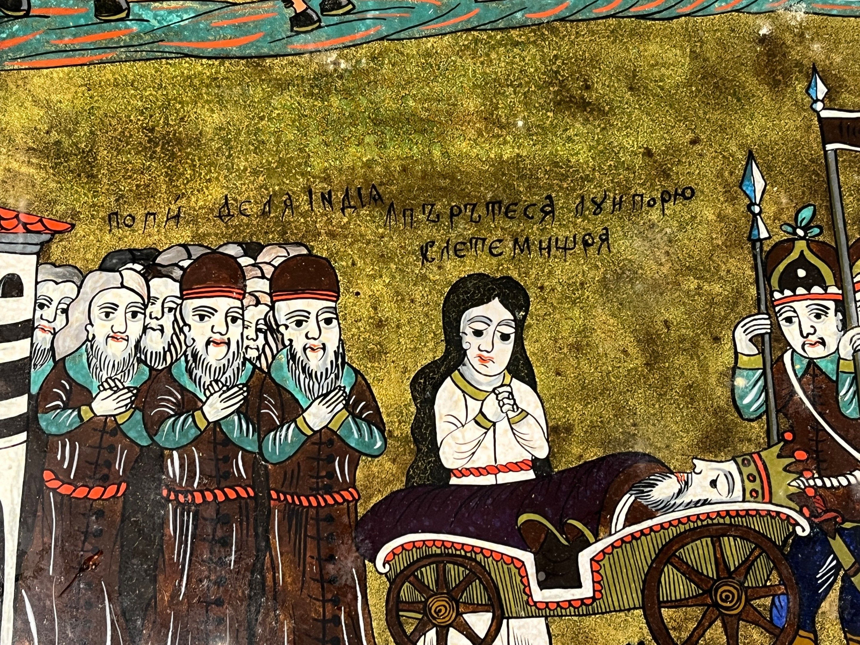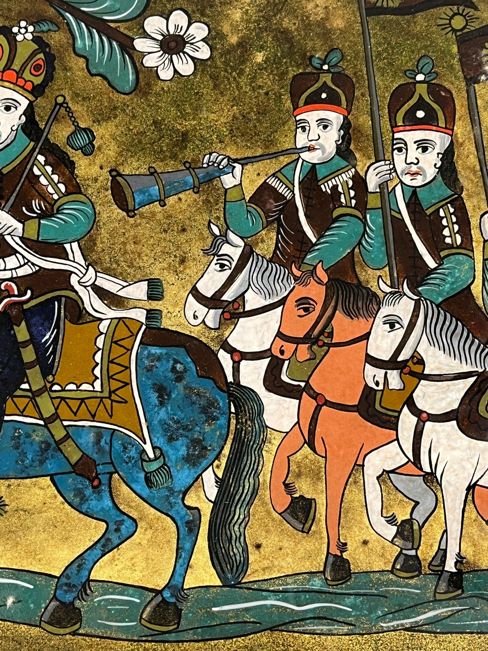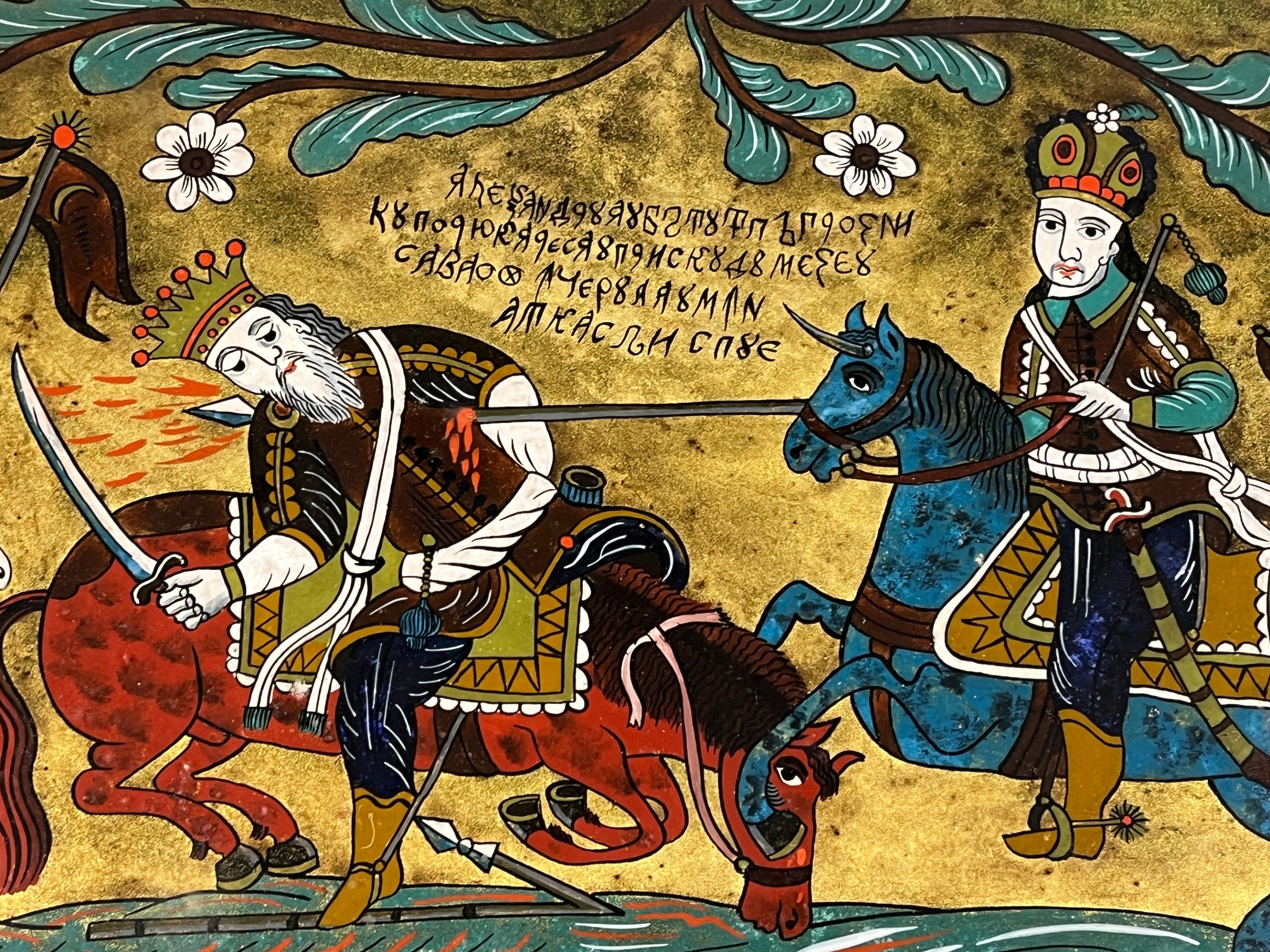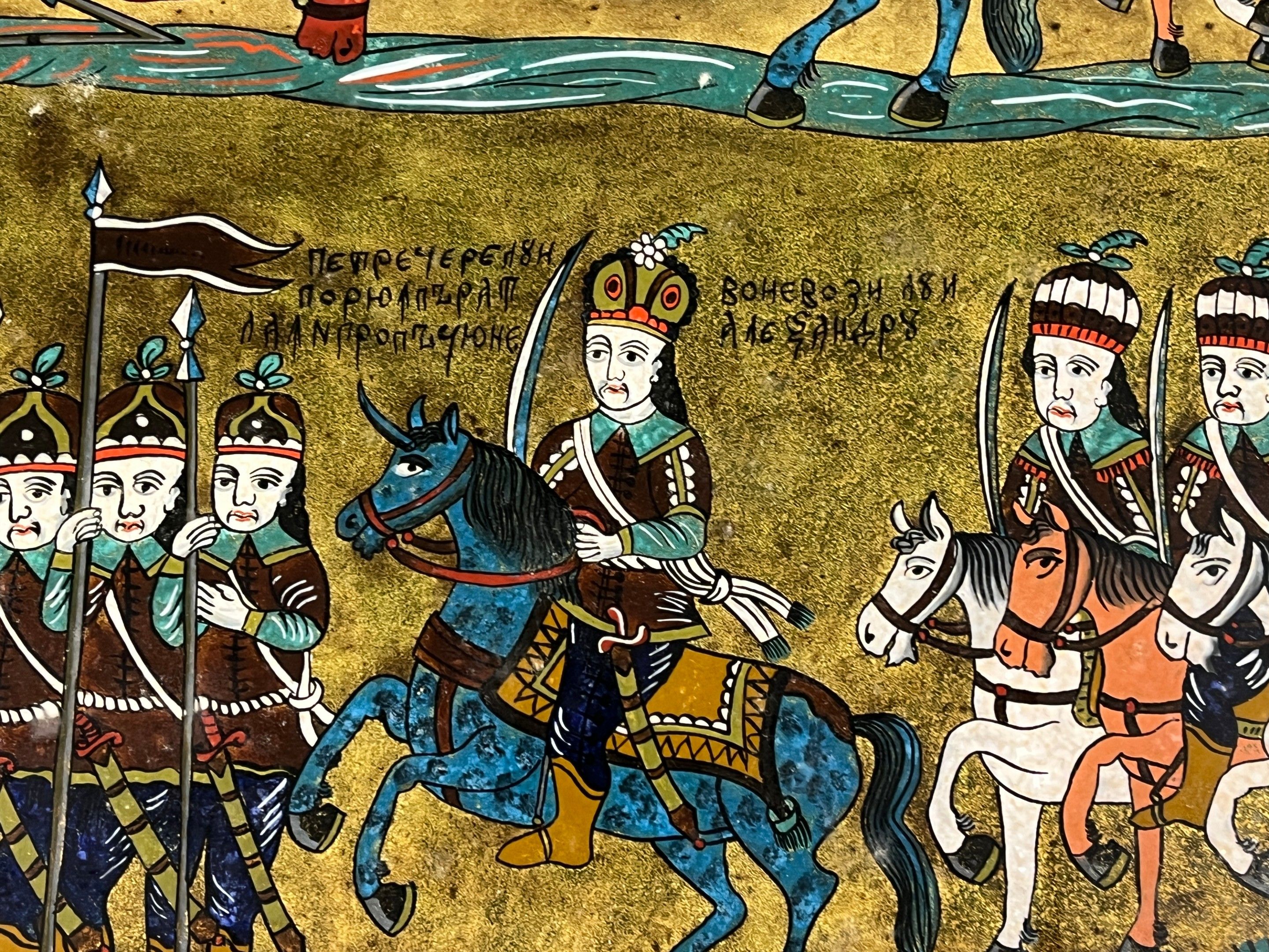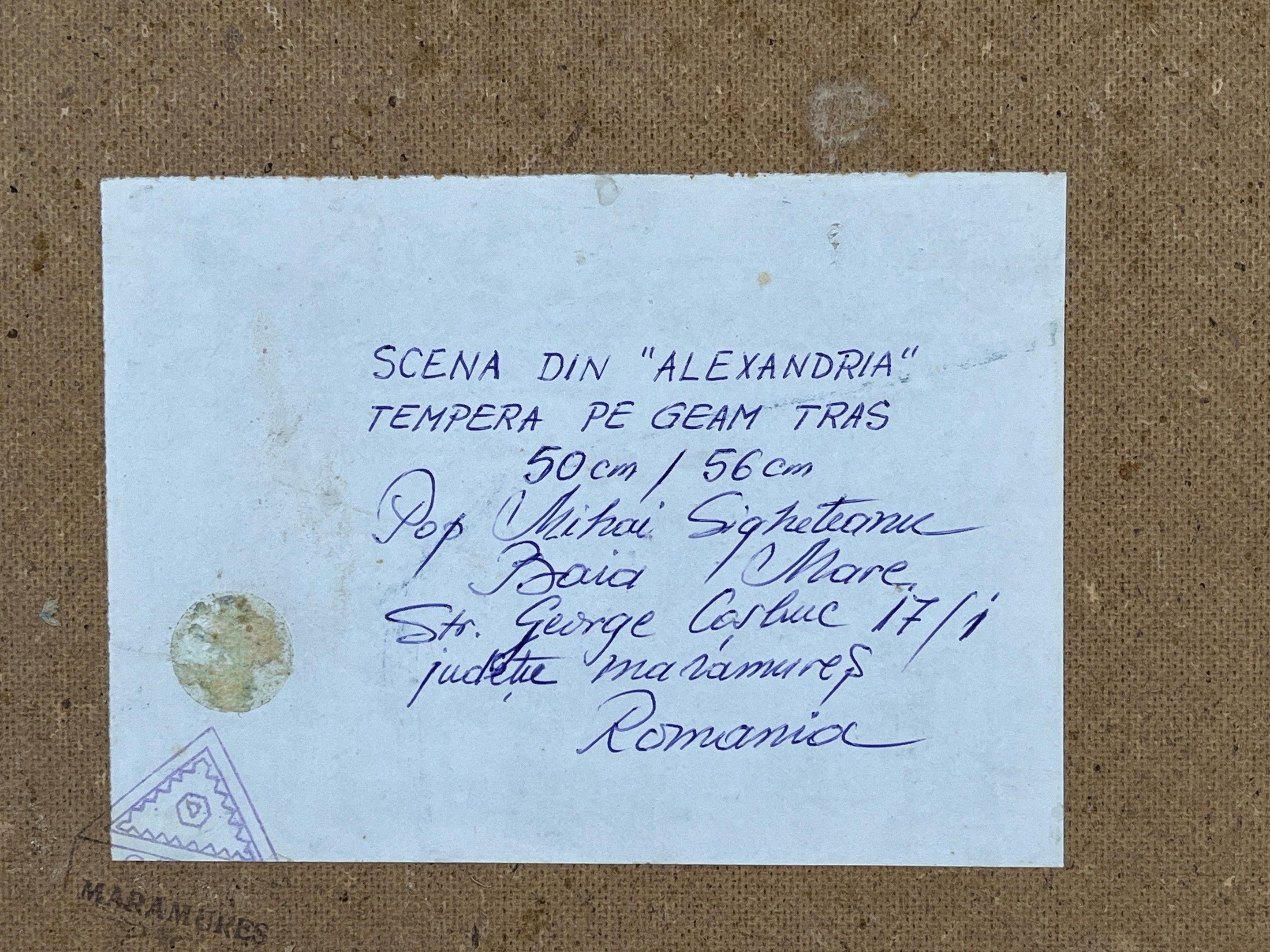 Pop Mihai SIGHETEANU (20th century), Romania. Fixed under glass representing the epic of Alexander the Great. Signed lower right and dated 1983. 50 x 56 cm.