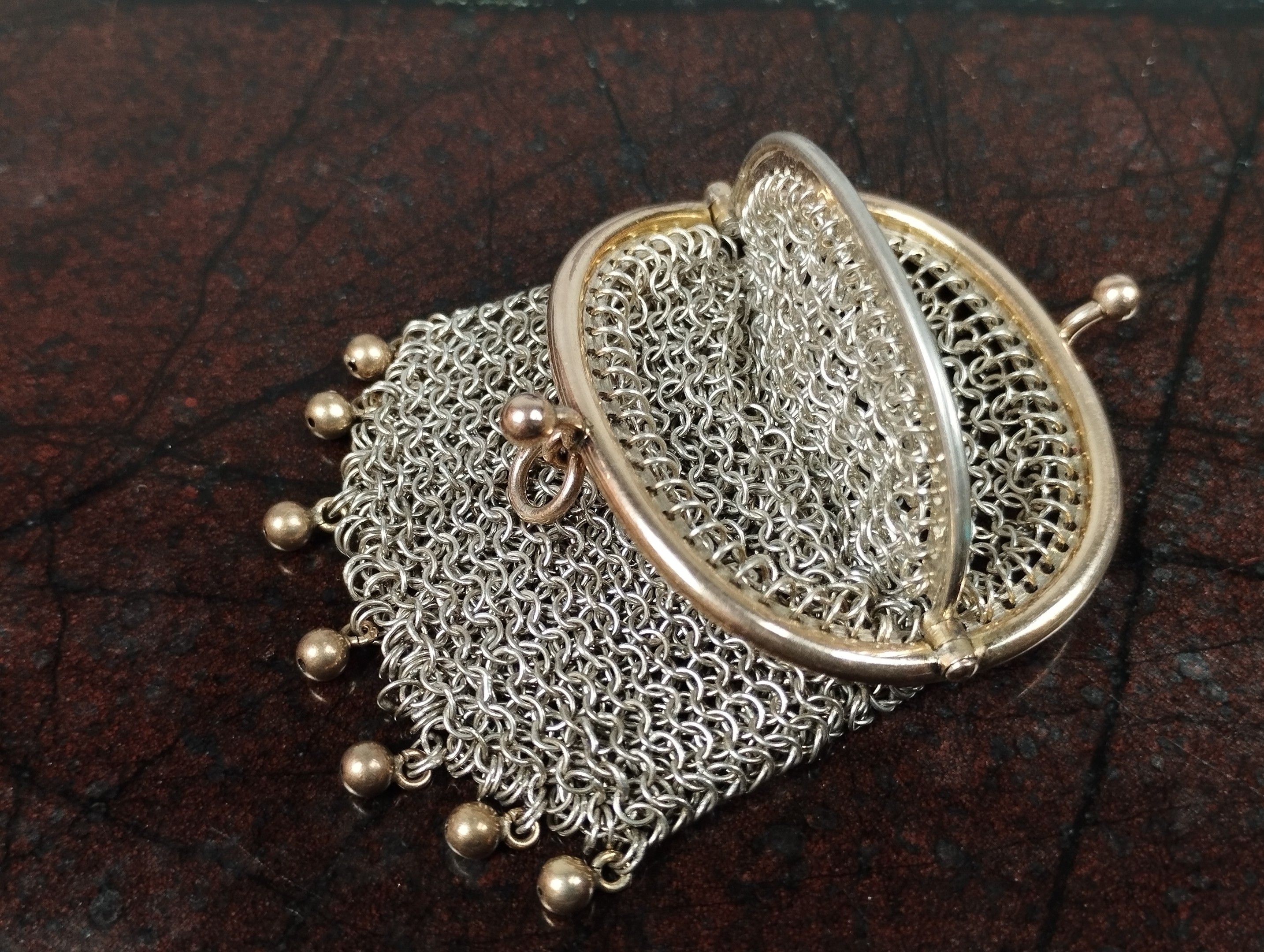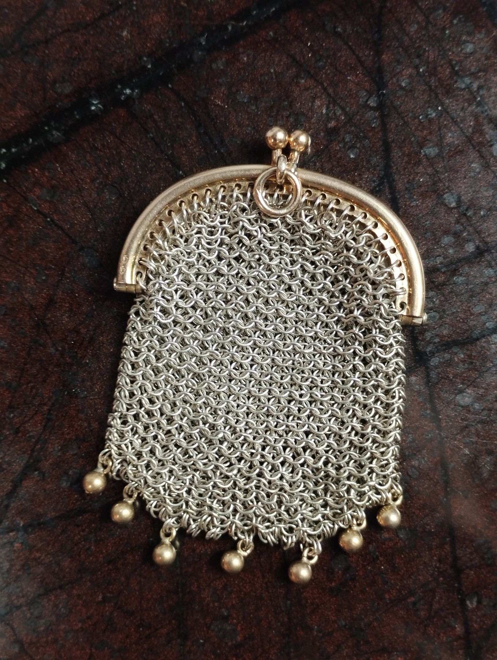 Charming little chainmail purse in silver and vermeil (800/00 - boar). Very fine condition. Weight : 30 g.