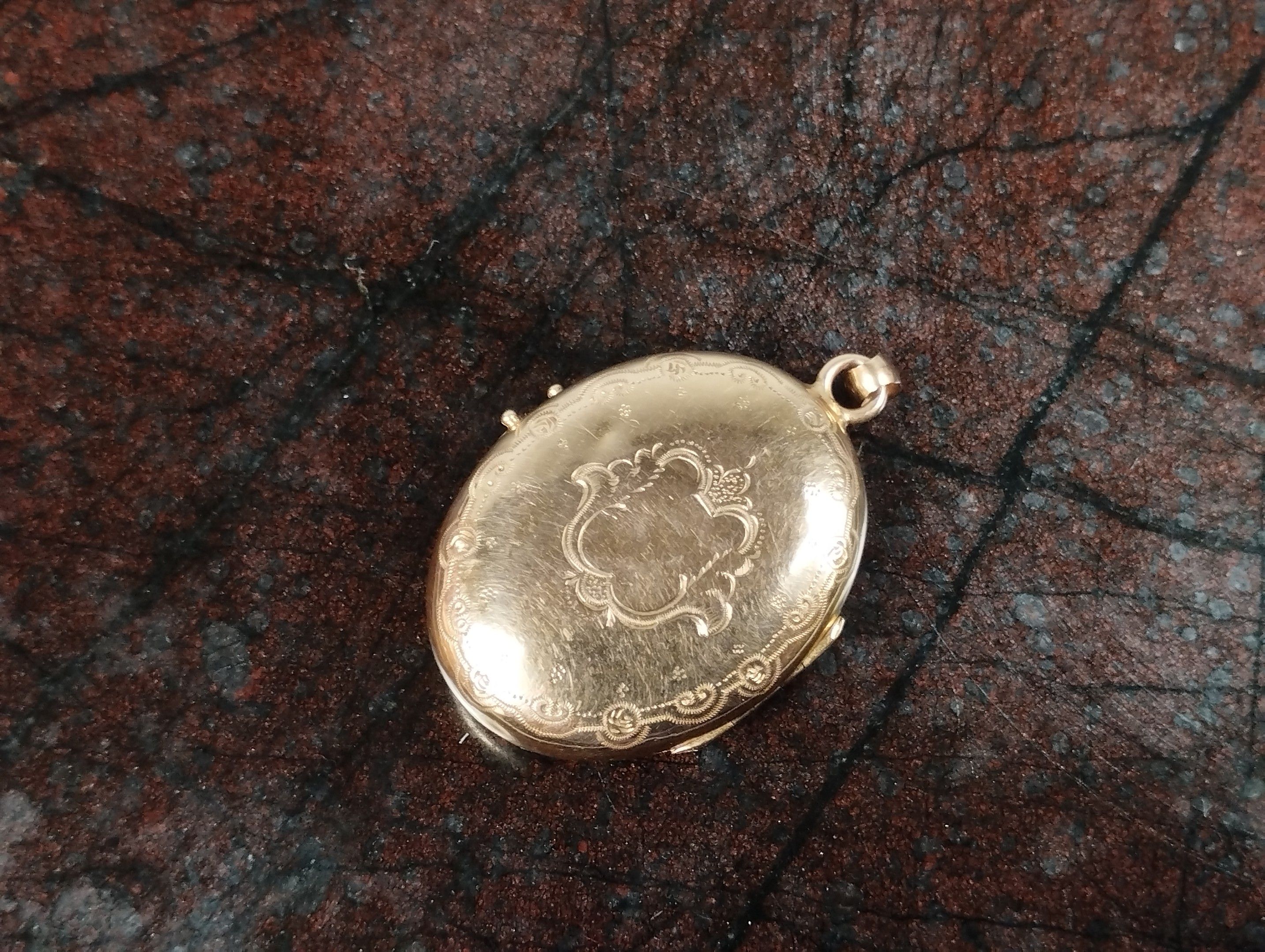 Oval photo pendant in yellow gold (750/00), delicately chase…