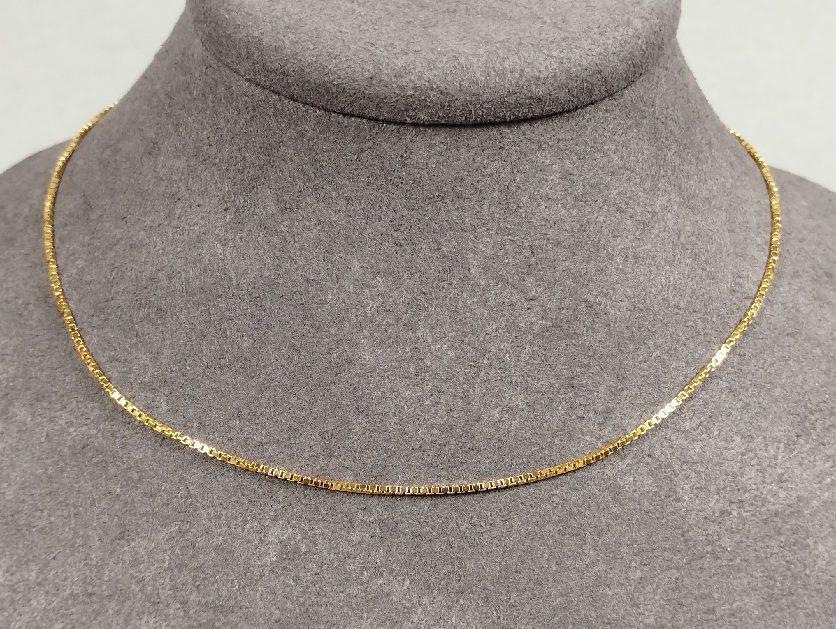 Neck chain in yellow gold (750/00 - eagle head), with Venetian link. Safety chain. Length: 39 cm. Weight: 4.8 g.