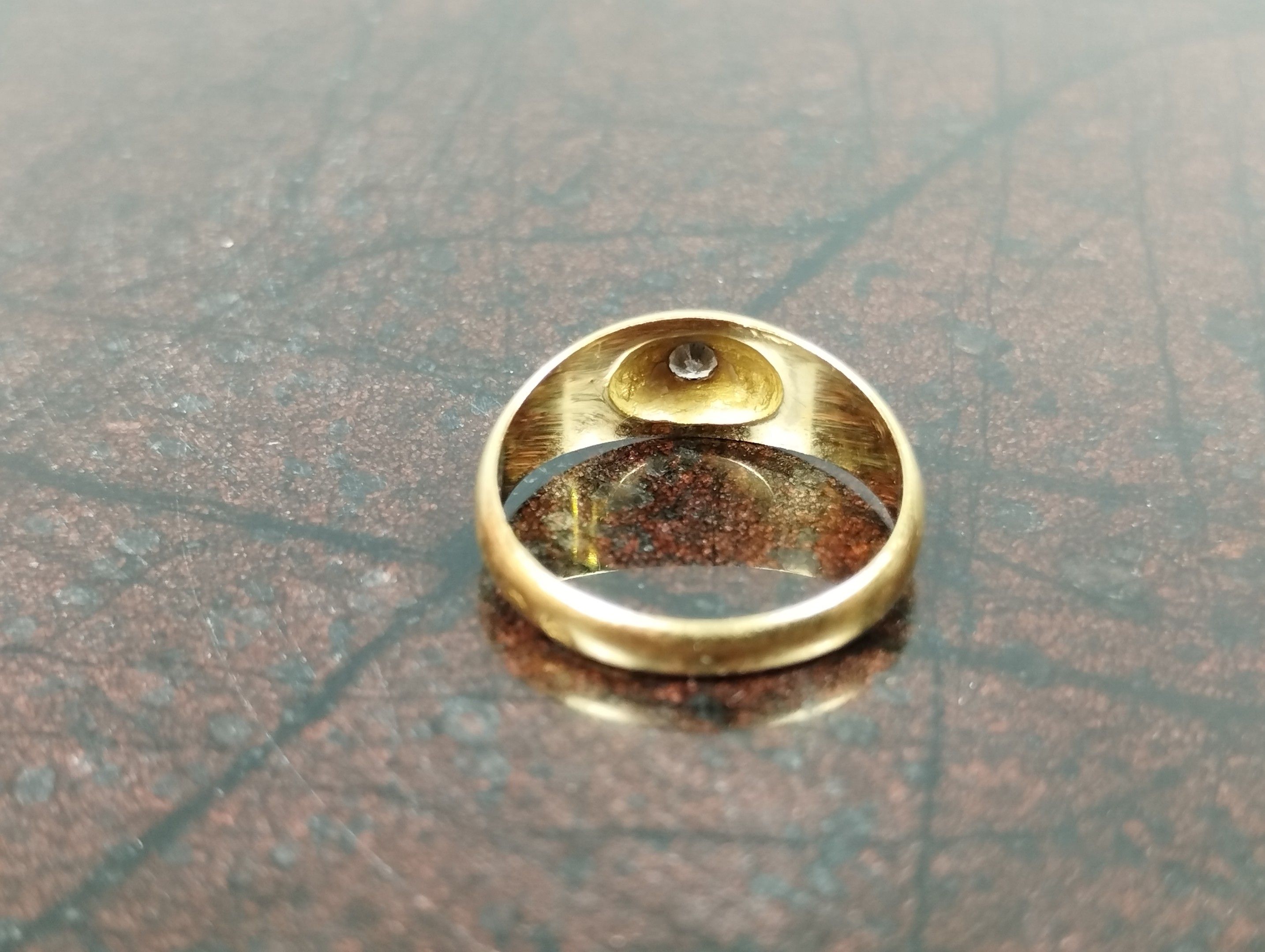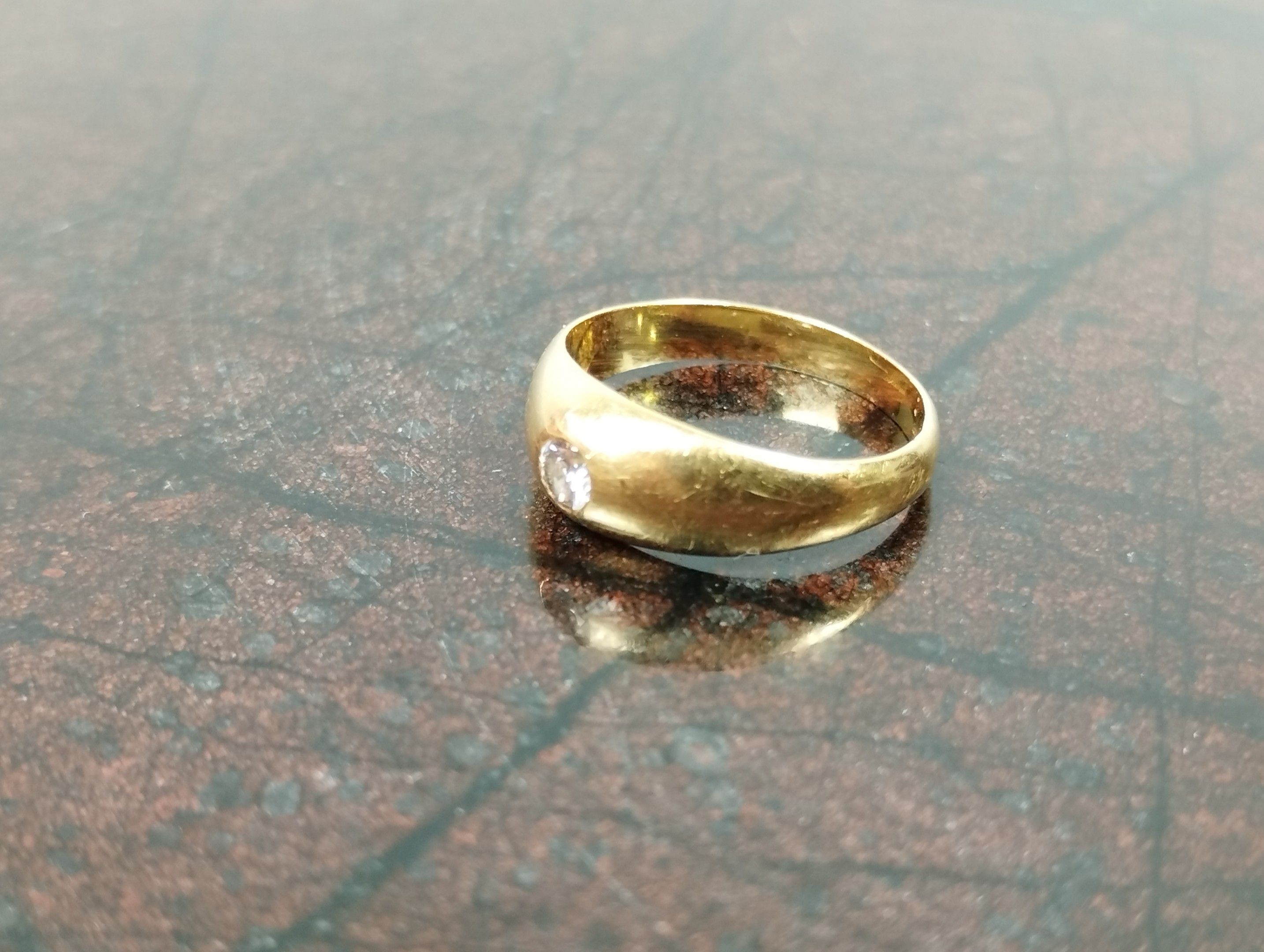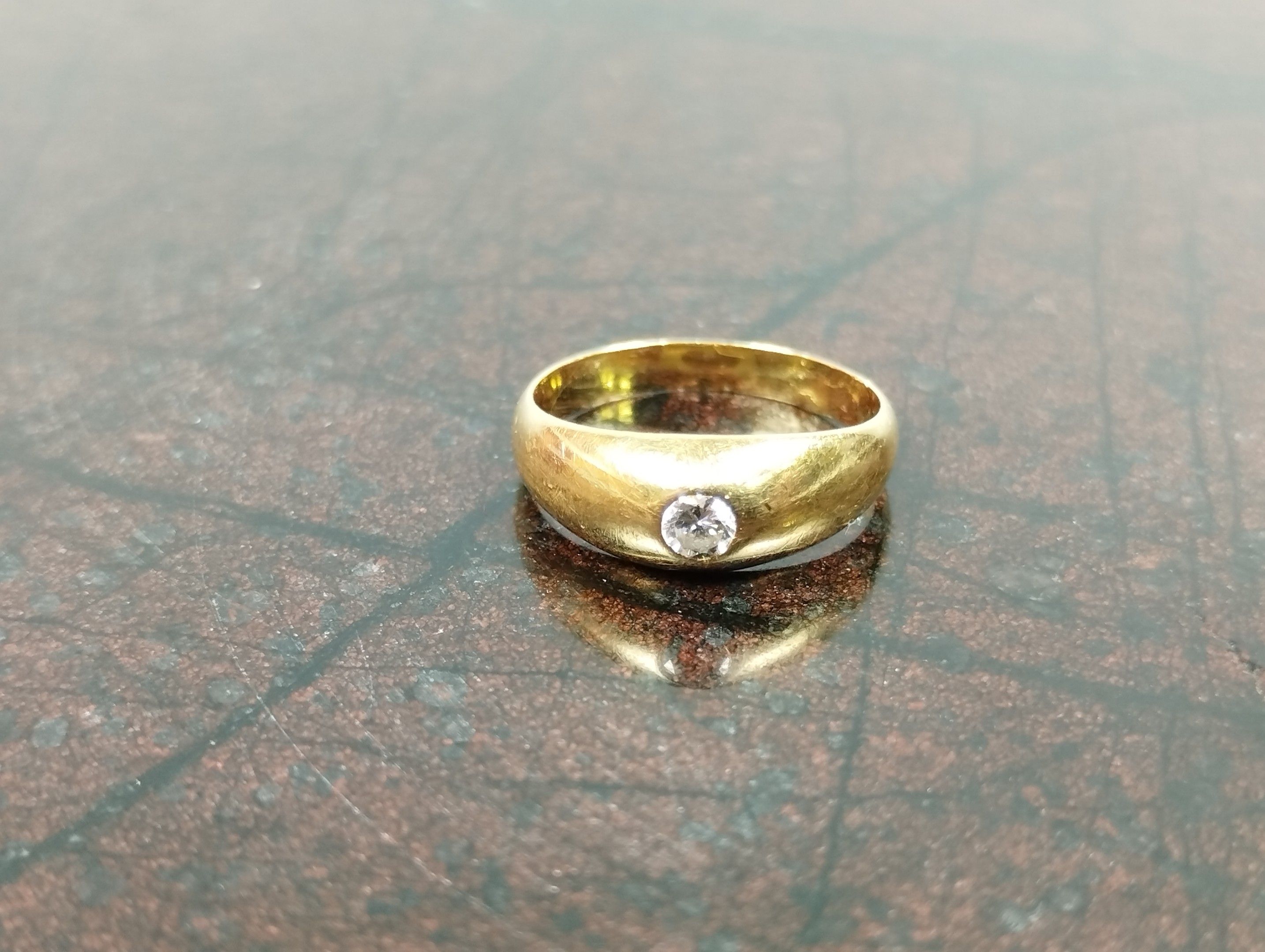 Wedding band ring in yellow gold (750/00 - eagle head) set with a diamond (estimated weight: 0.11 carat). TDD: 43, gross weight: 2.1 g.
