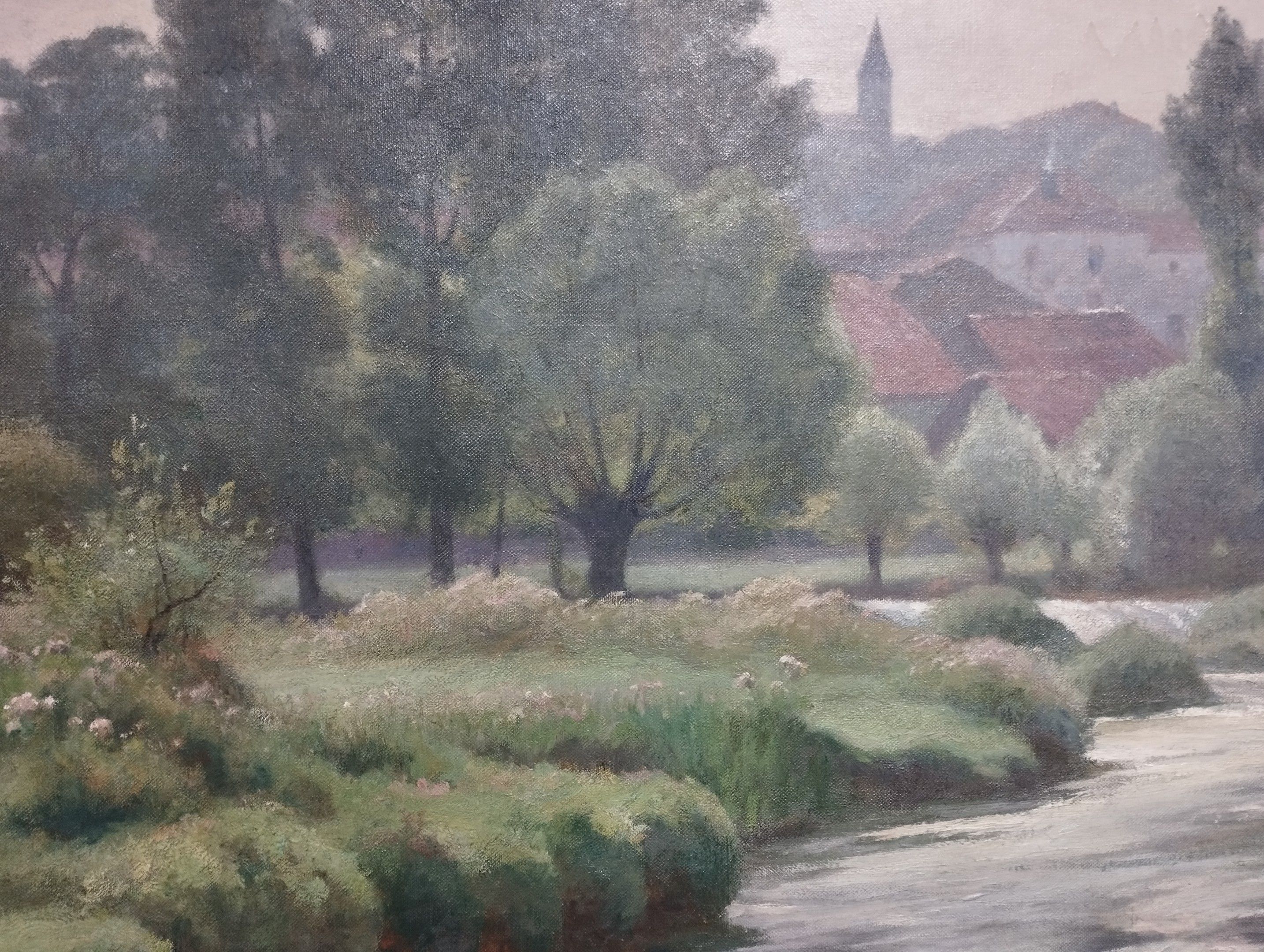Alfred RENAUDIN (1866-1944), Lorraine. View of Ceintrey (Meurthe-et-Moselle). Oil on canvas, signed lower right and dated "1930". 110 x 170 cm. Small patch in the sky on the right (patch visible on the back) and very small accident in a tree.