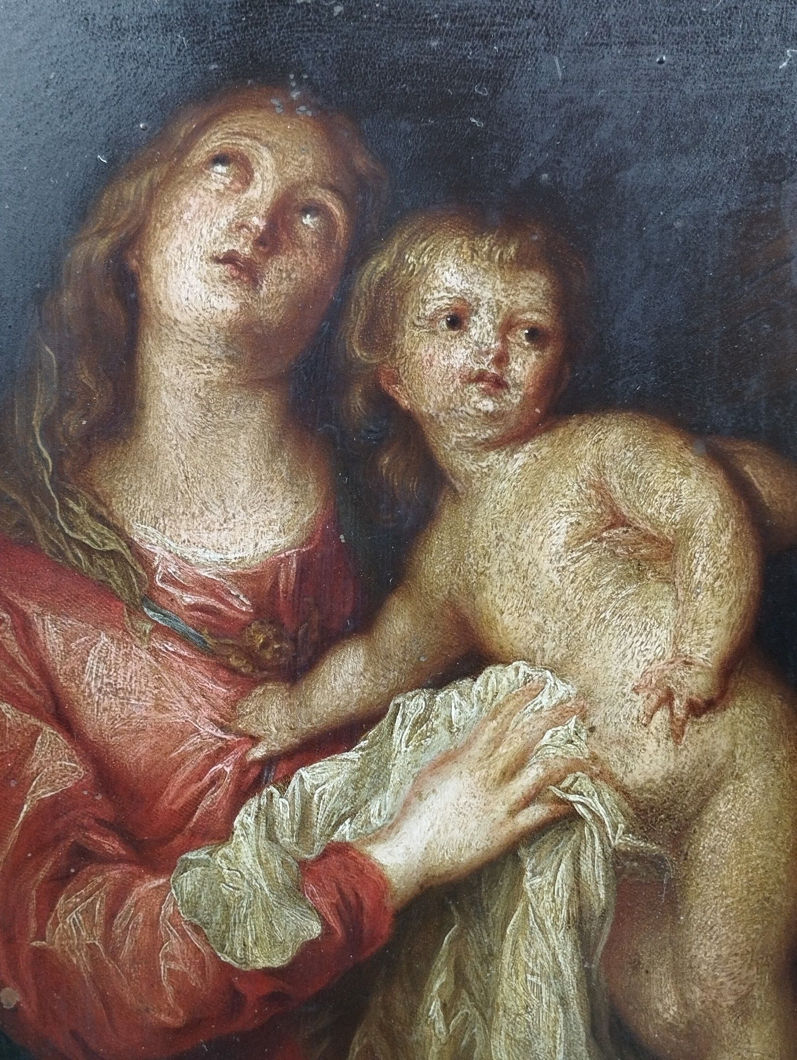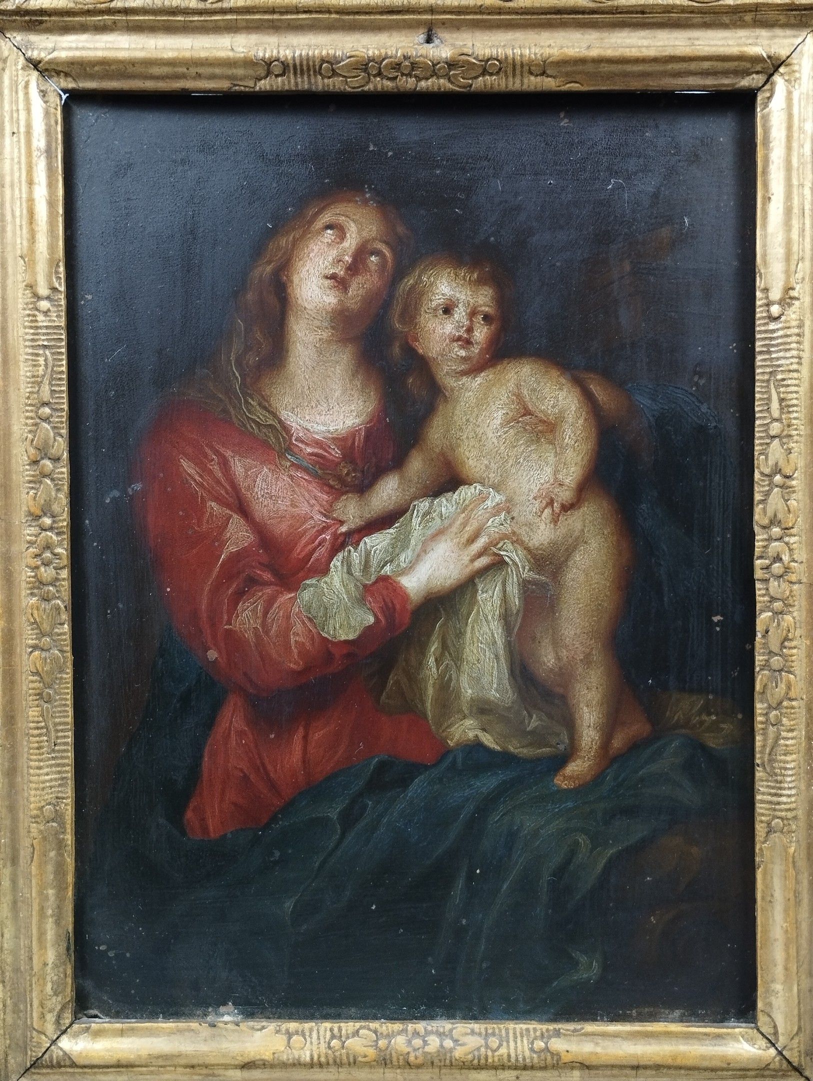 French or Flemish school, circa 1700. Virgin and Child, after the famous painting by Antoine Van Dyck (1599-1641). Oil on copper. 26.5 x 20 cm. Giltwood frame.
