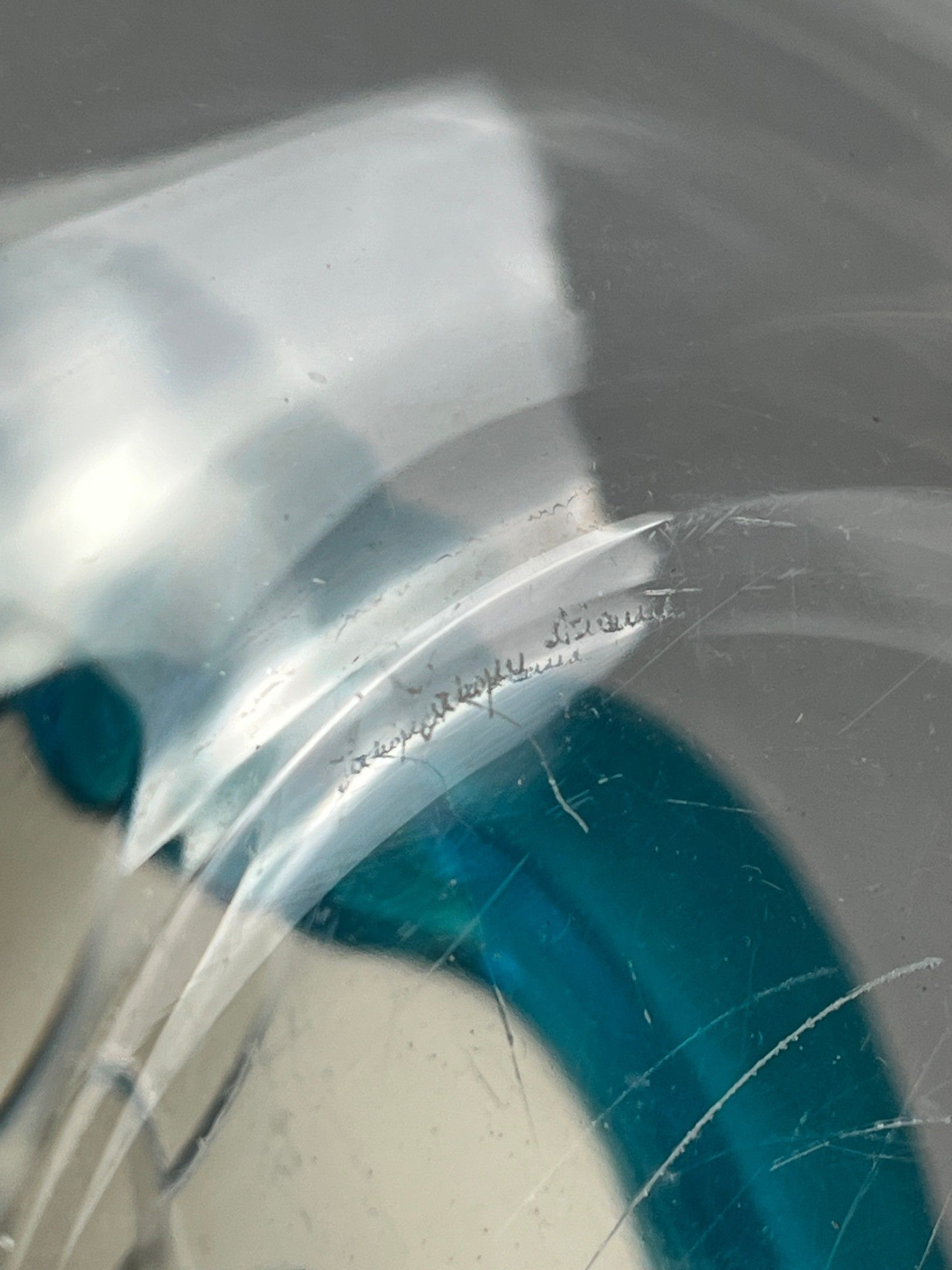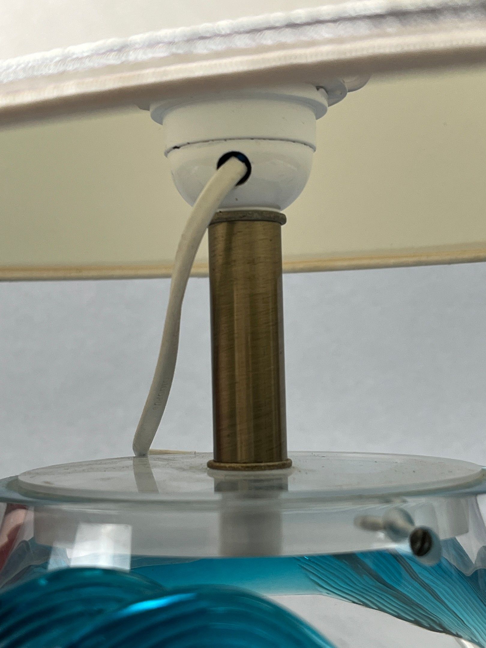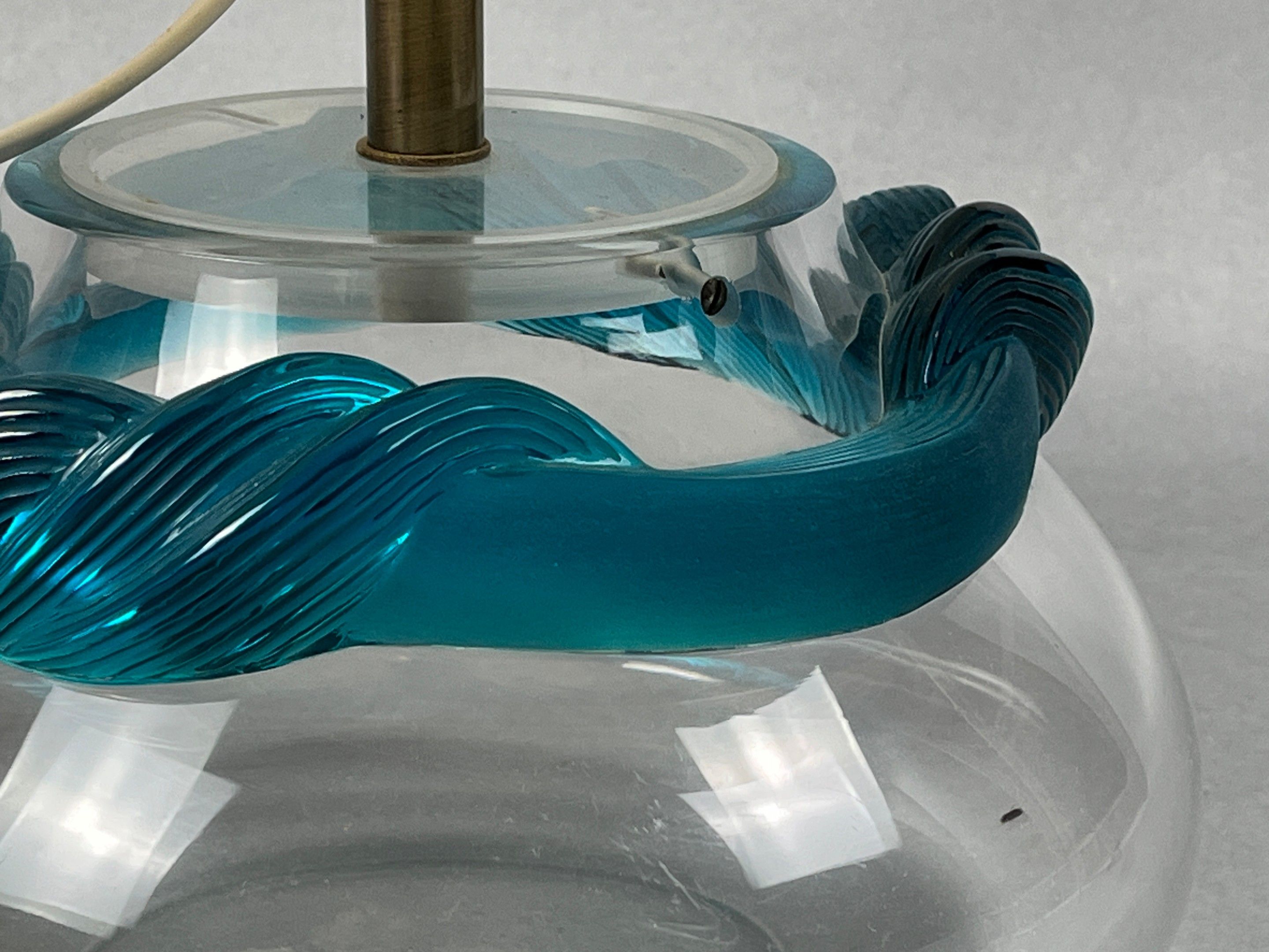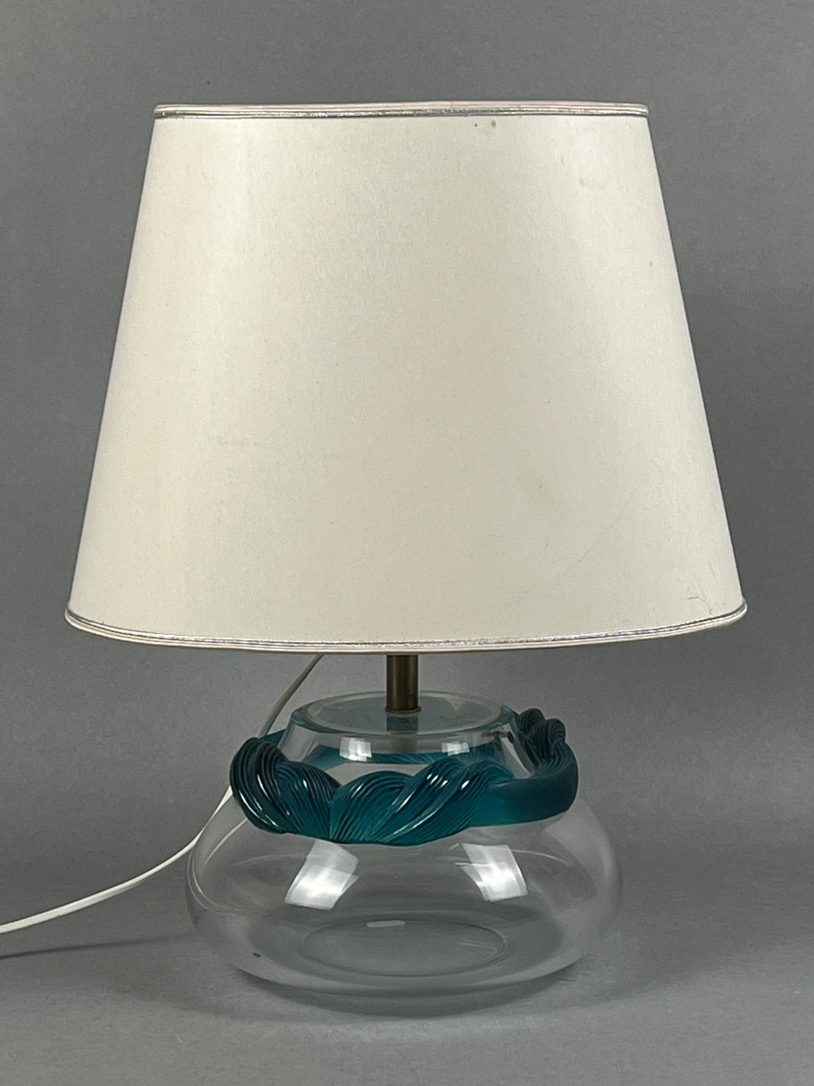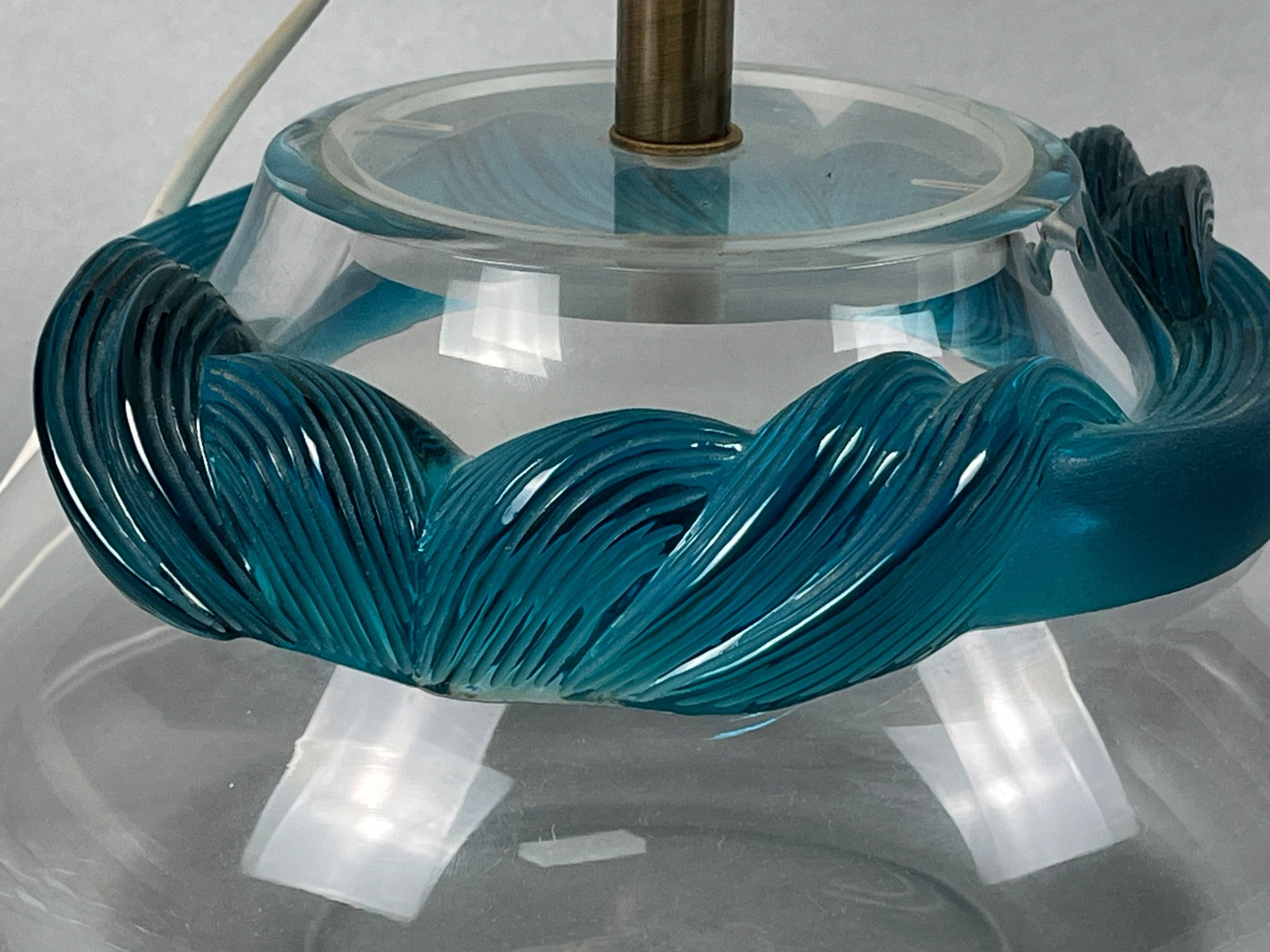 Marie-Claude LALIQUE (1935-2003), for LALIQUE France. Lamp base in colourless and turquoise crystal, Cyrus model. Signature at the tip. Can be used as a vase. Height of foot (without socket): 16.3 cm.