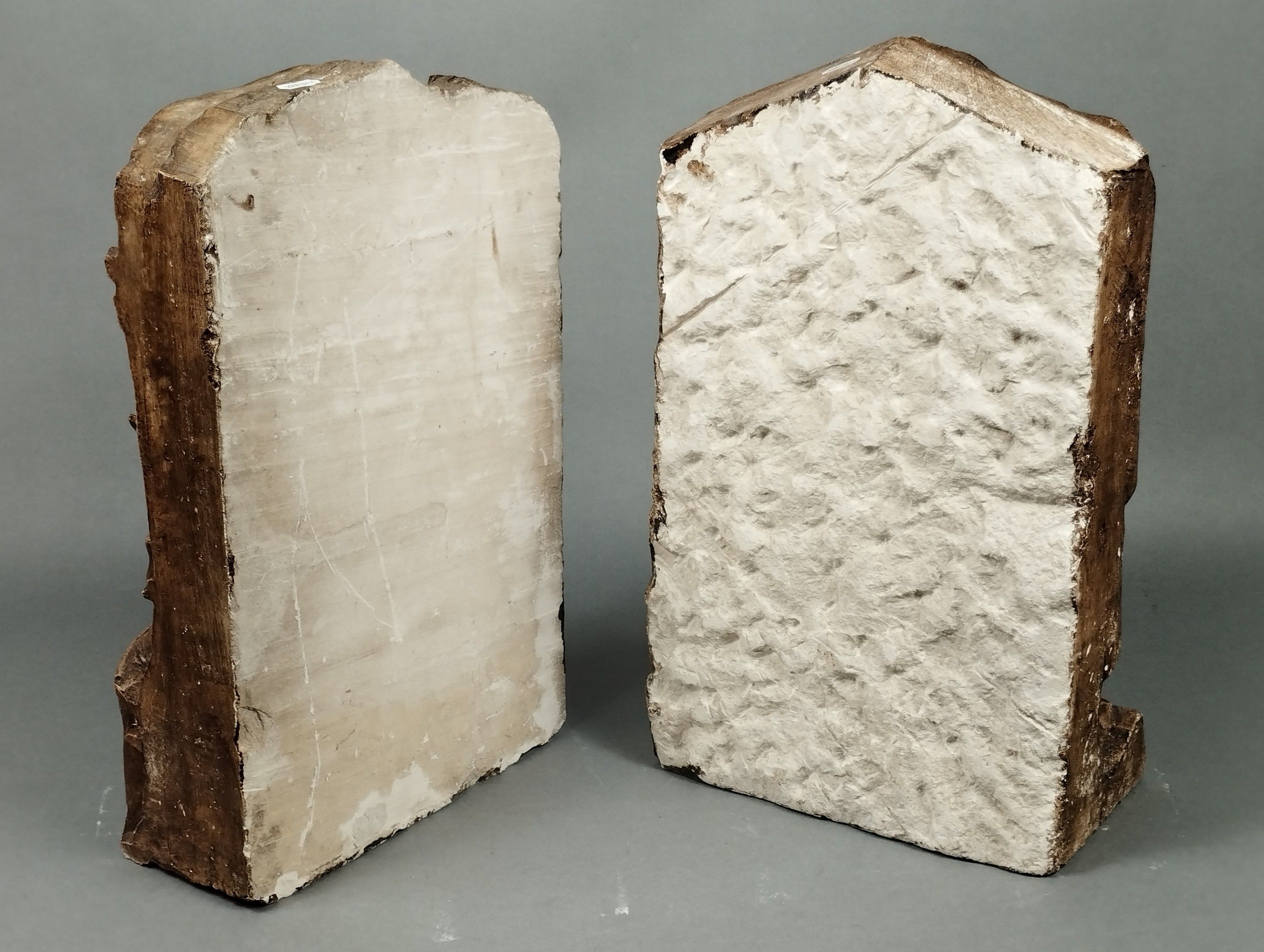 Pair of thick bas-reliefs in carved limestone with a patina,…