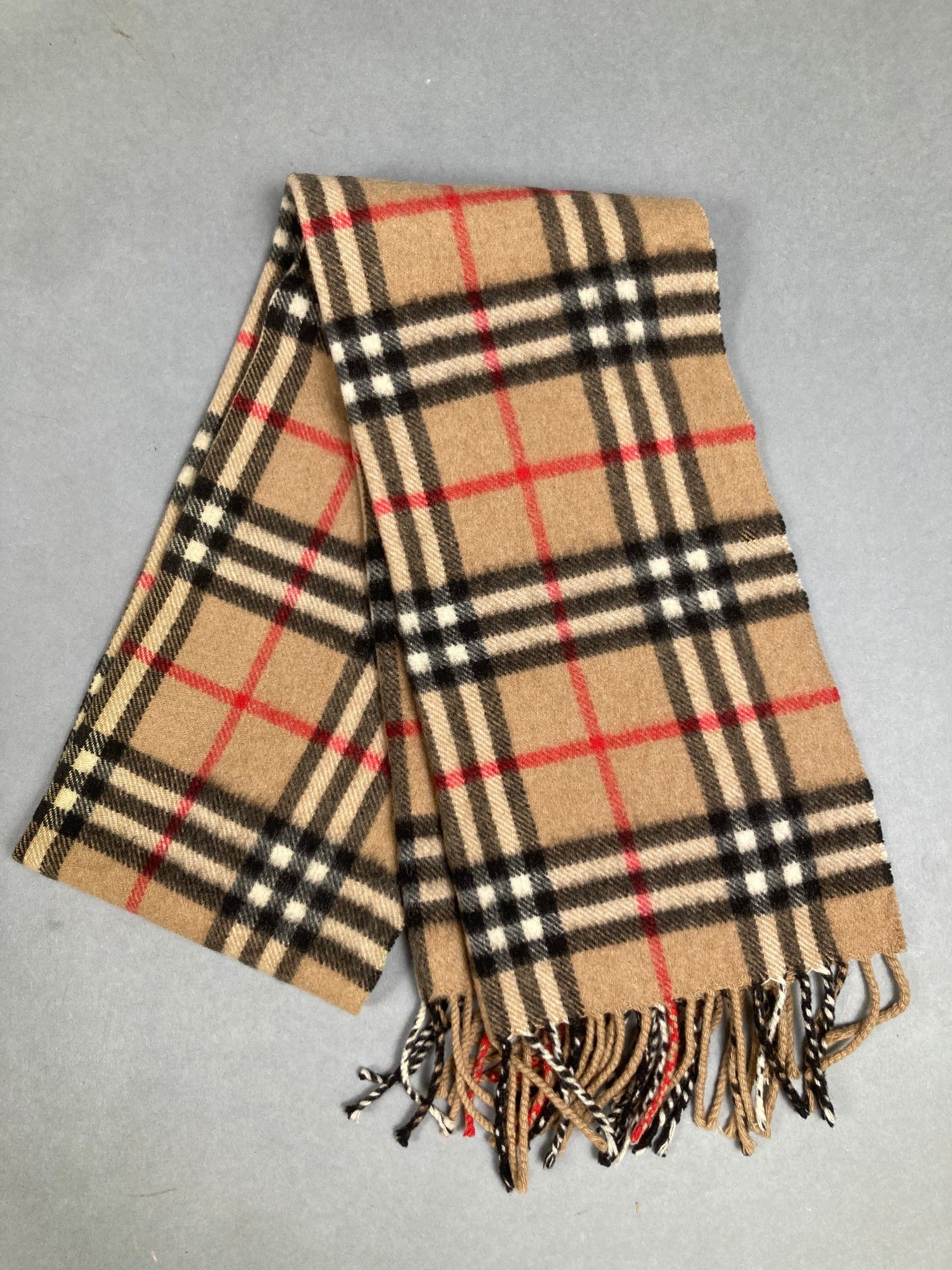 BURBERRYS of London. Beige tartan cashmere scarf.