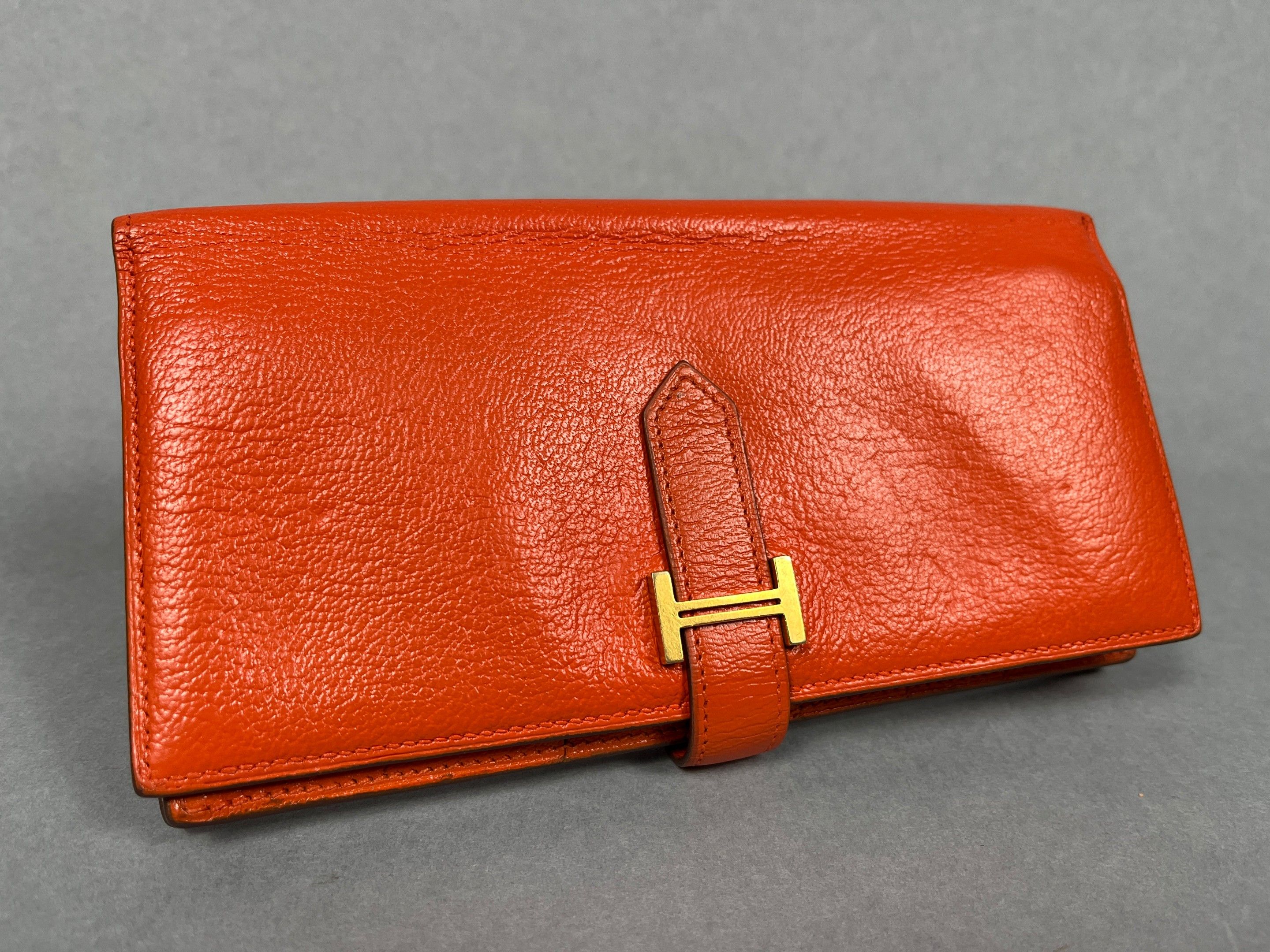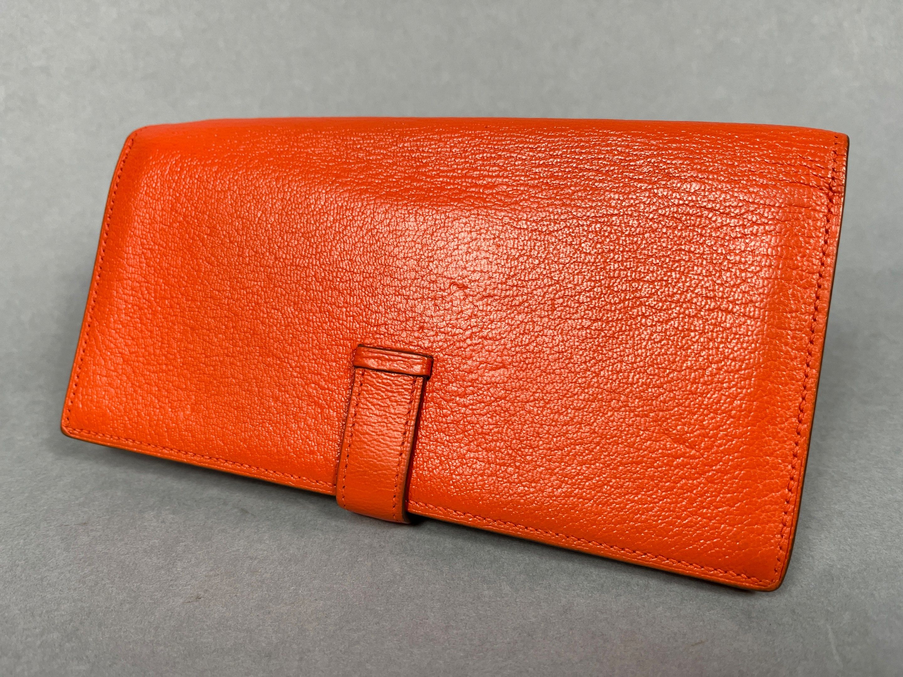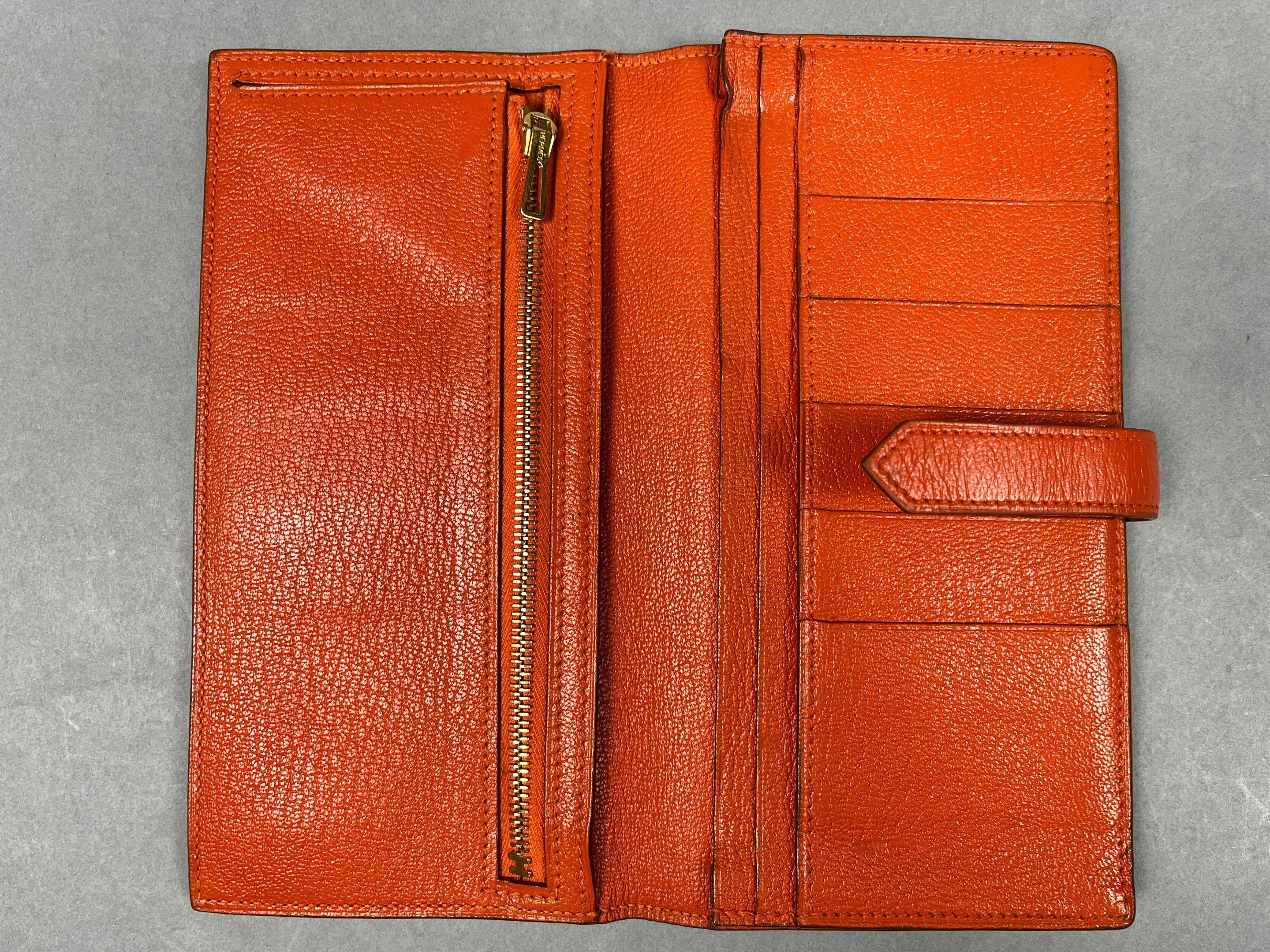 HERMES, Paris. Béarn" wallet in orange grained leather.