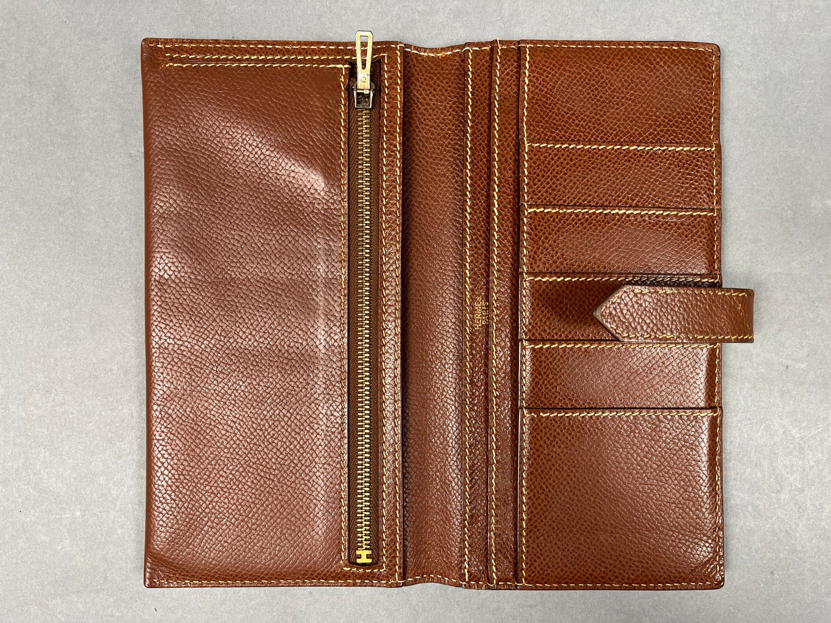 HERMES, Paris. Béarn" wallet in tan grained leather.
