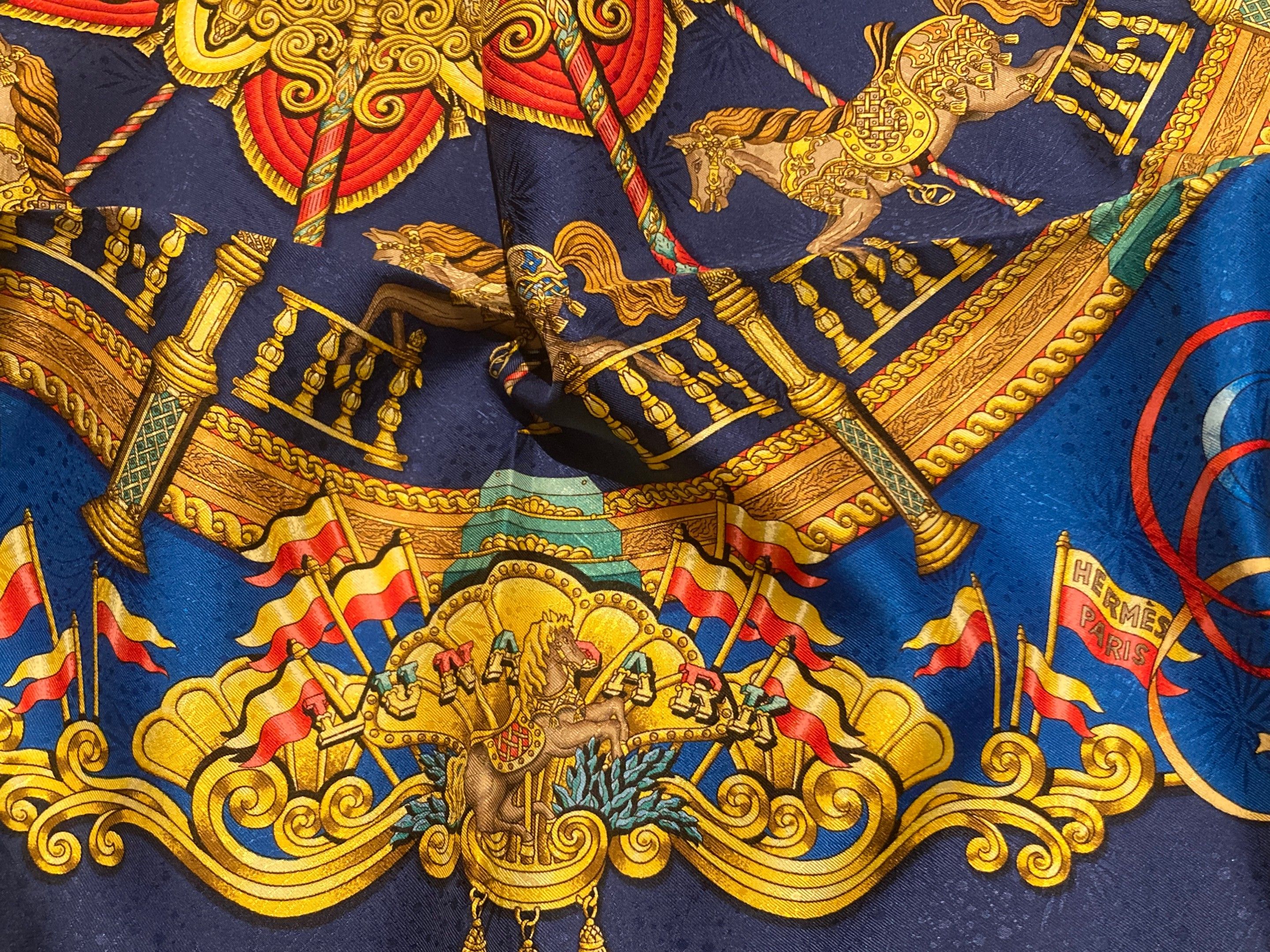HERMES, Paris. "Luna Park. Square 90 in damask and printed s…
