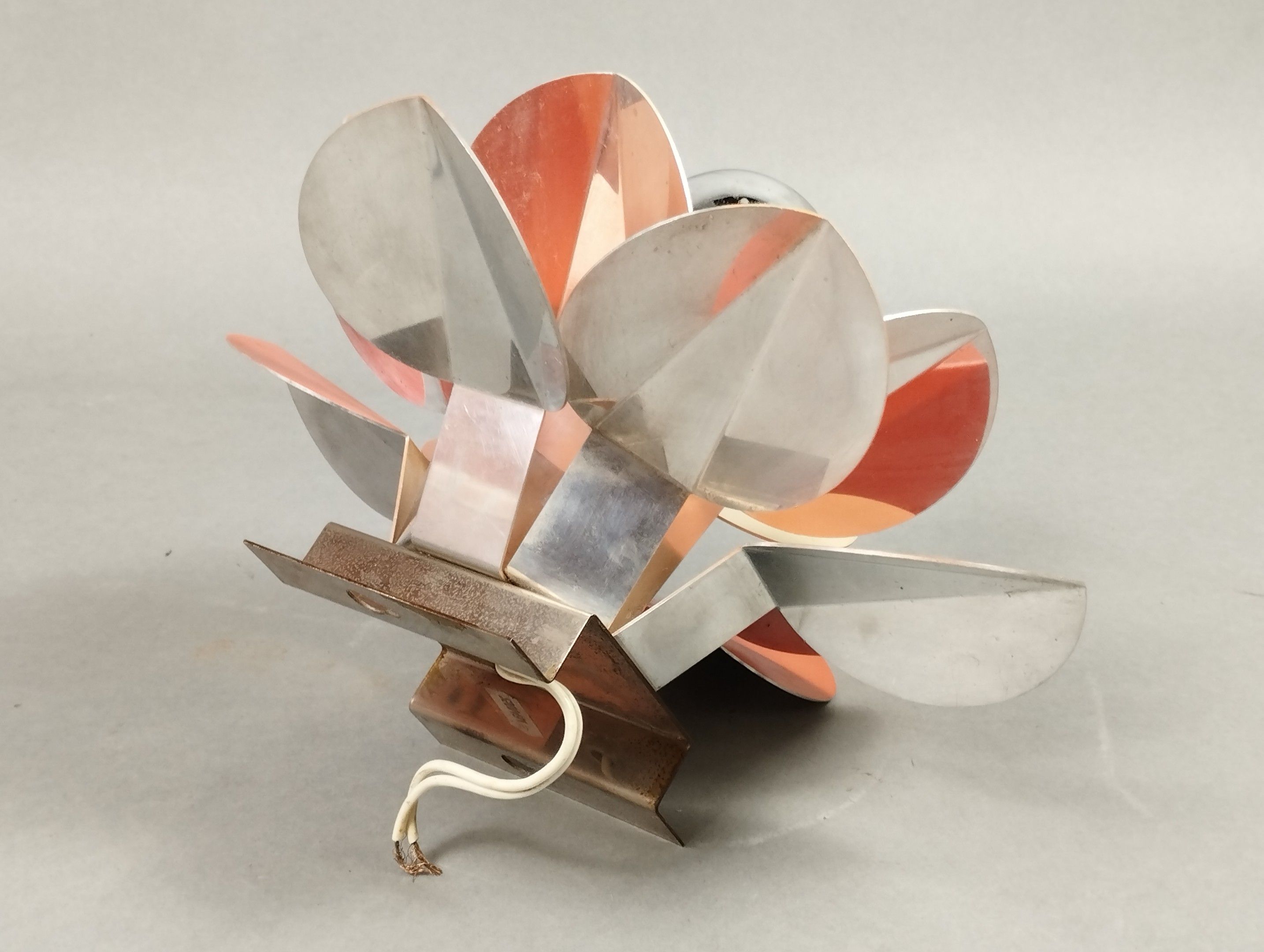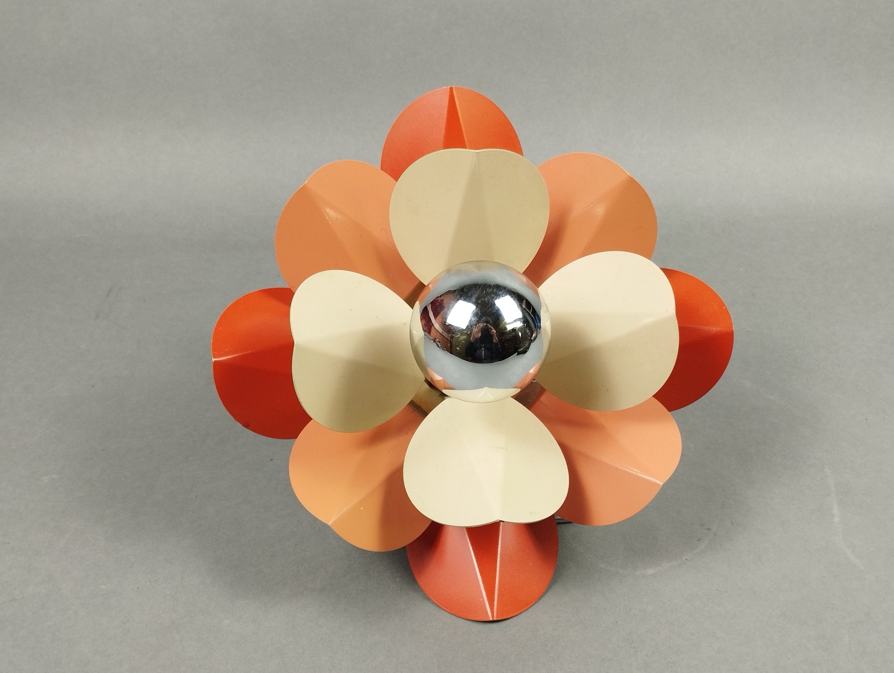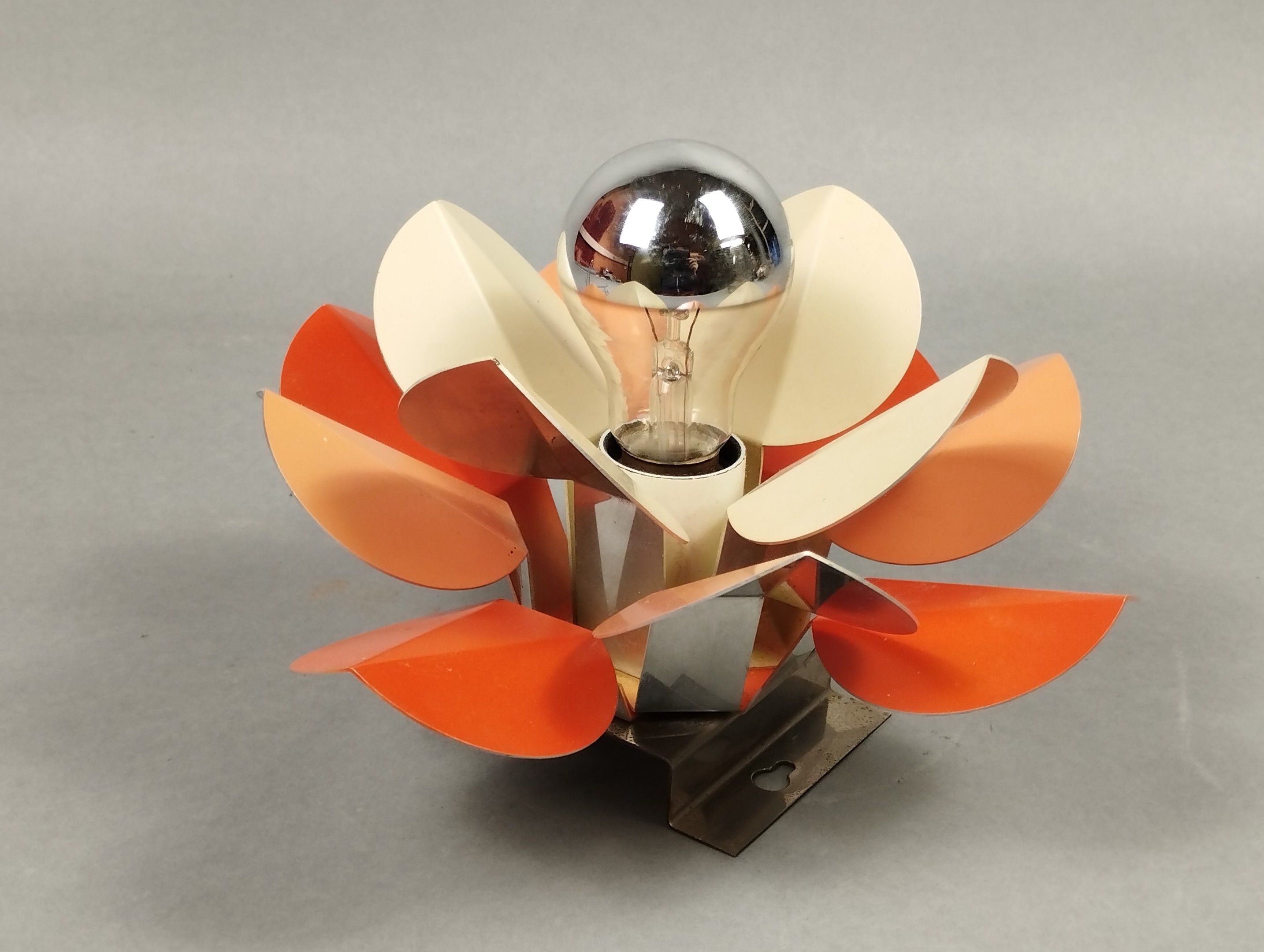 Flower" wall light in orange lacquered metal. Circa 1970. Width: 25 cm; depth: 18 cm.