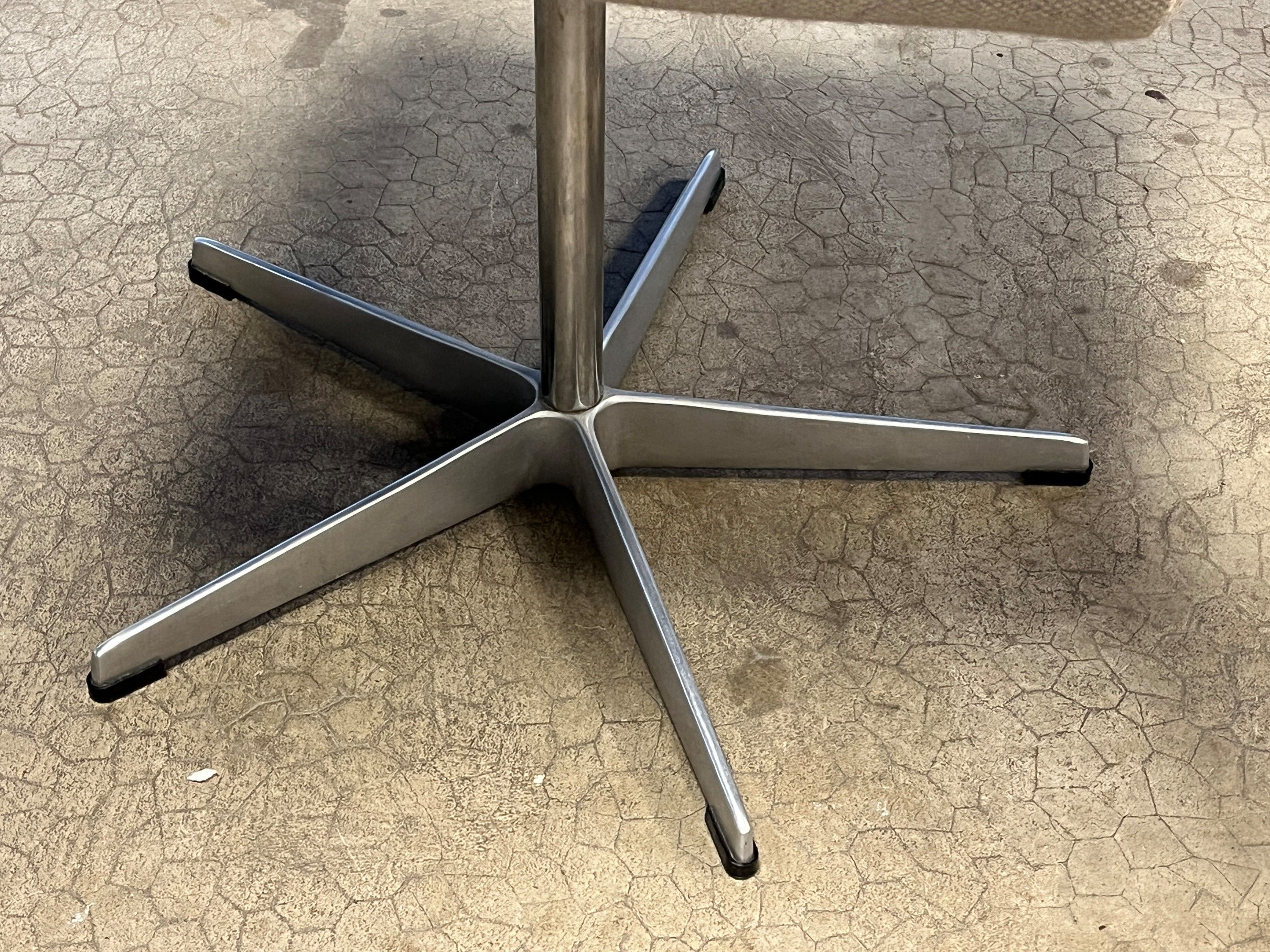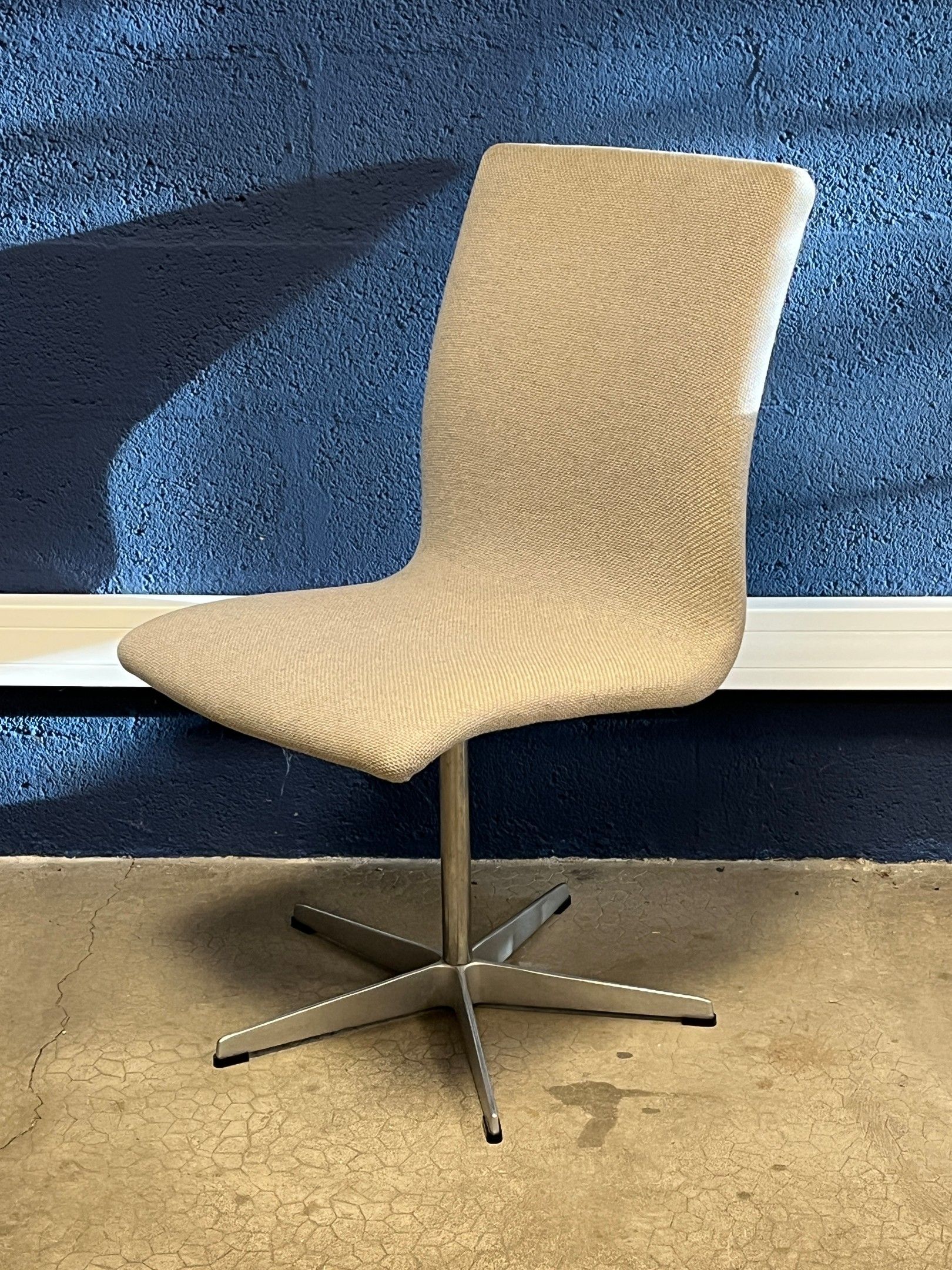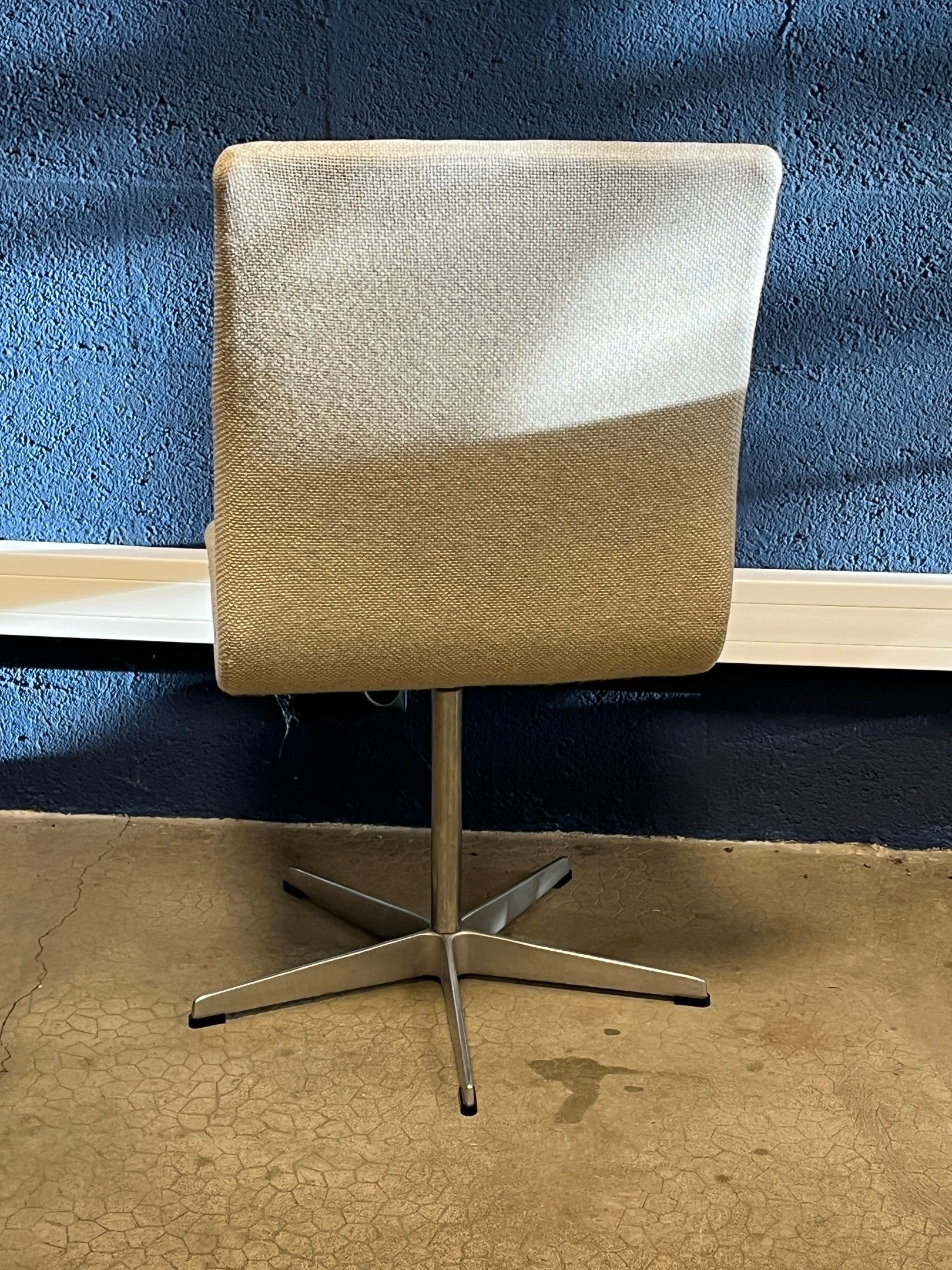 Arne JACOBSEN (1902-1971), designer, for Fritz HANSEN, publisher, Denmark. Rare suite of 8 vintage chairs, "Oxford" model (created in 1965), with grey/beige wool upholstery, resting on chrome-plated metal legs ending in a star. Publisher's labels. Circa 1960/70. Height = 88 cm.