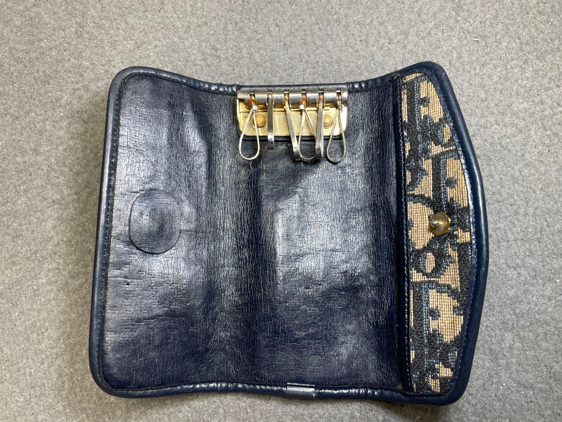 CHRISTIAN DIOR Monogrammed canvas key ring.