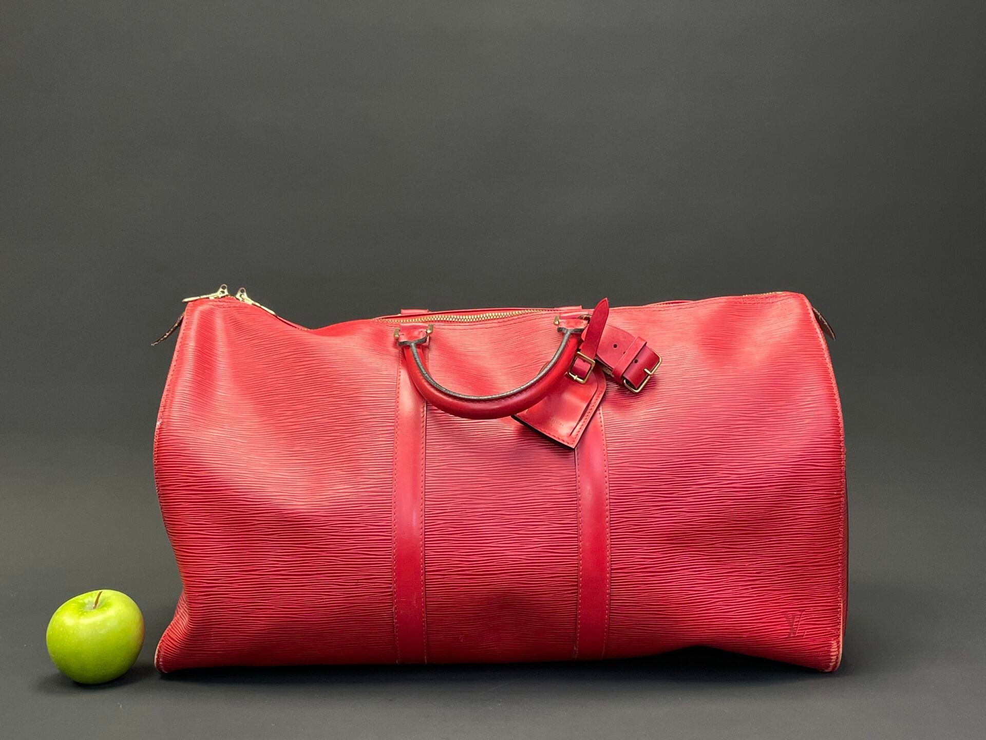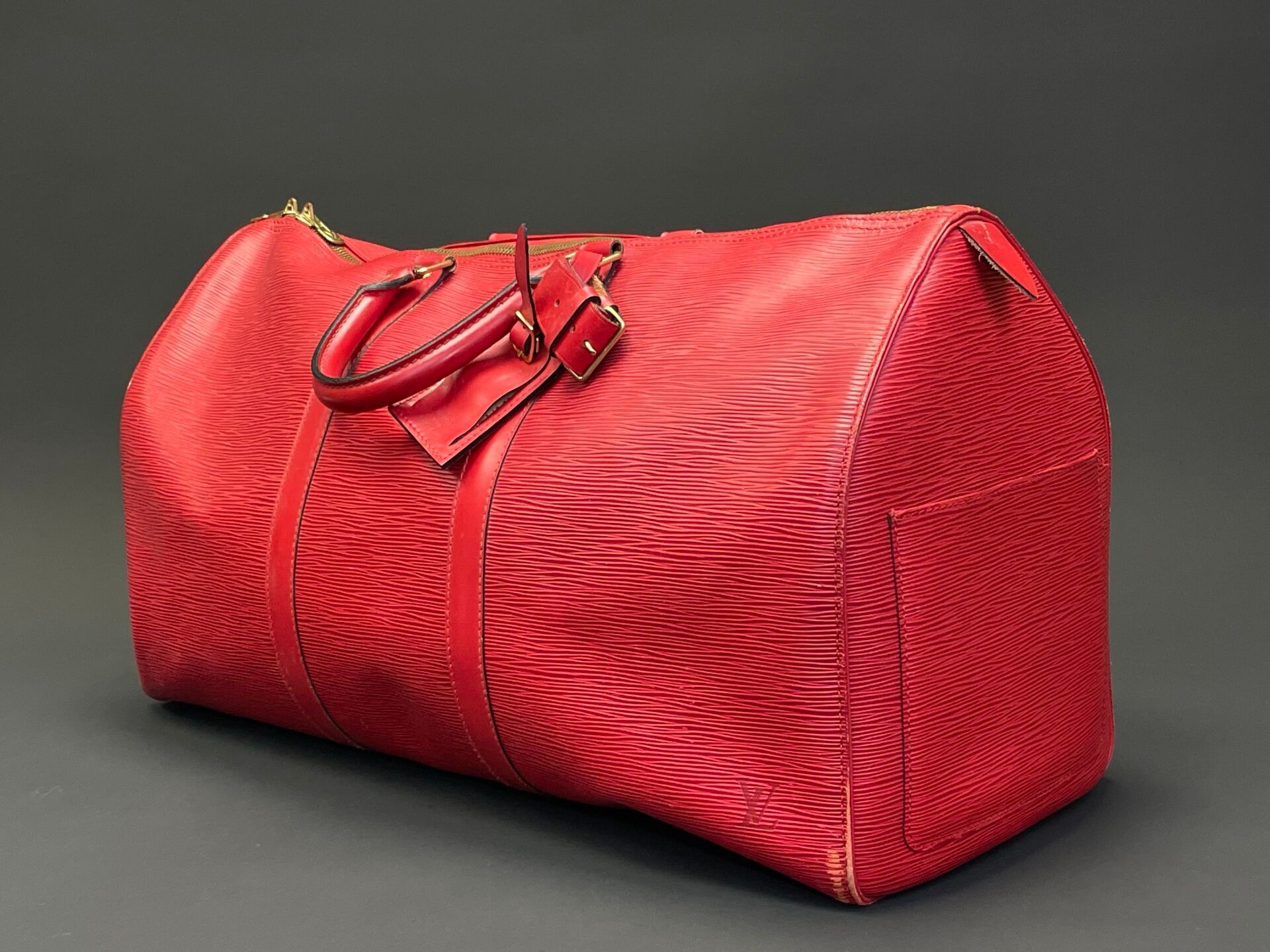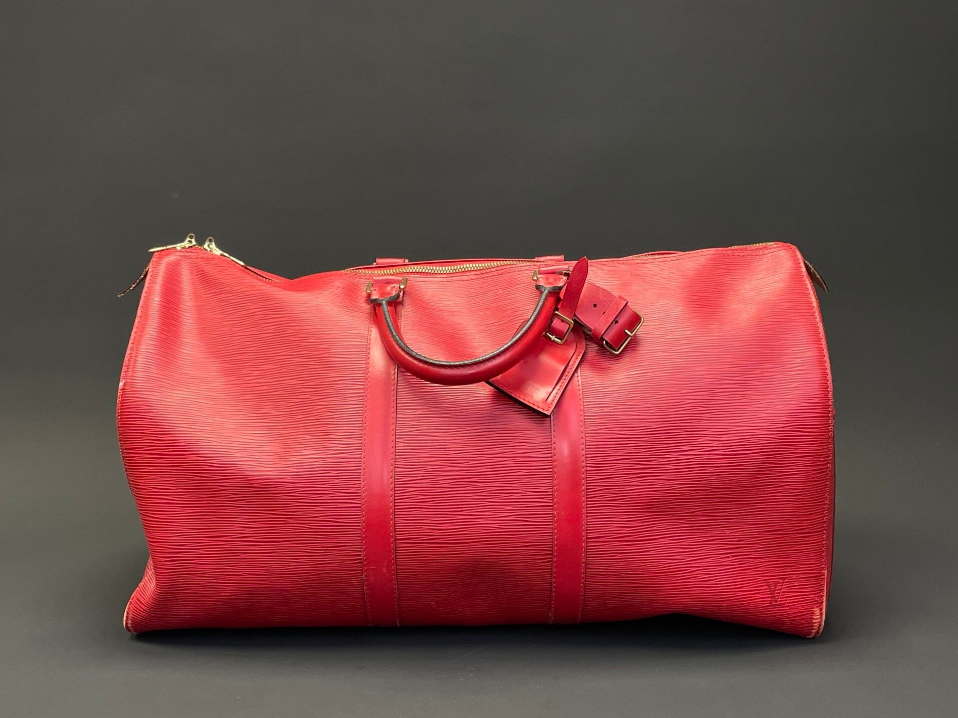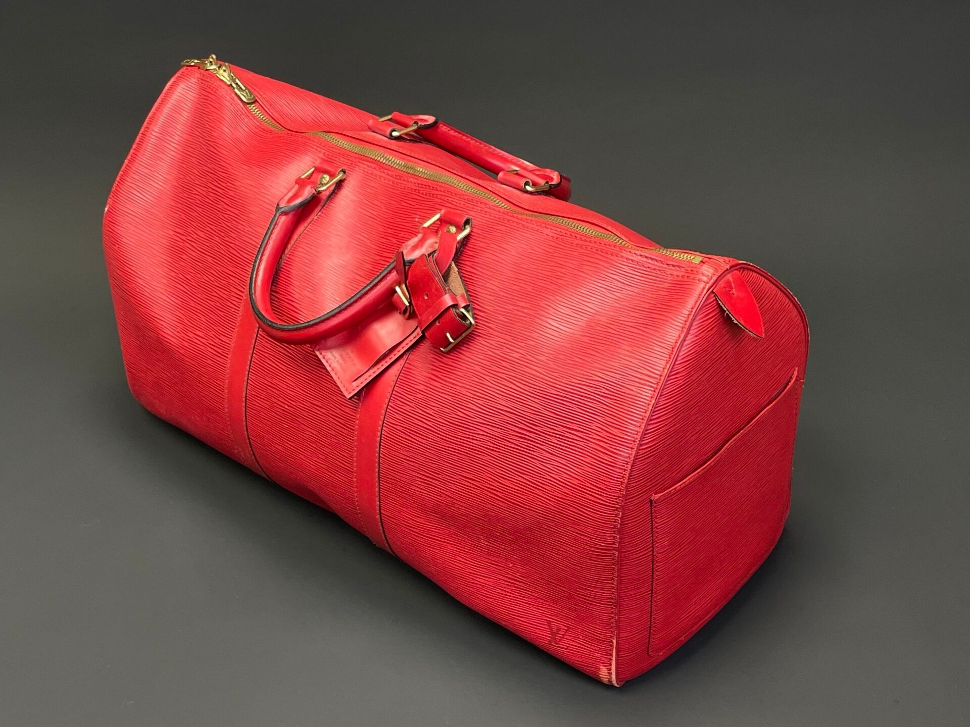 Louis VUITTON. Travel bag Keepall model in red epi leather, …