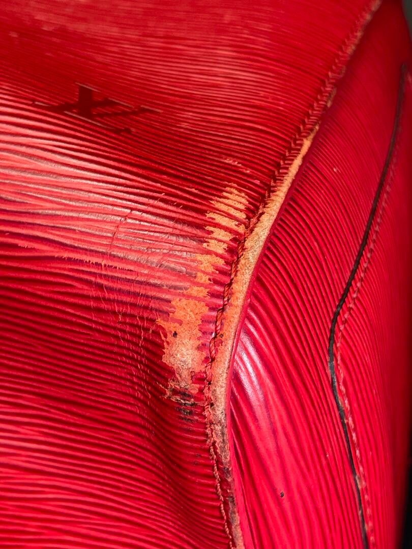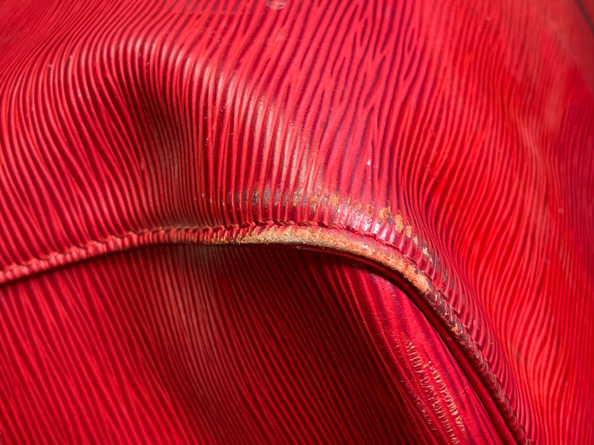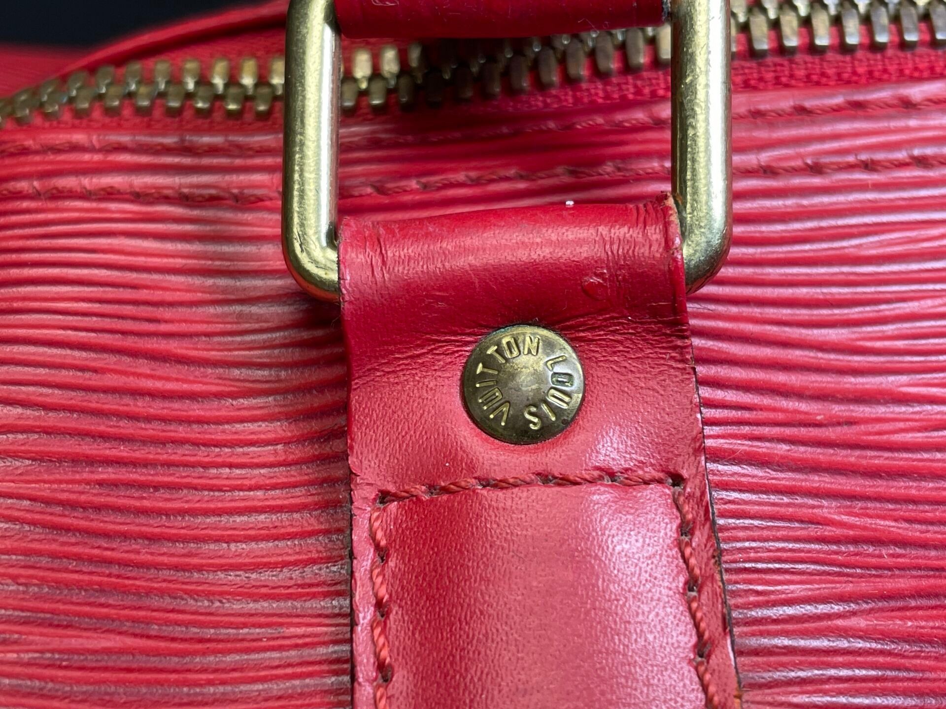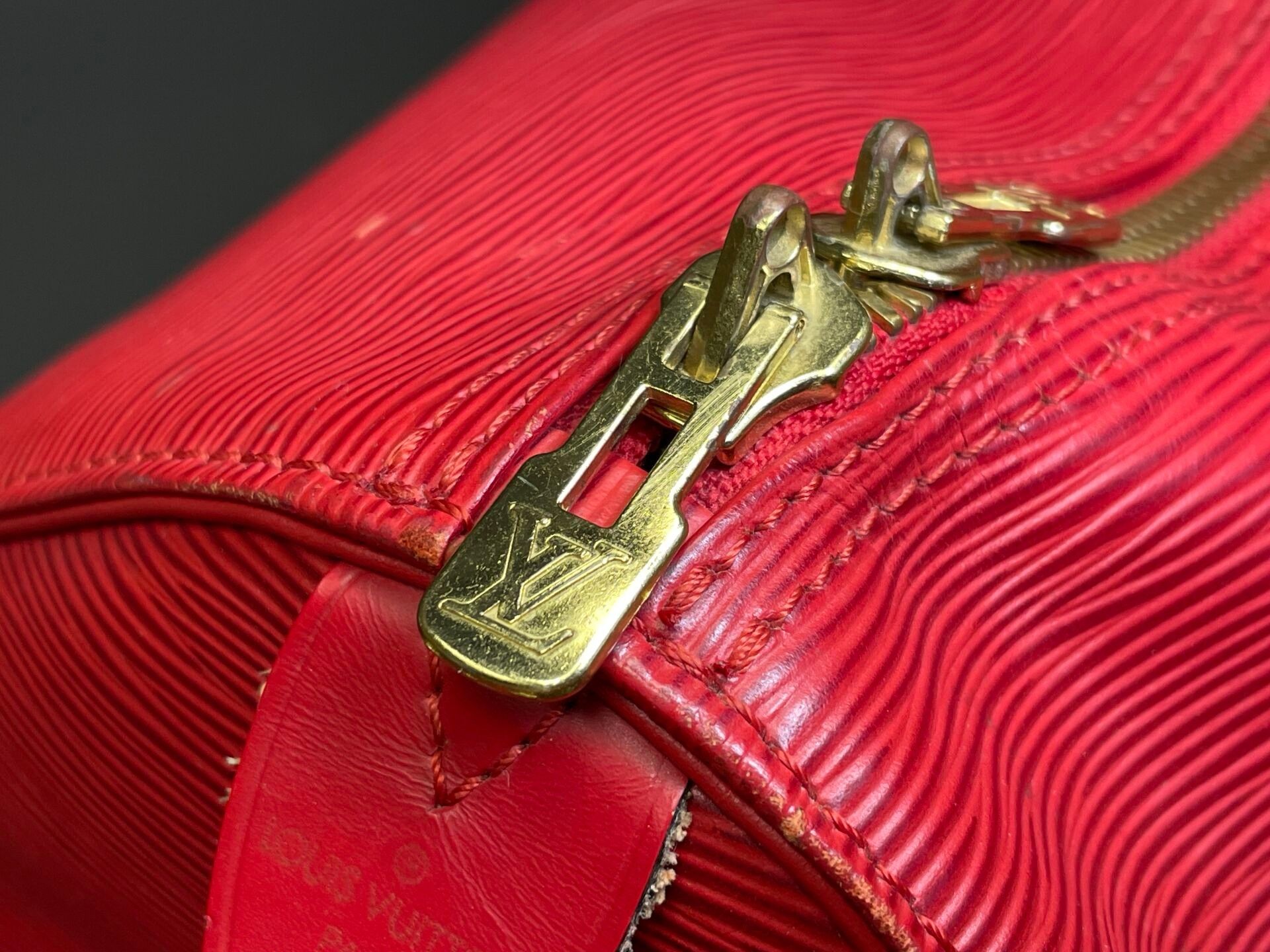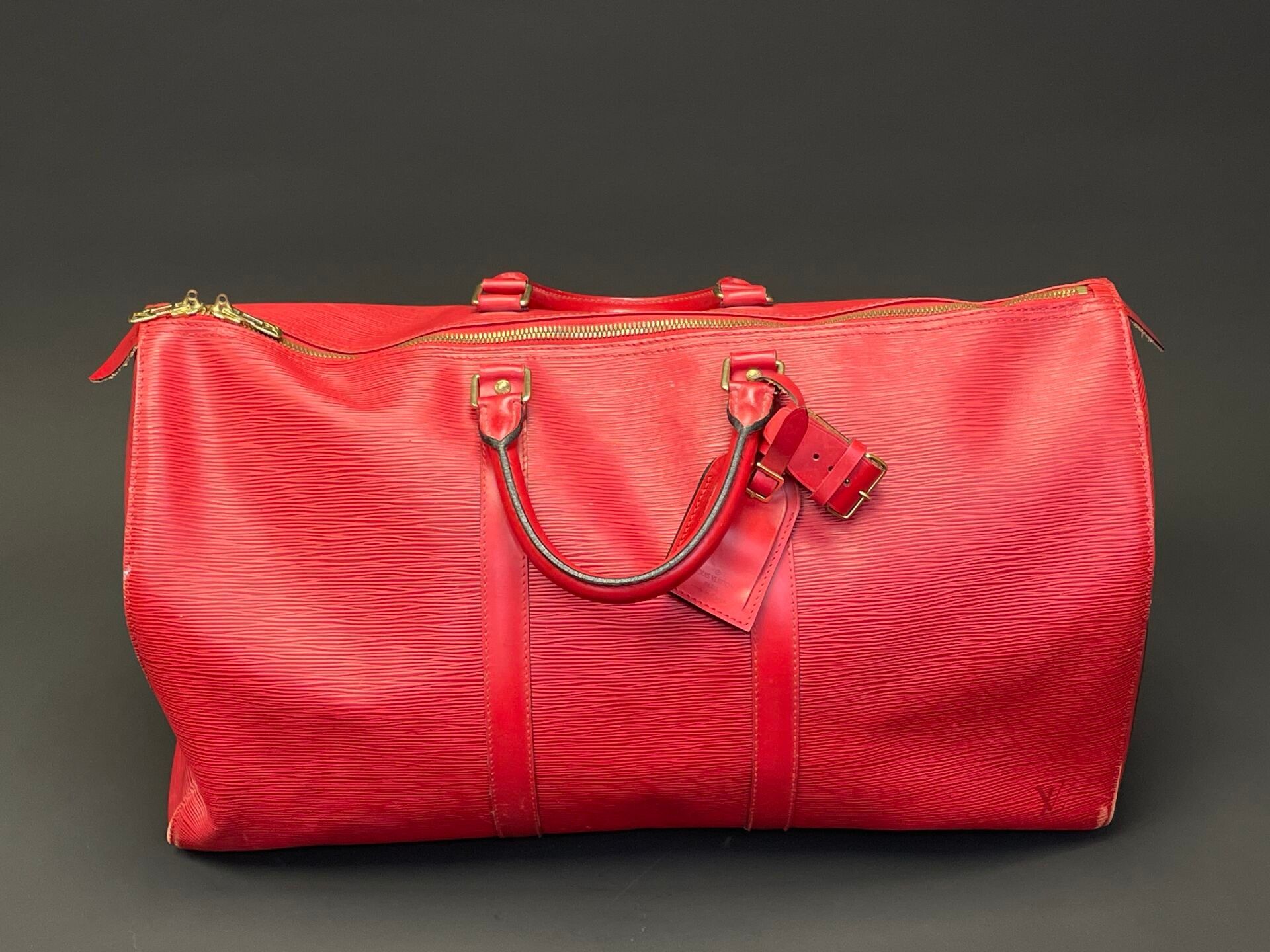 Louis VUITTON. Travel bag Keepall model in red epi leather, …
