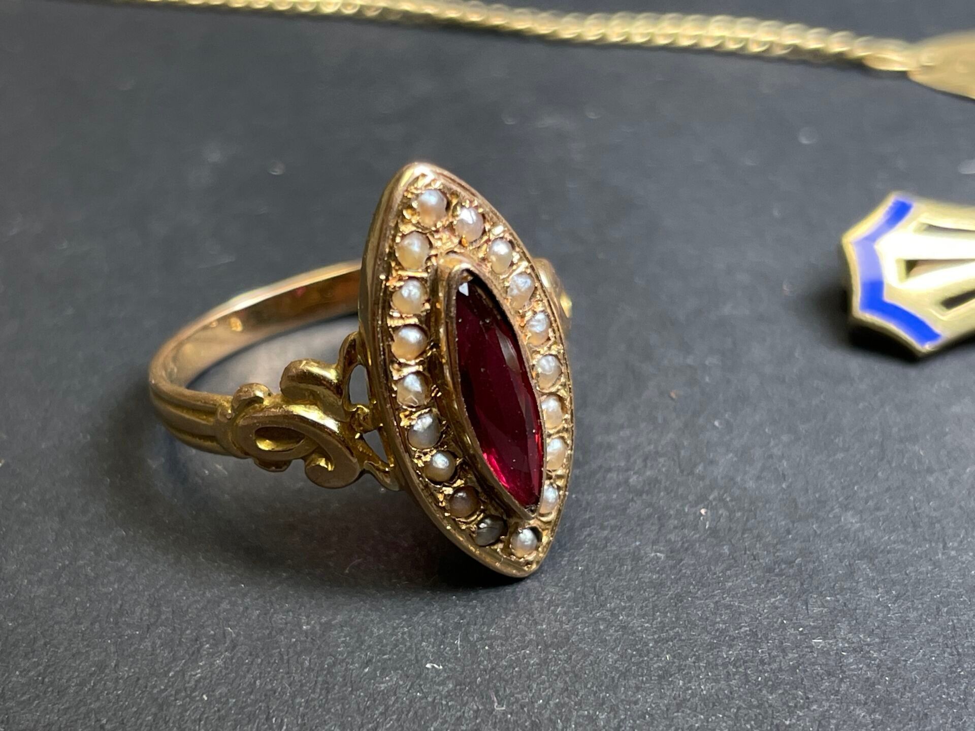 Including antique marquise ring with garnet and pearls TDD 54 split