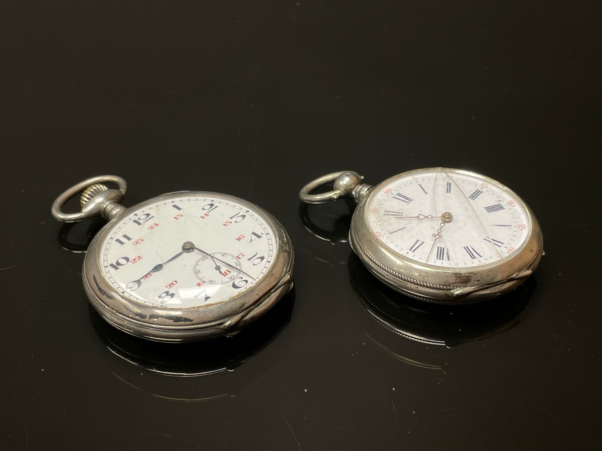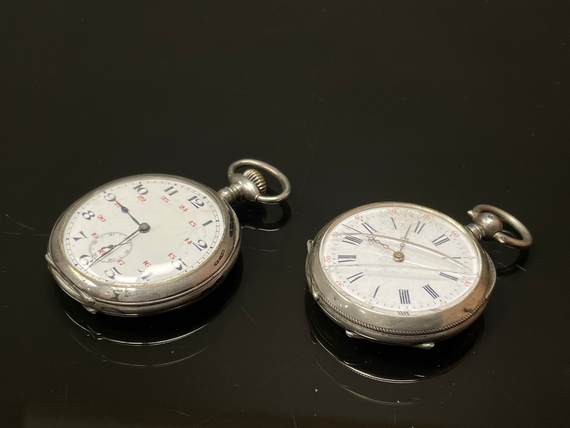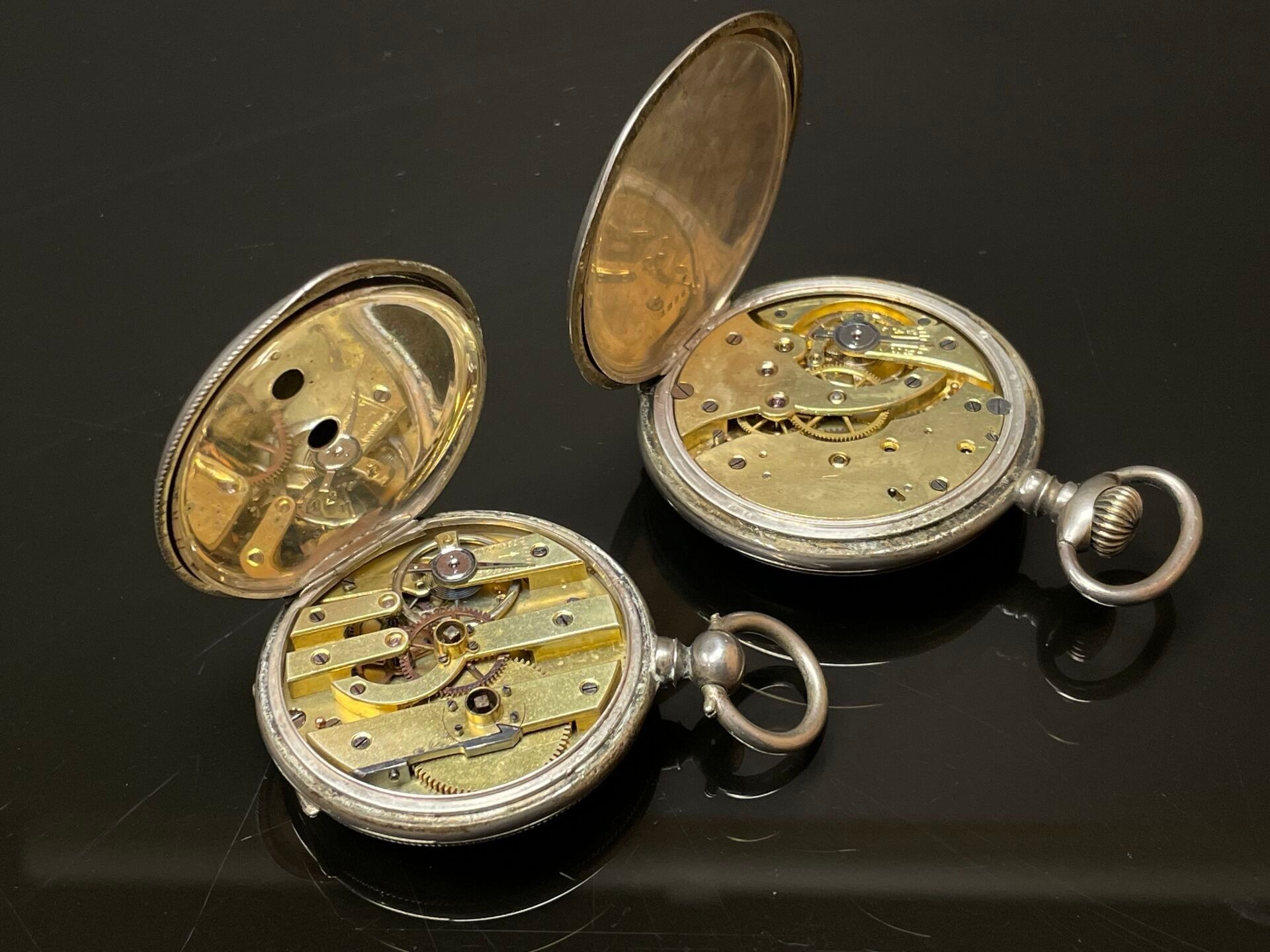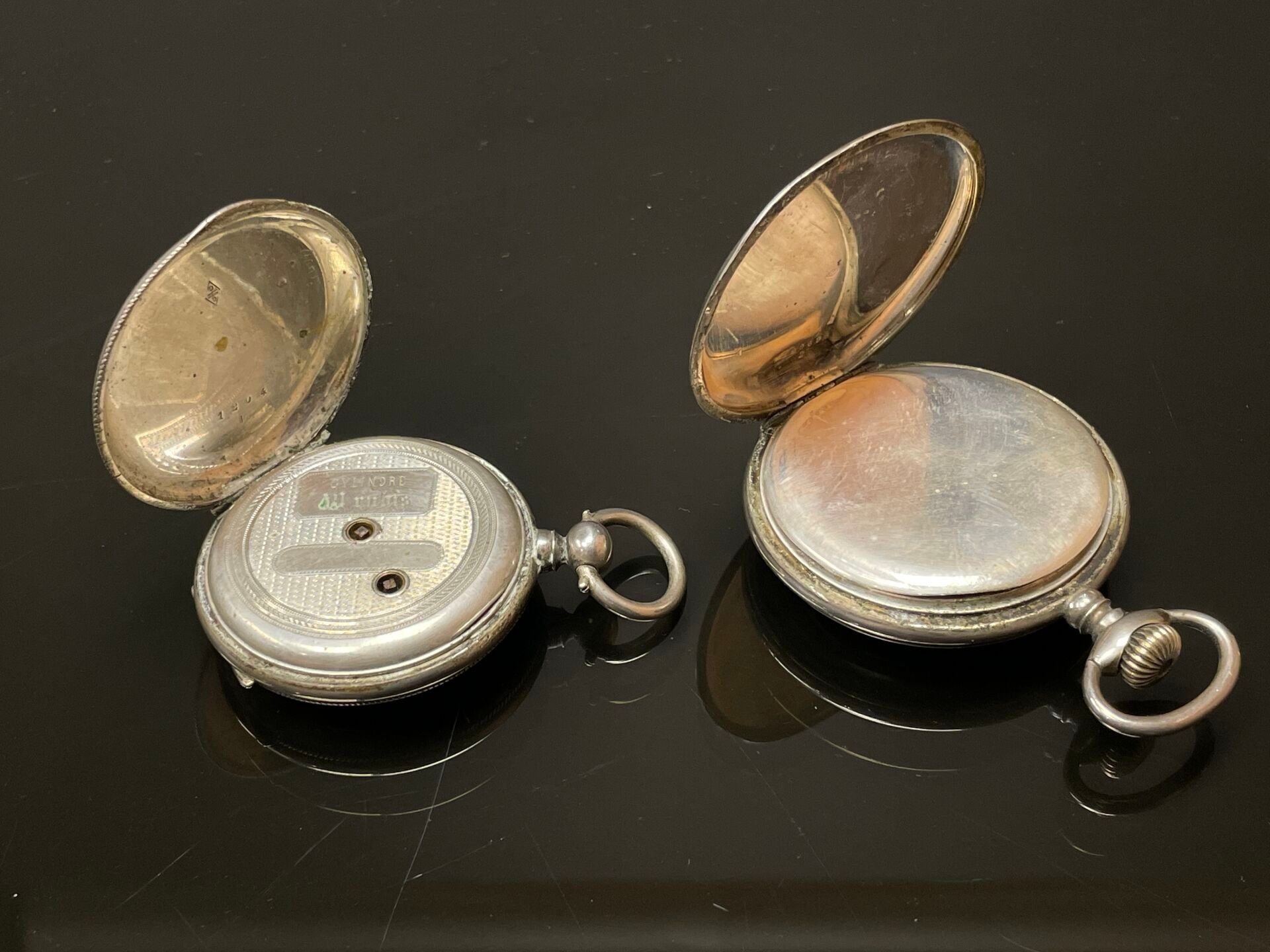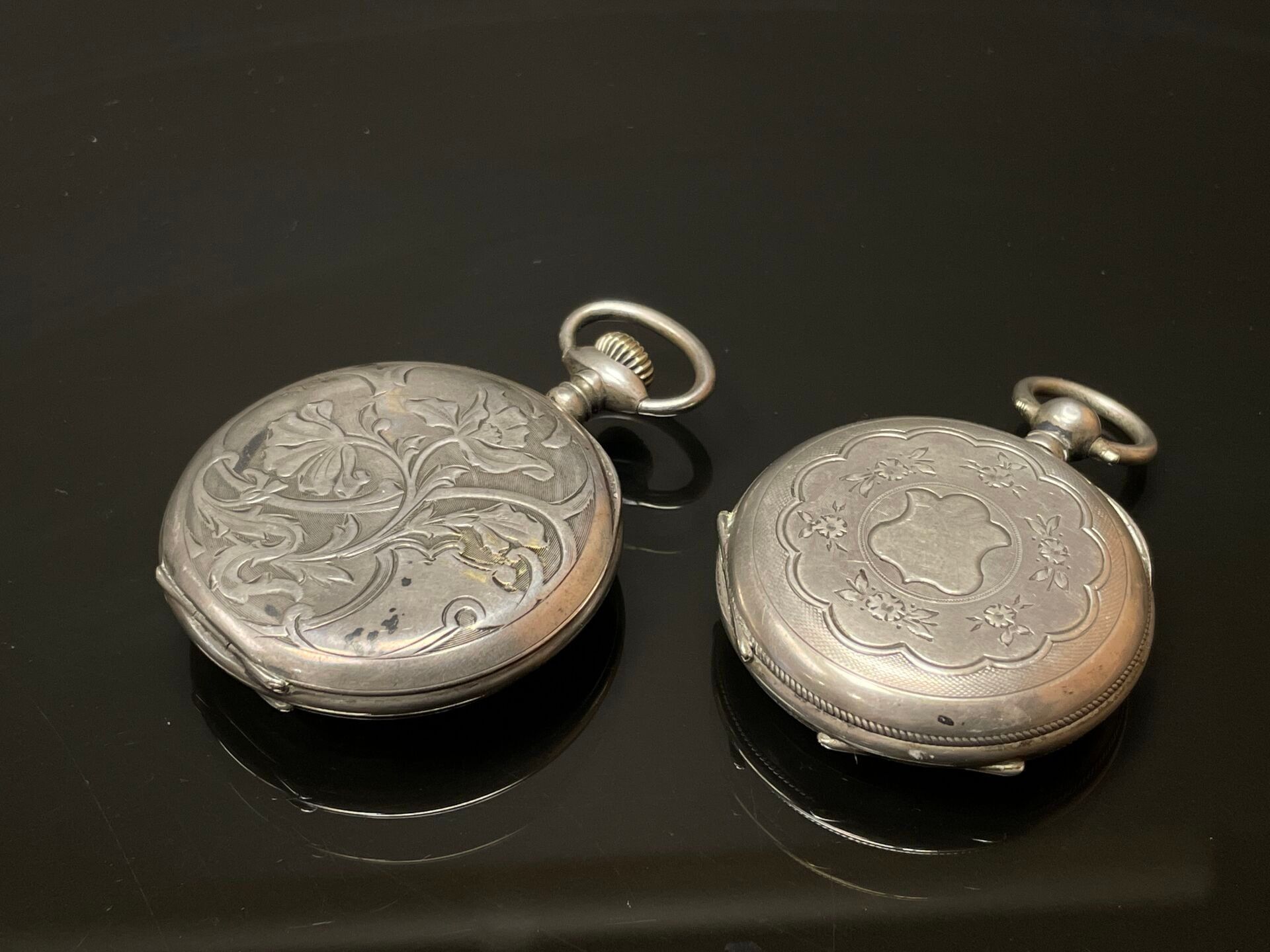 Two 925°/00 silver pocket watches, one with Art Nouveau decoration, the other with an escutcheon.