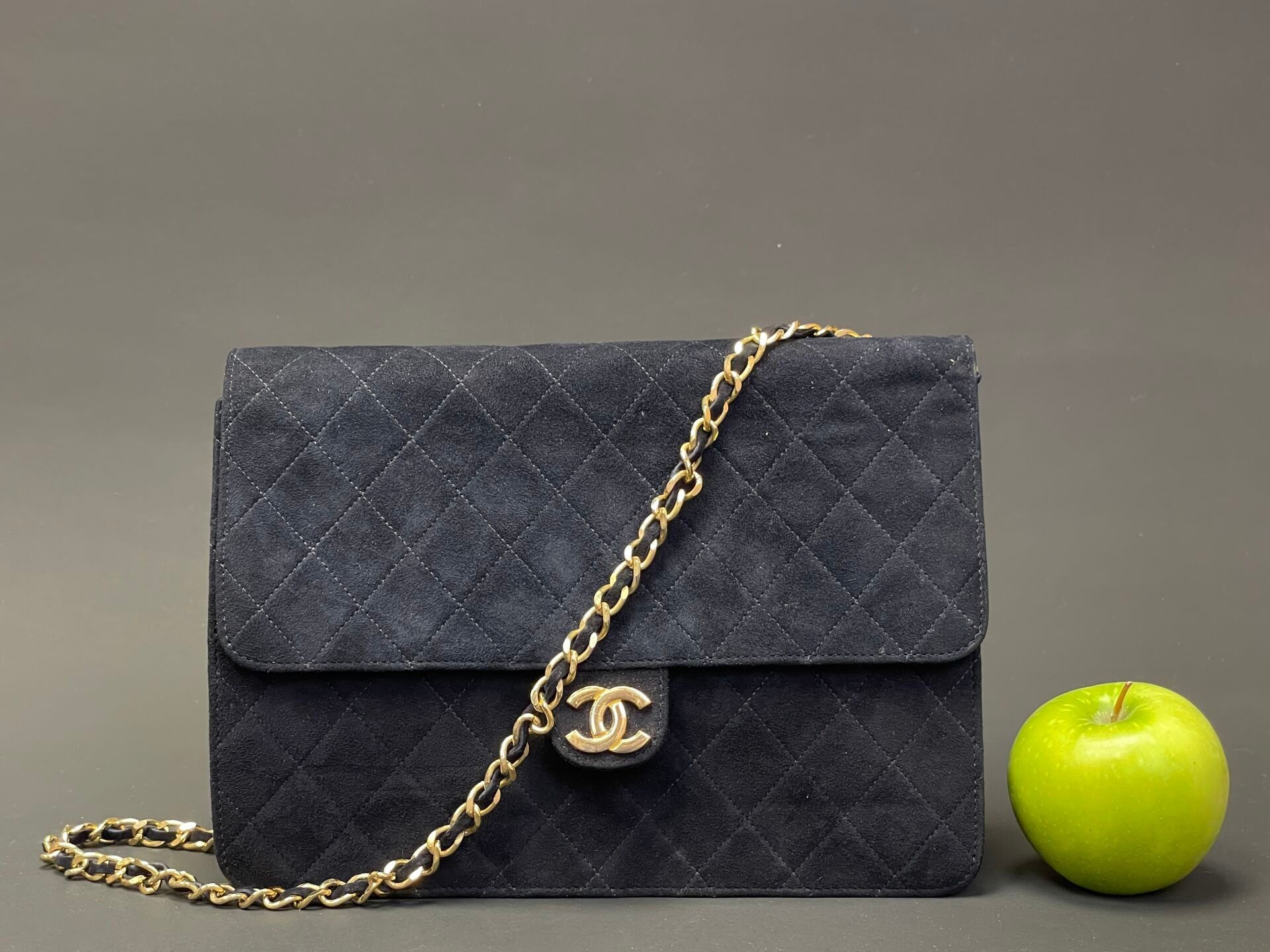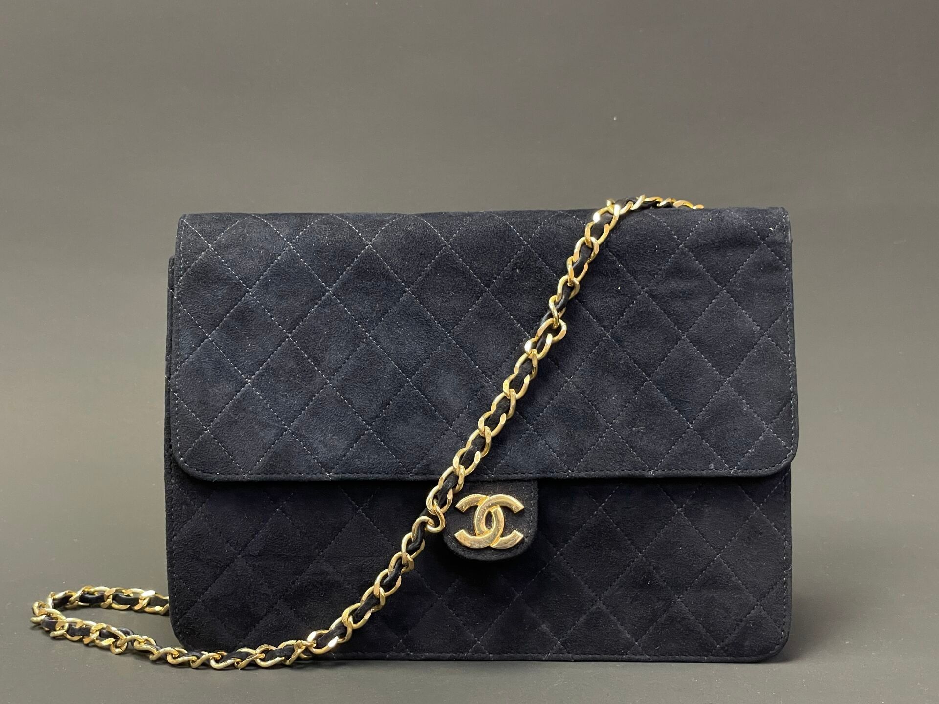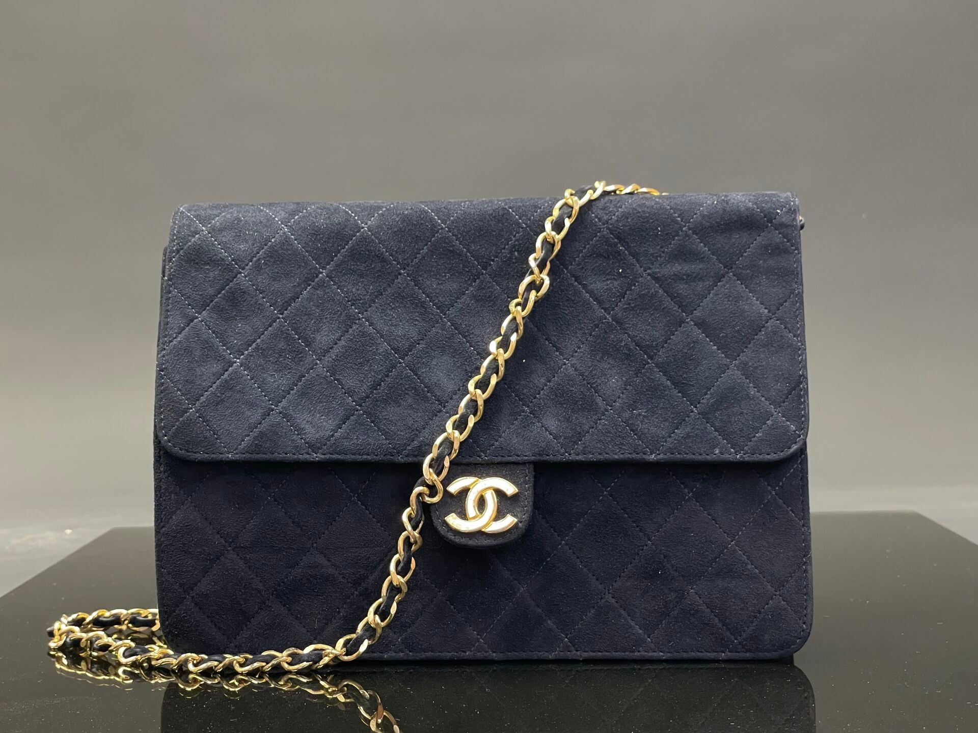 CHANEL Timeless Classique bag in navy suede, gold chain and …