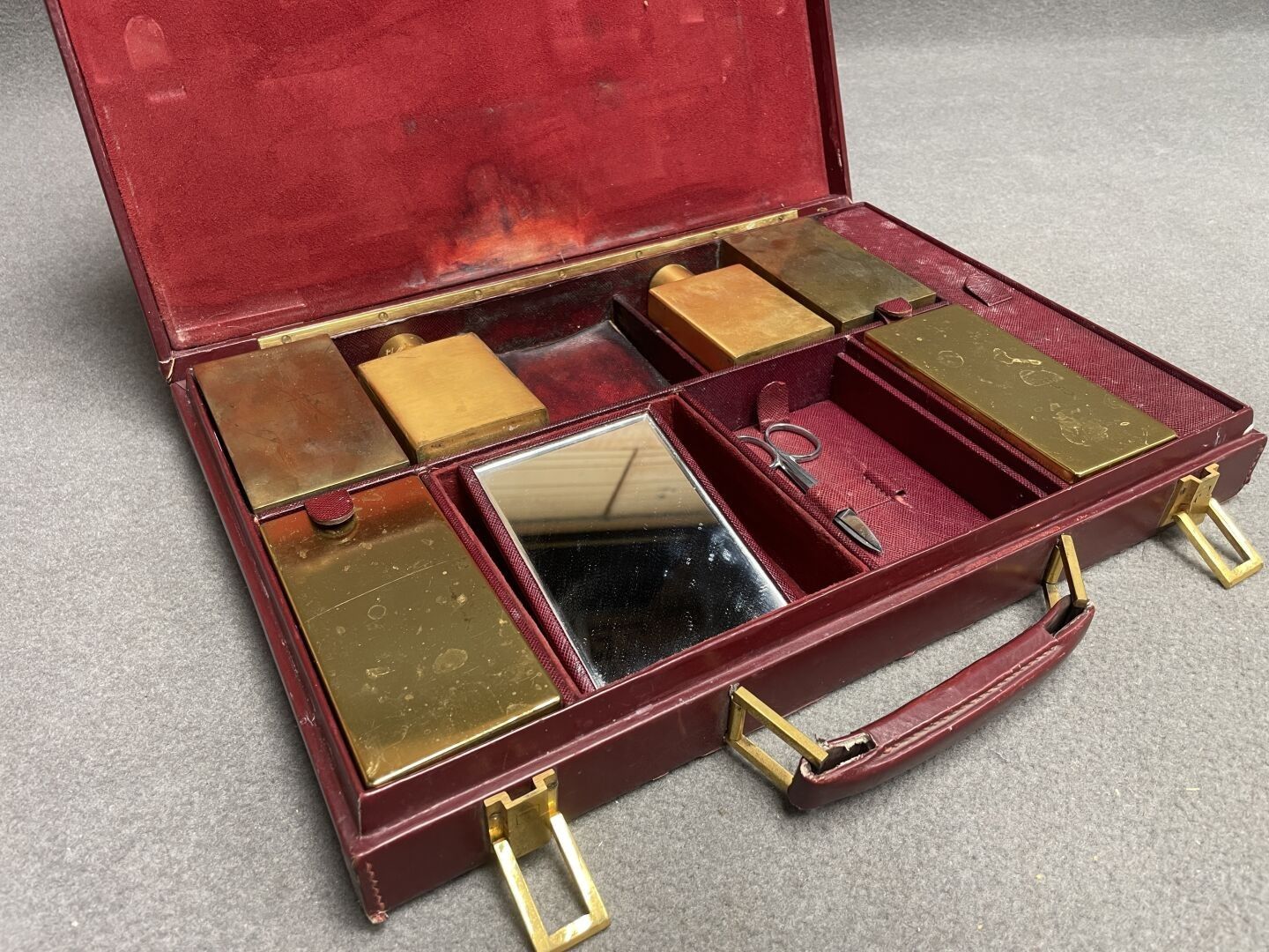 Leather-covered toilet case.