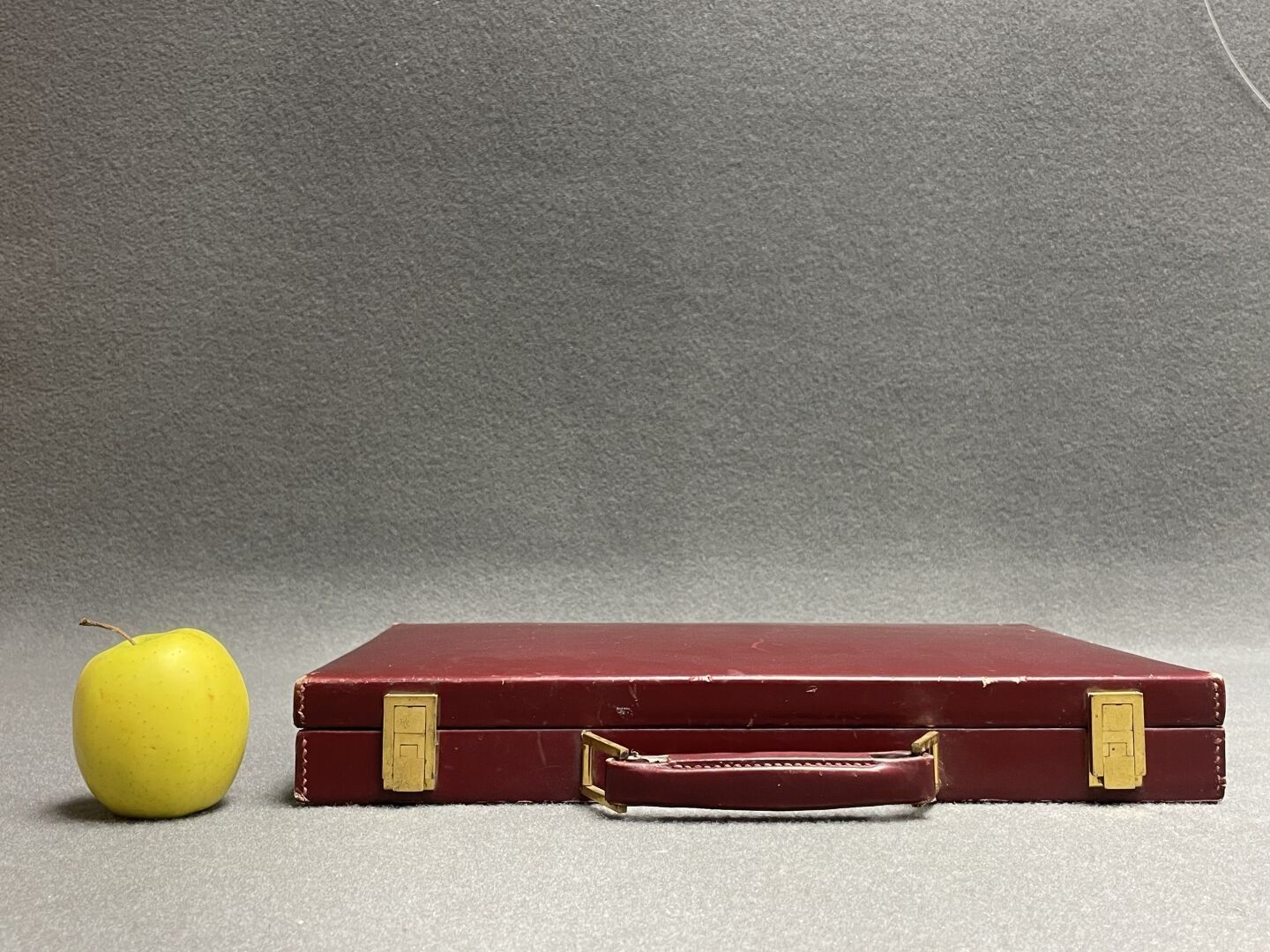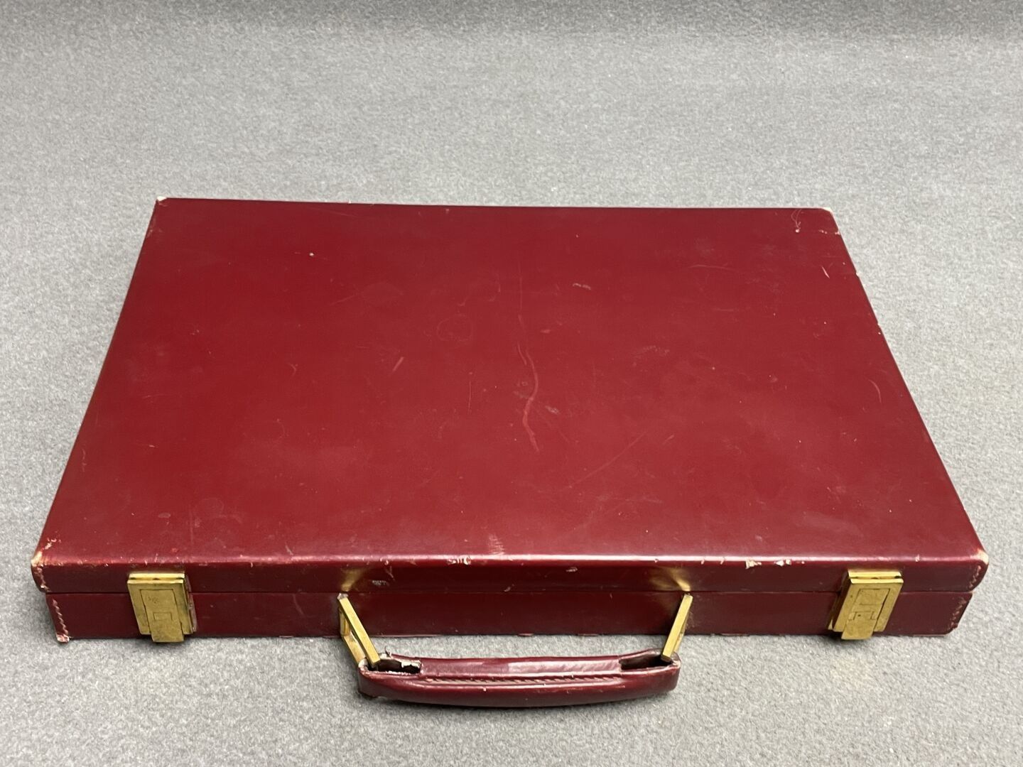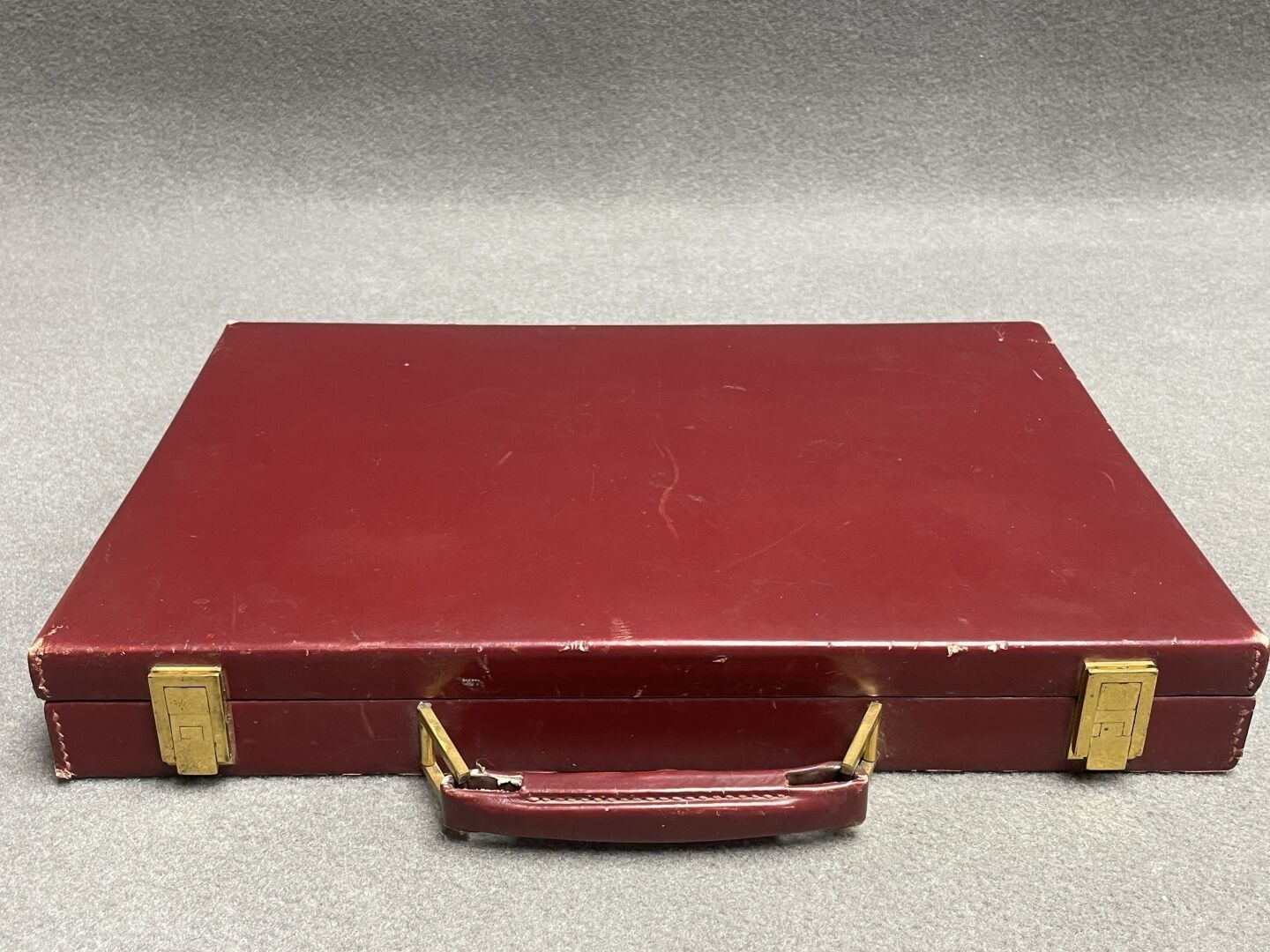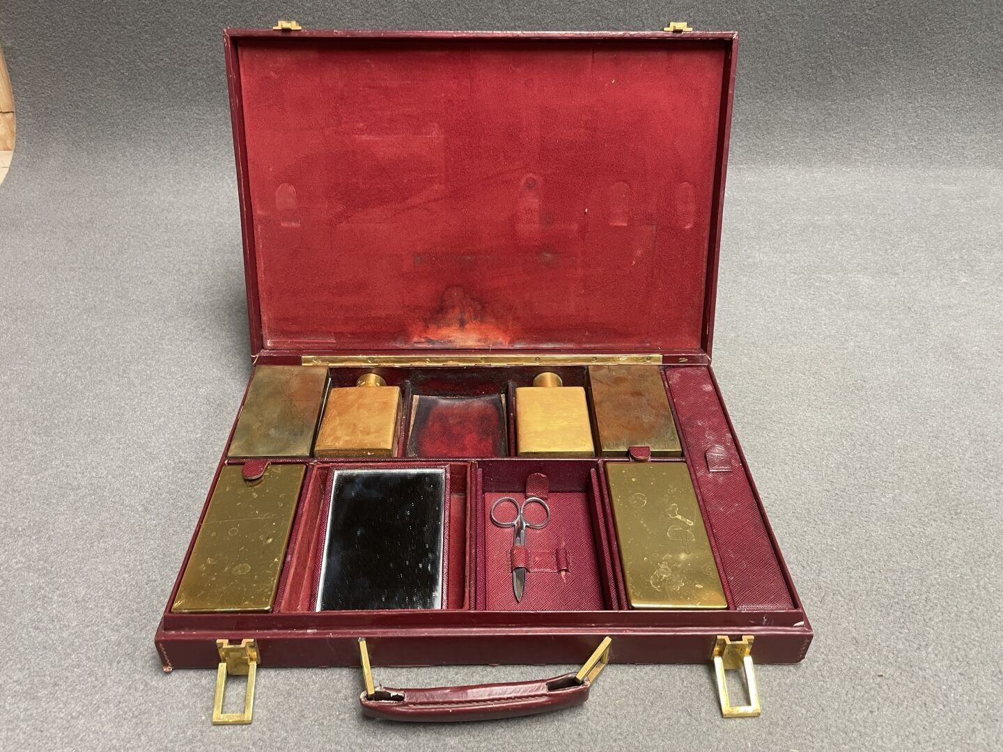 Leather-covered toilet case. 5 x 38 x 27 cm.