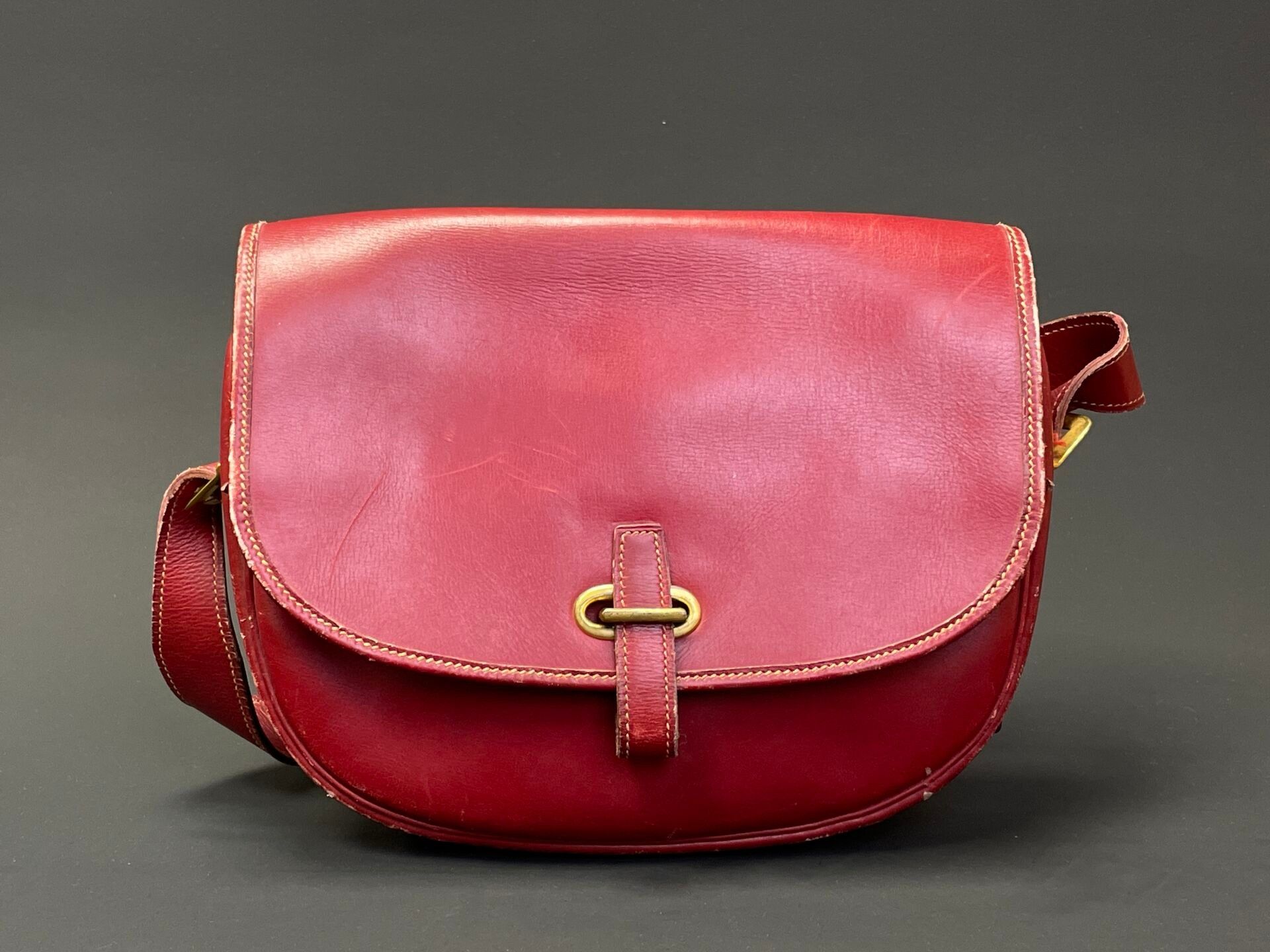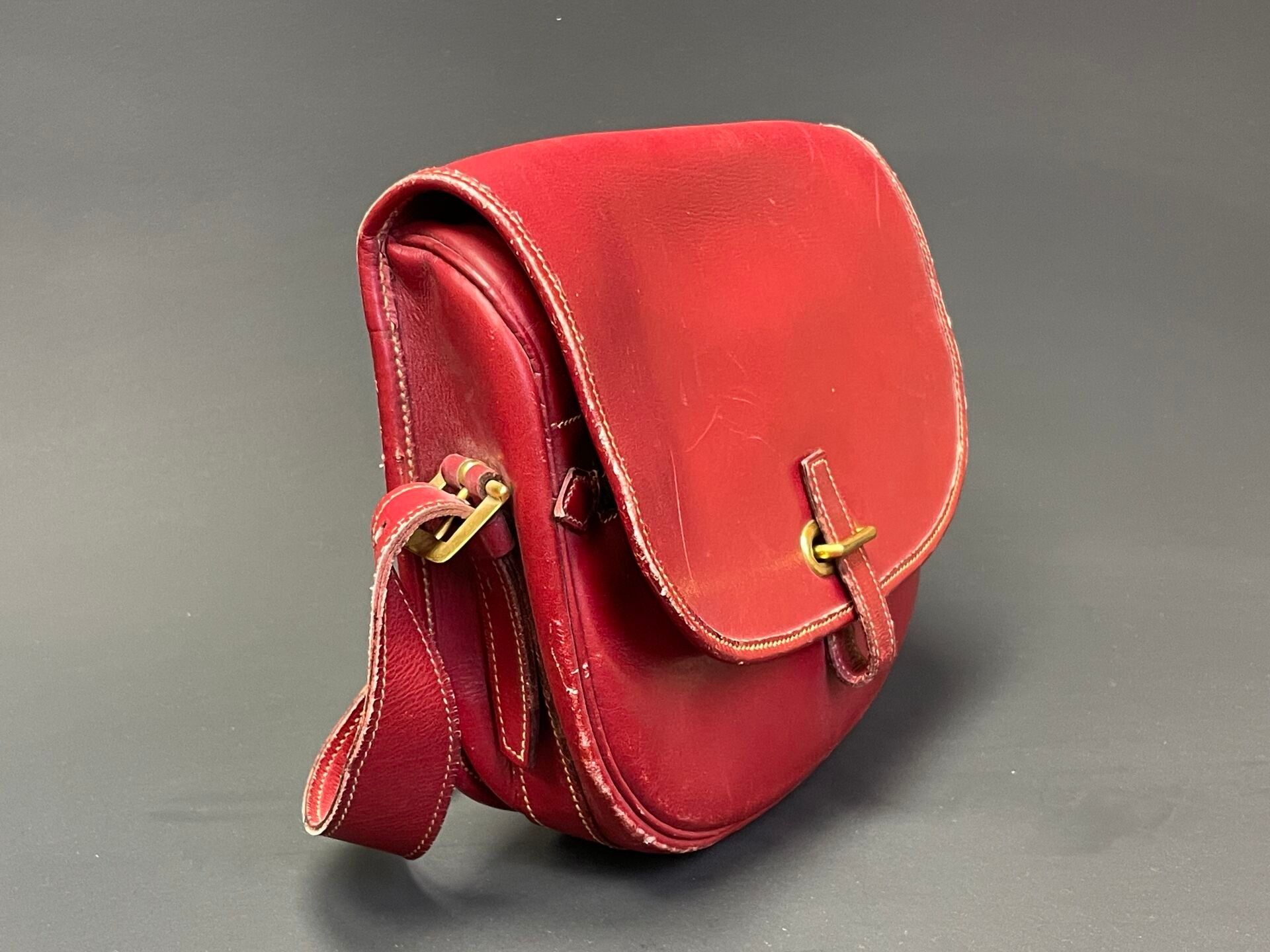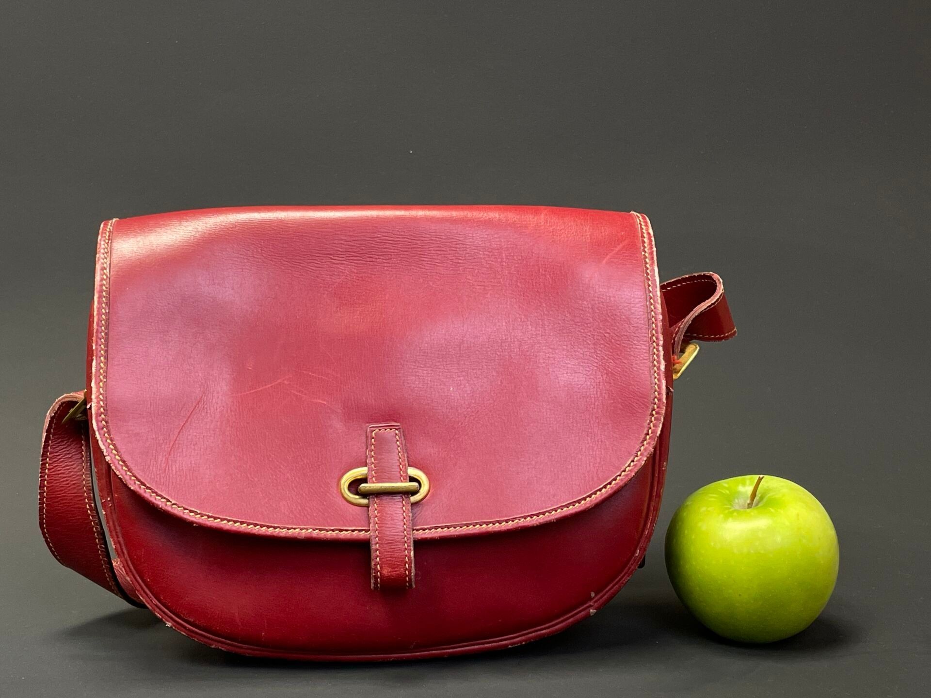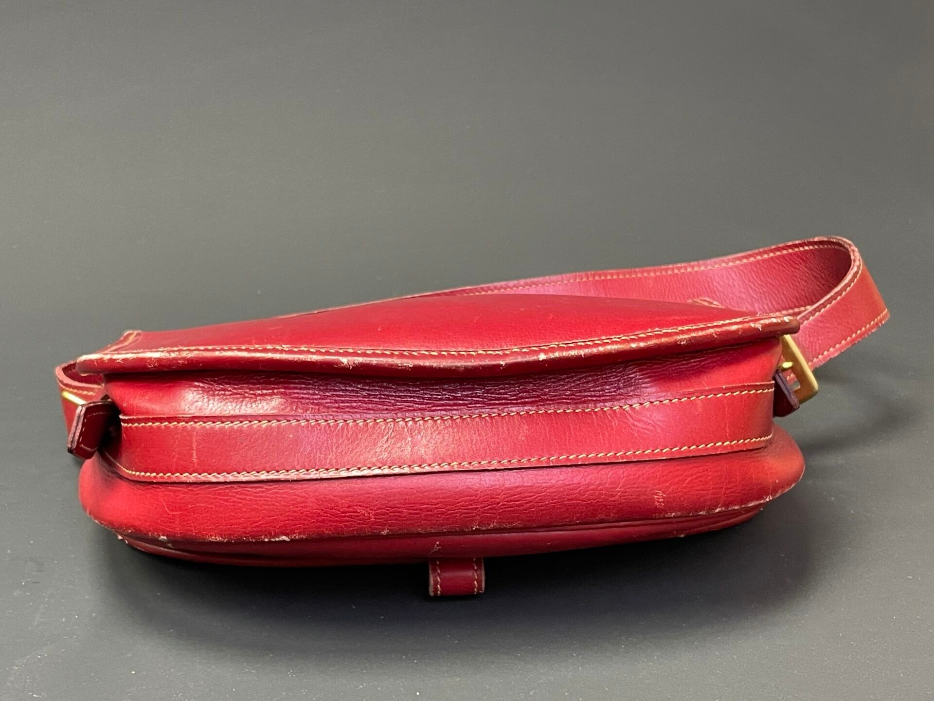 Golf ball" bag in burgundy red box calfskin, small handle.