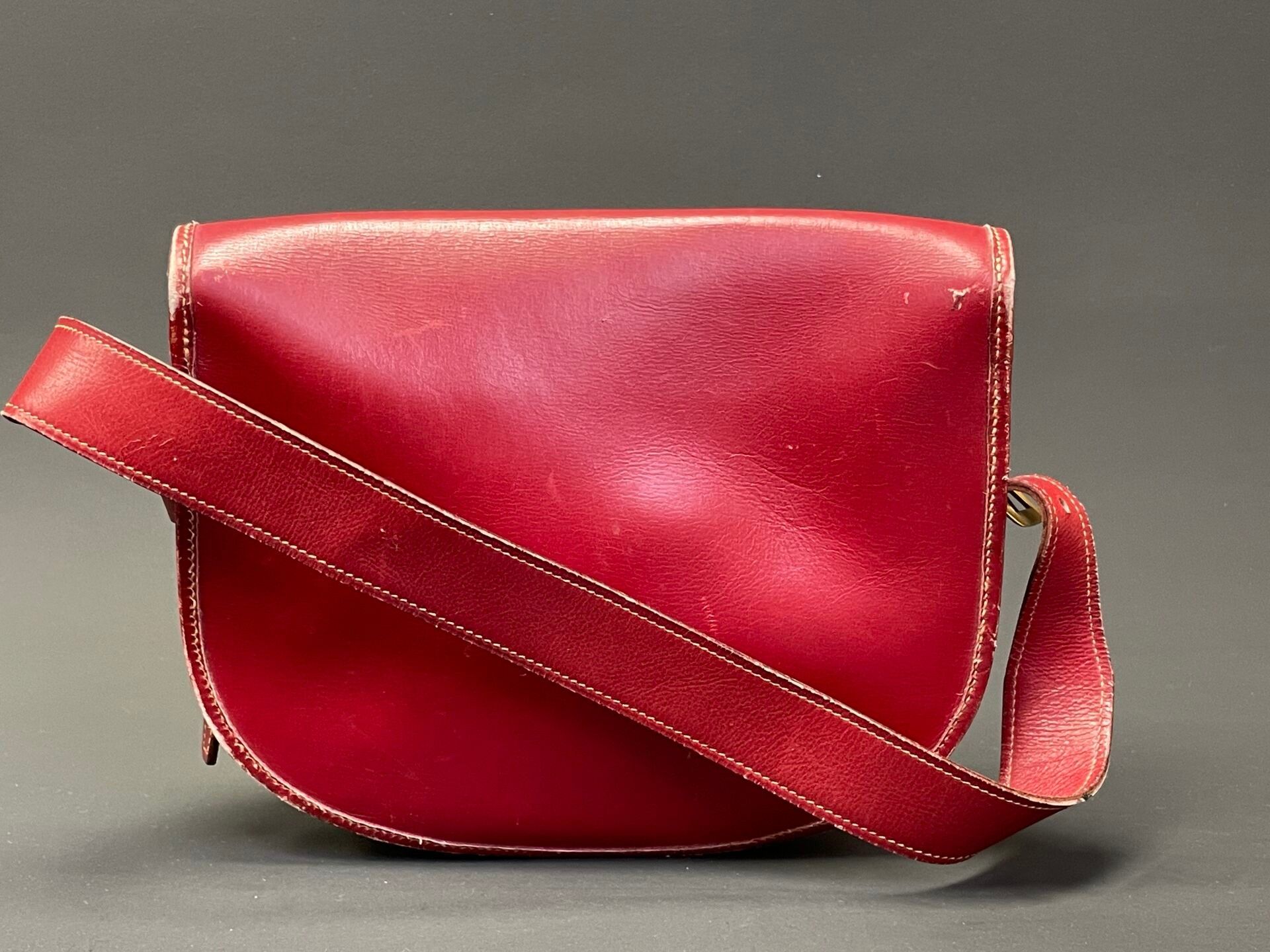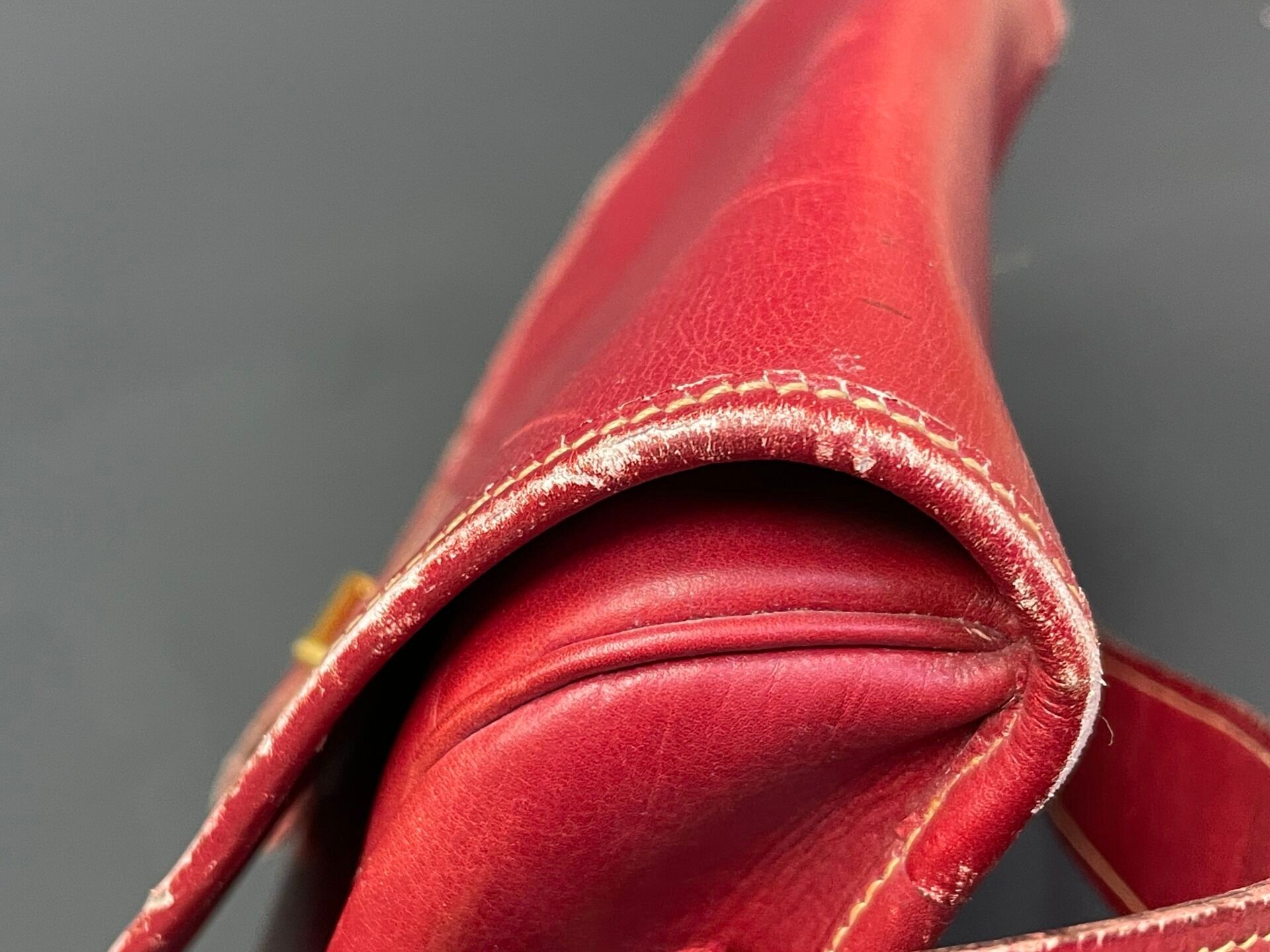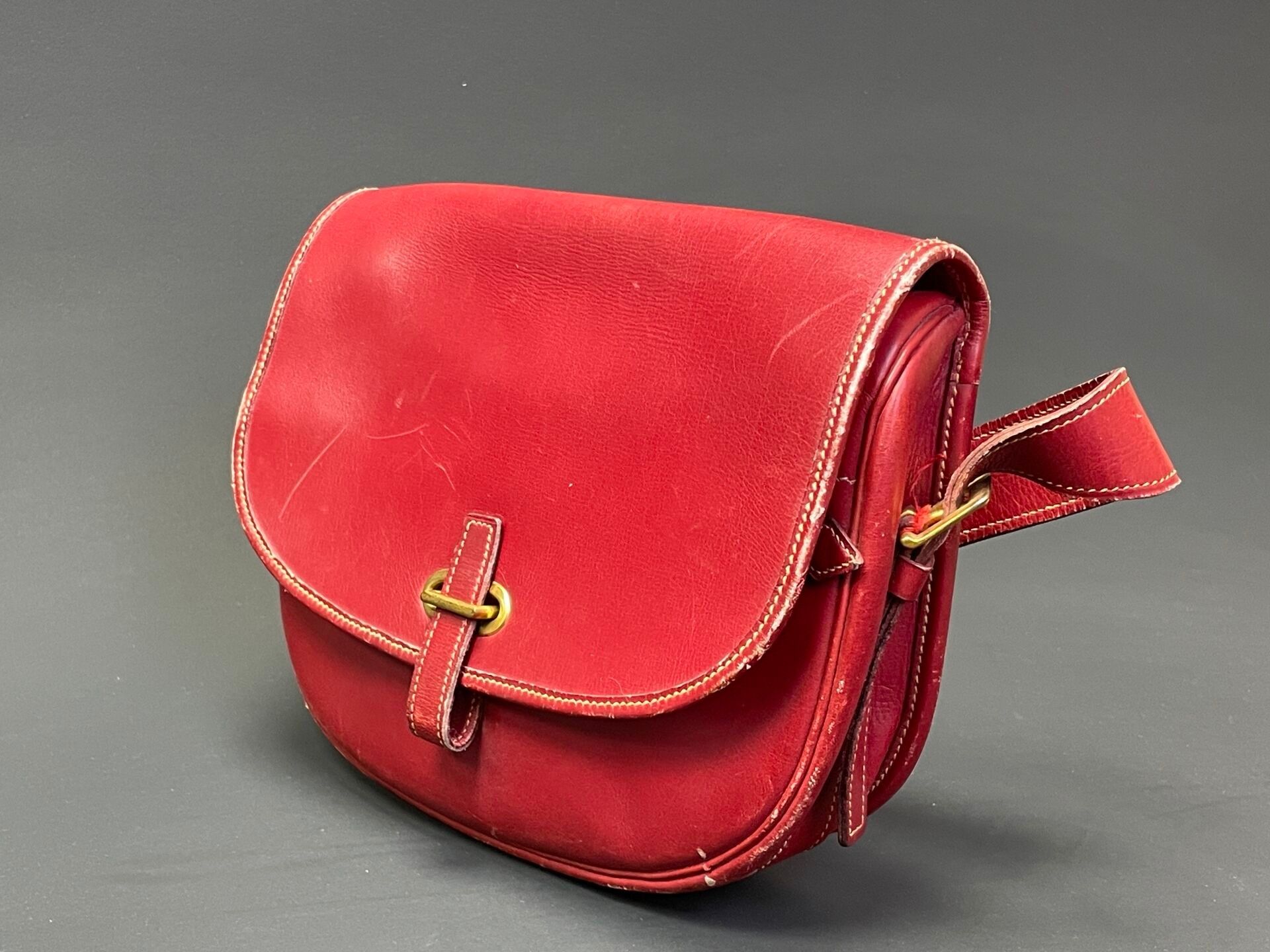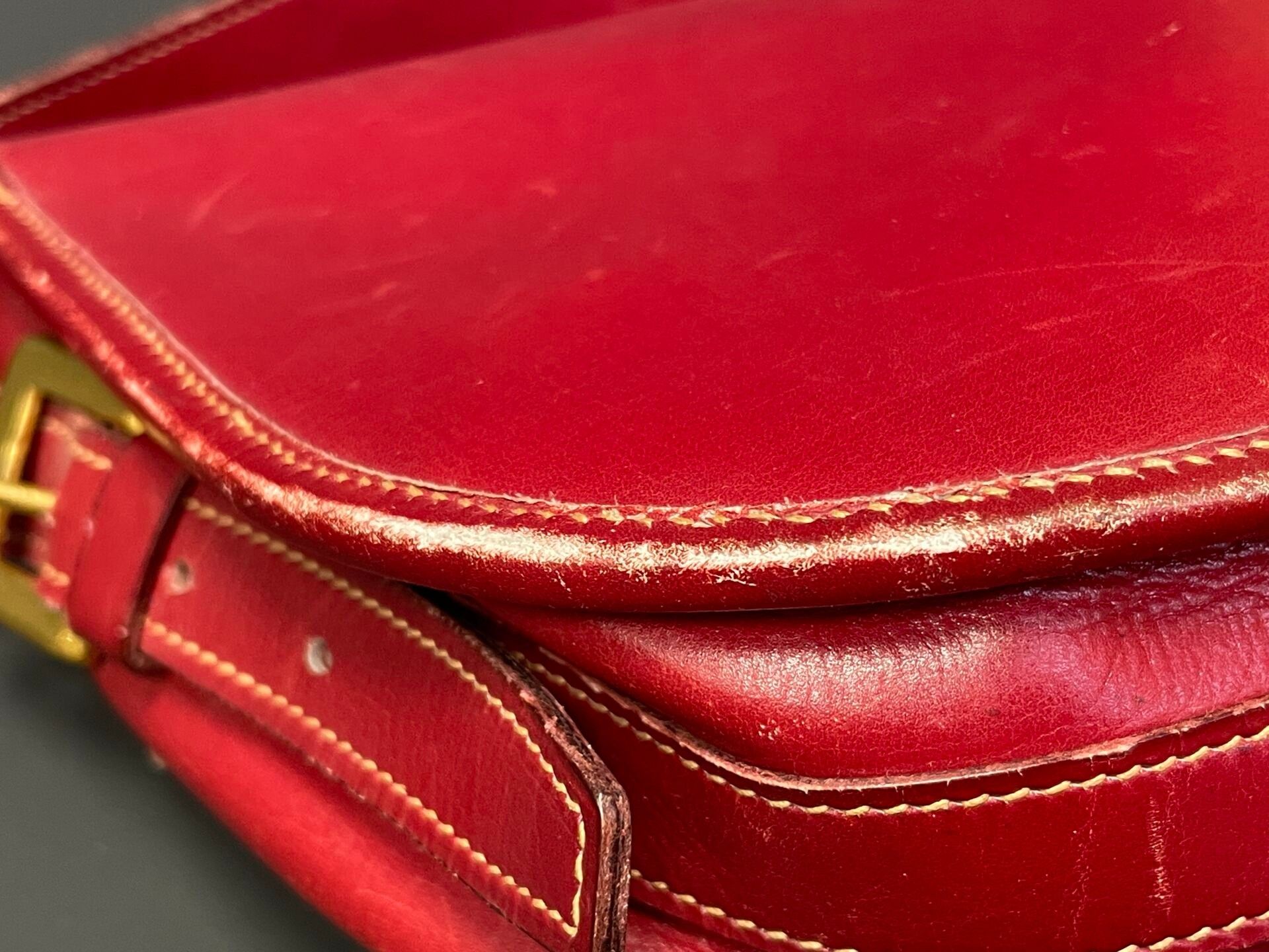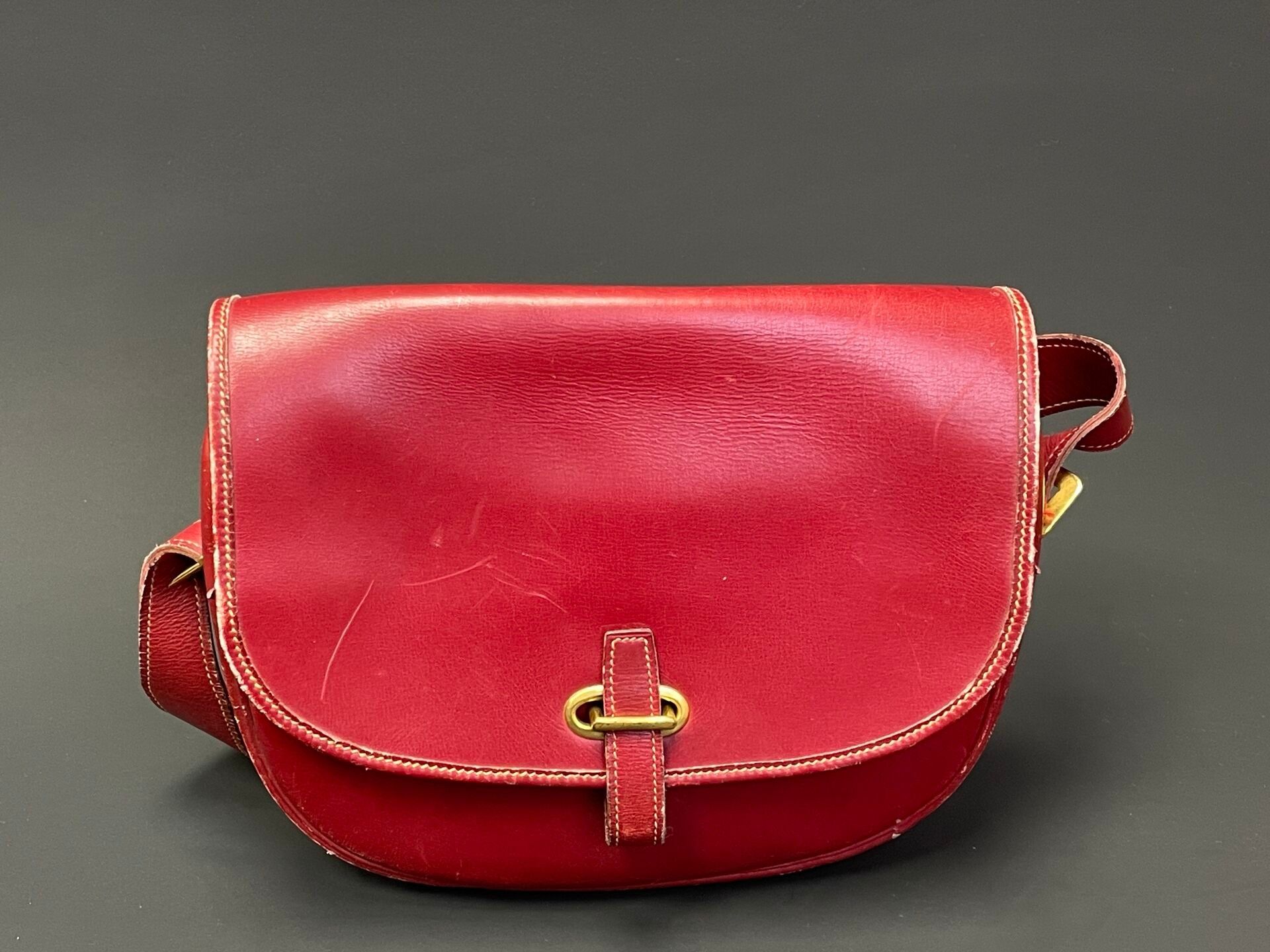 Golf ball" bag in burgundy red box calfskin, small handle.
