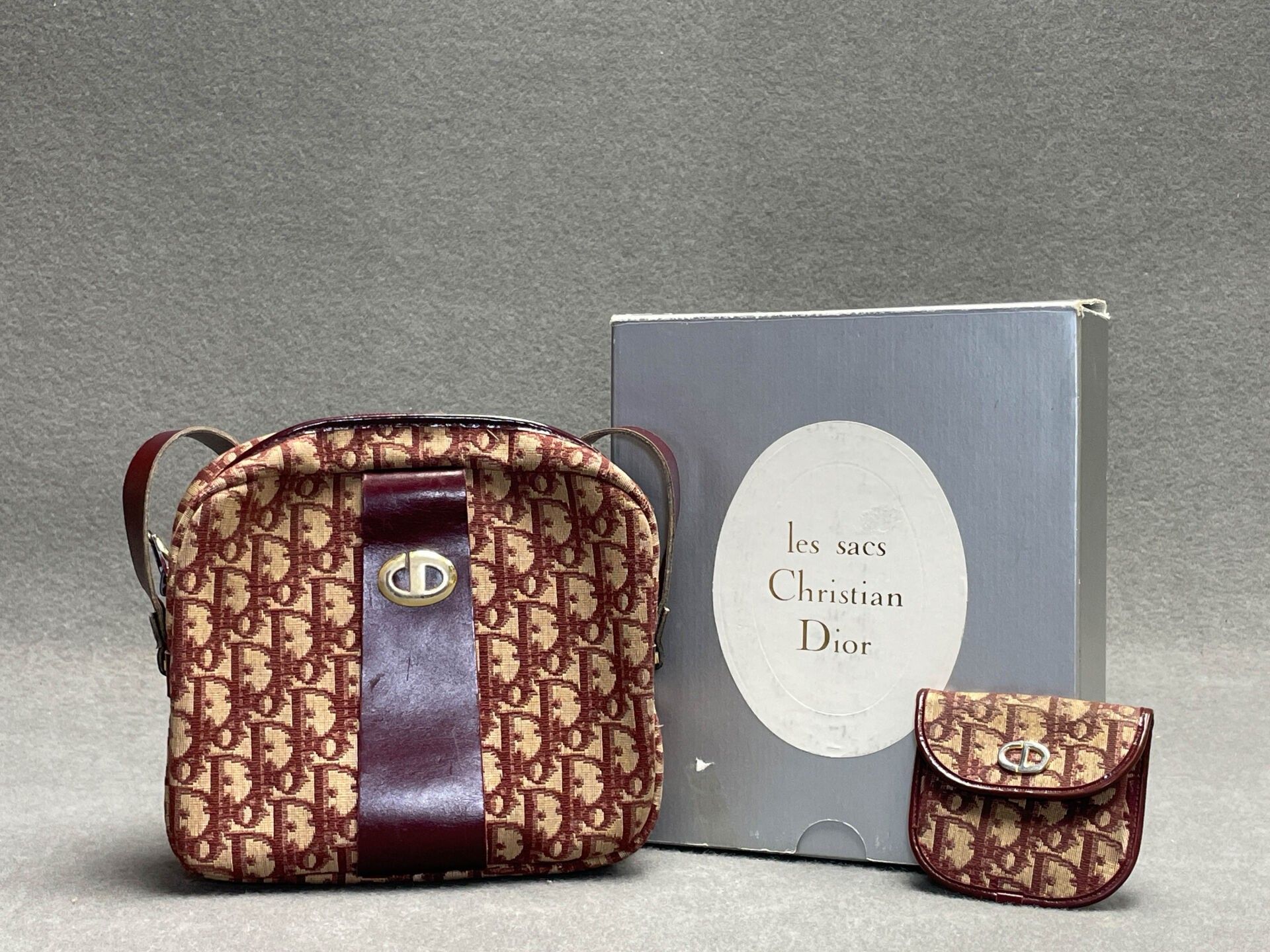 CHRISTIAN DIOR Trotter handbag in burgundy monogram canvas a…