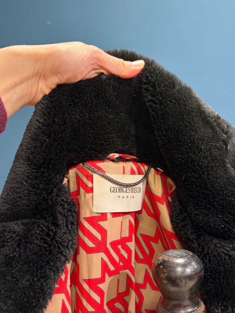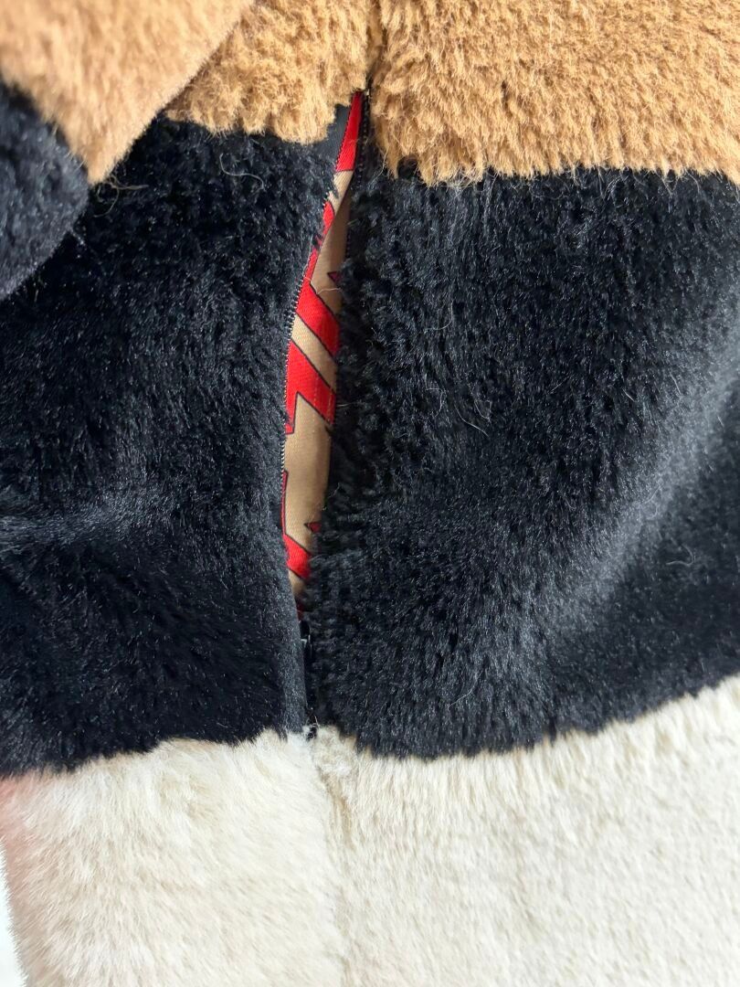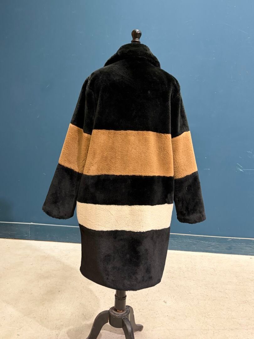 GEORGES RECH Imitation fur coat with wide black, beige and b…