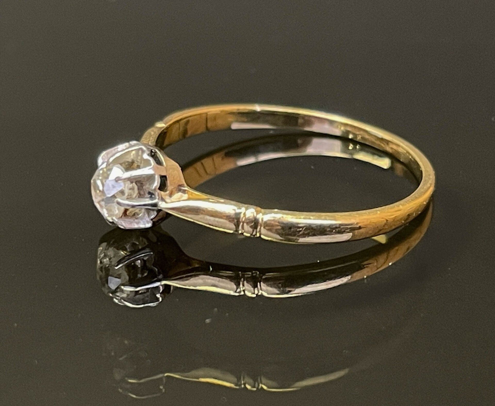 Yellow gold solitaire set with a small old-cut diamond, approx. 0.20 ct.