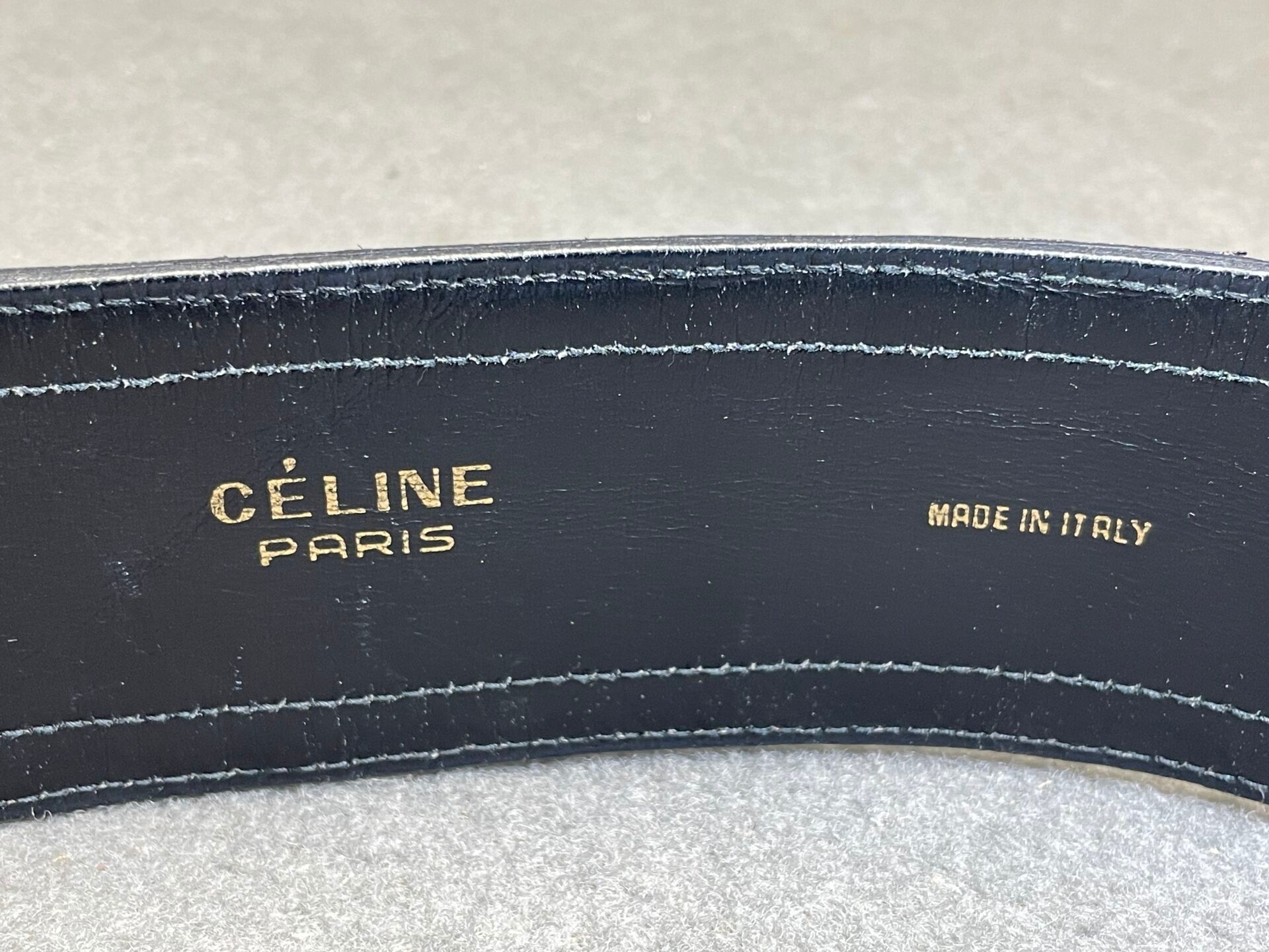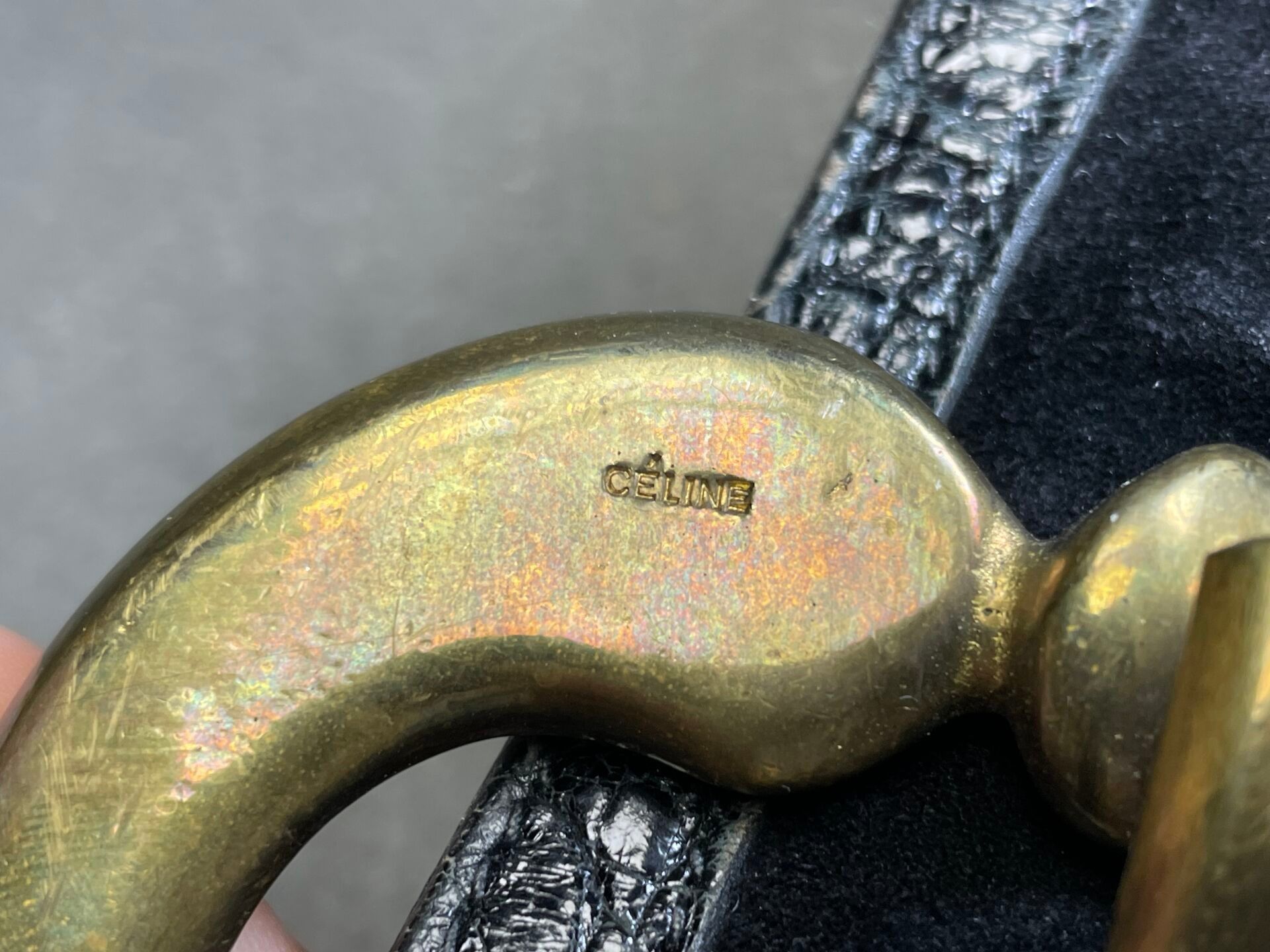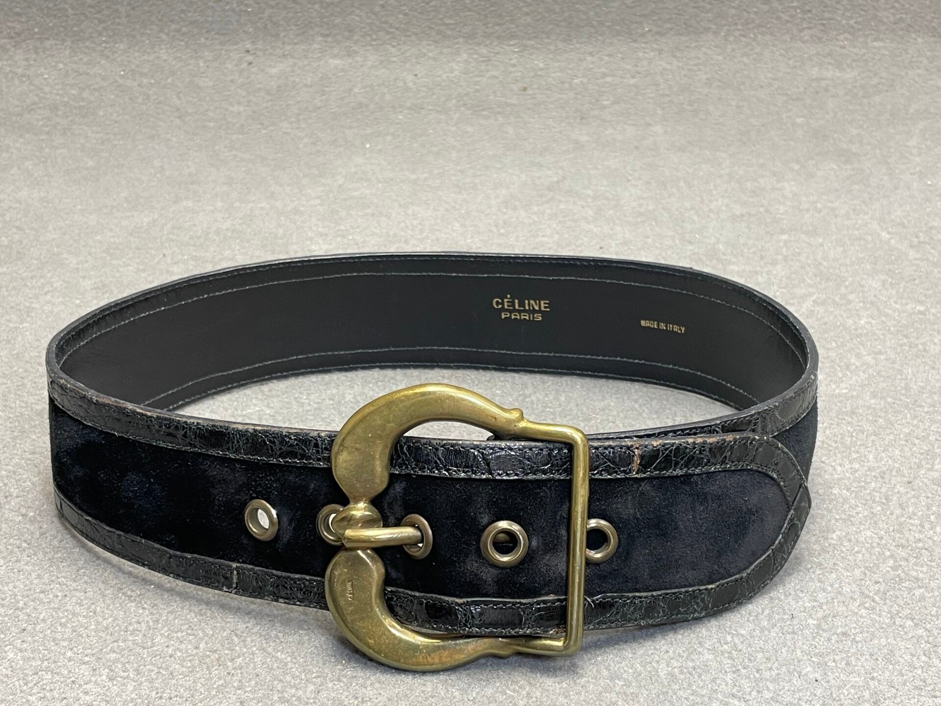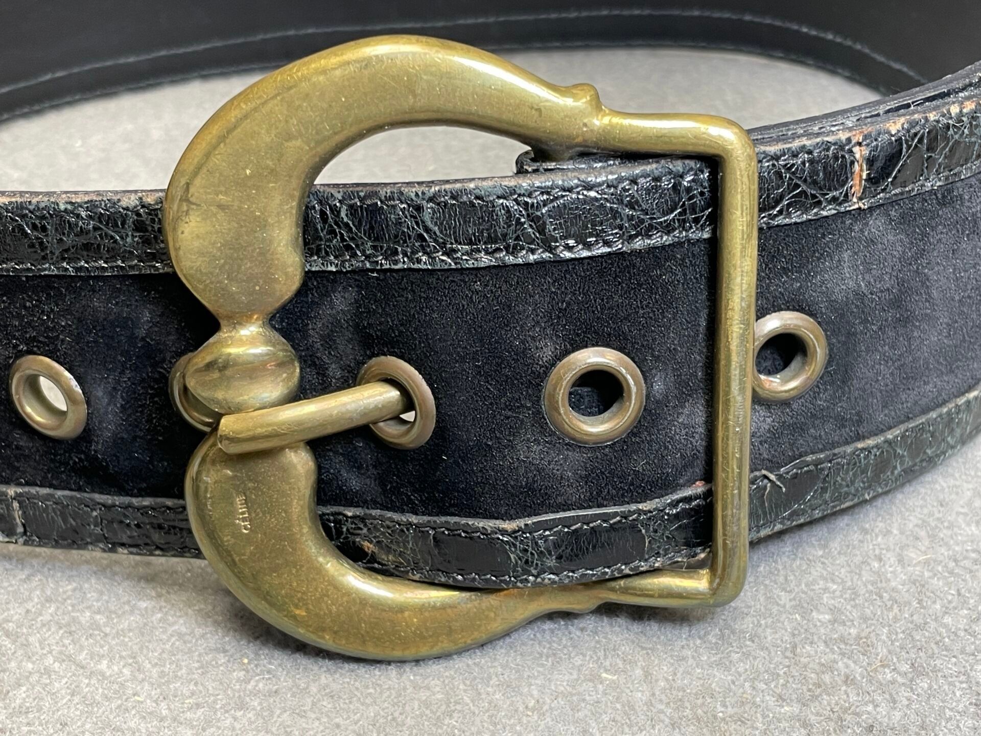 CÉLINE. Patent leather and black suede woman's belt, brass b…