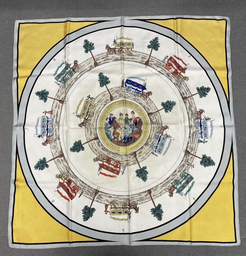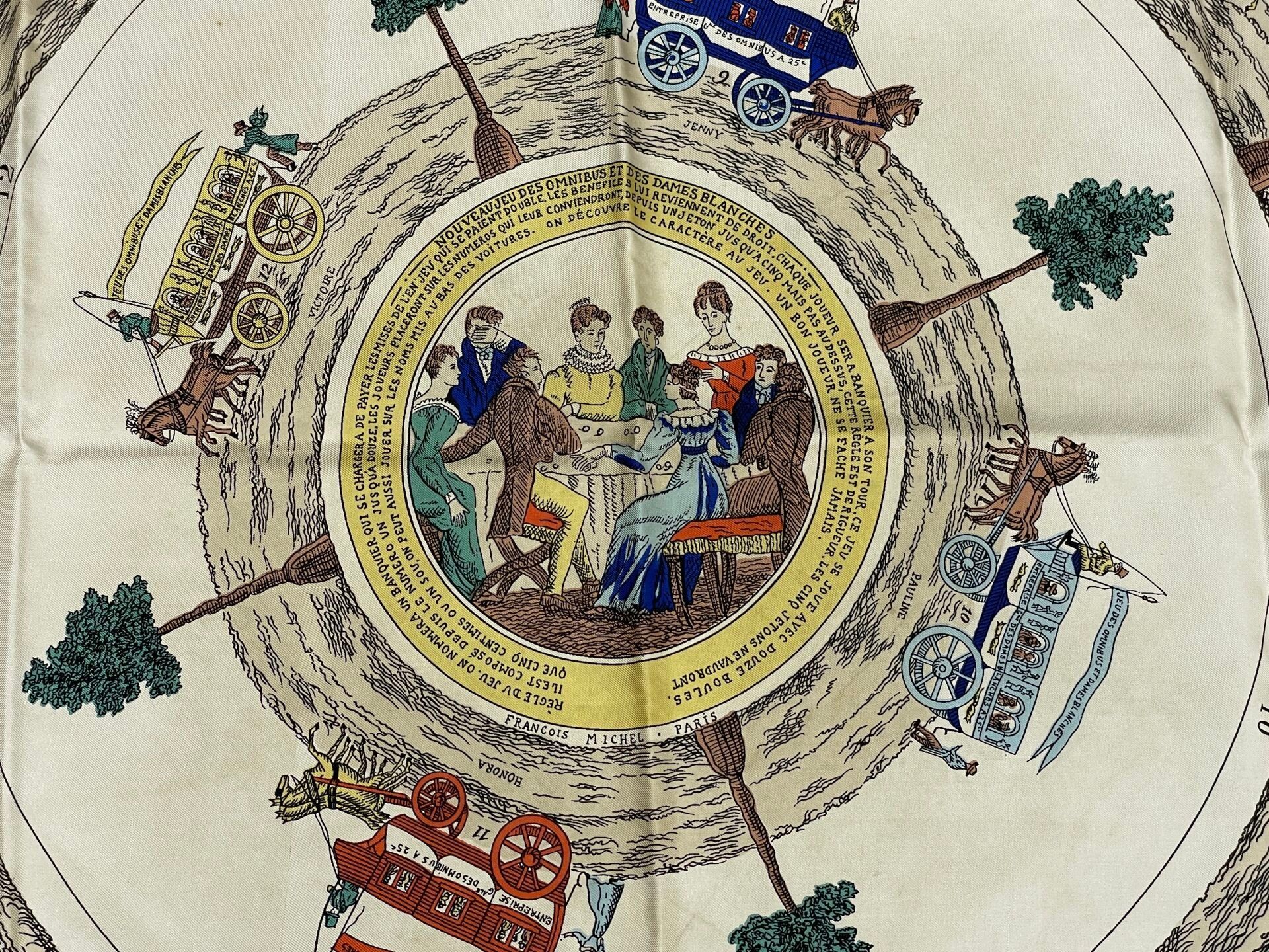 HERMES Paris. Printed silk twill square "Jeu des omnibus et …