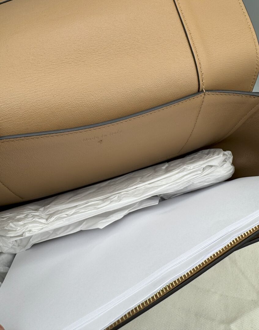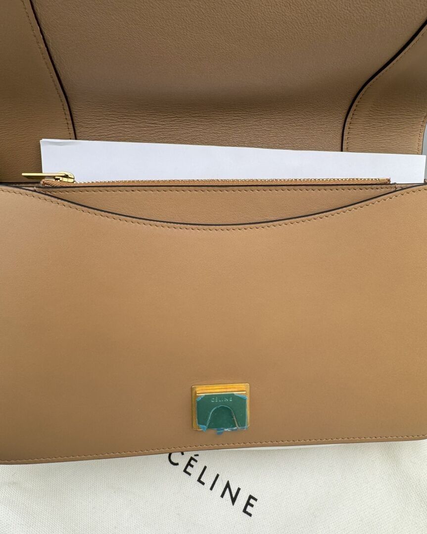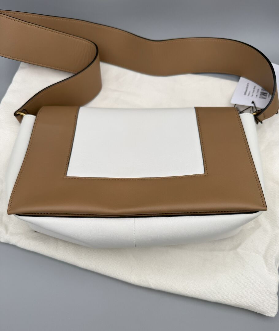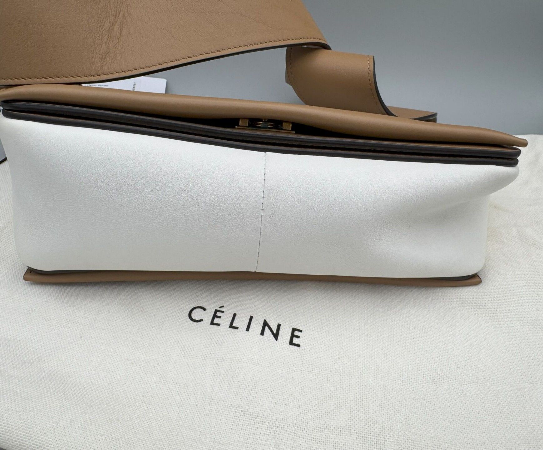 CELINE. FRAME bag in two-tone Tan/Optic White calfskin and l…