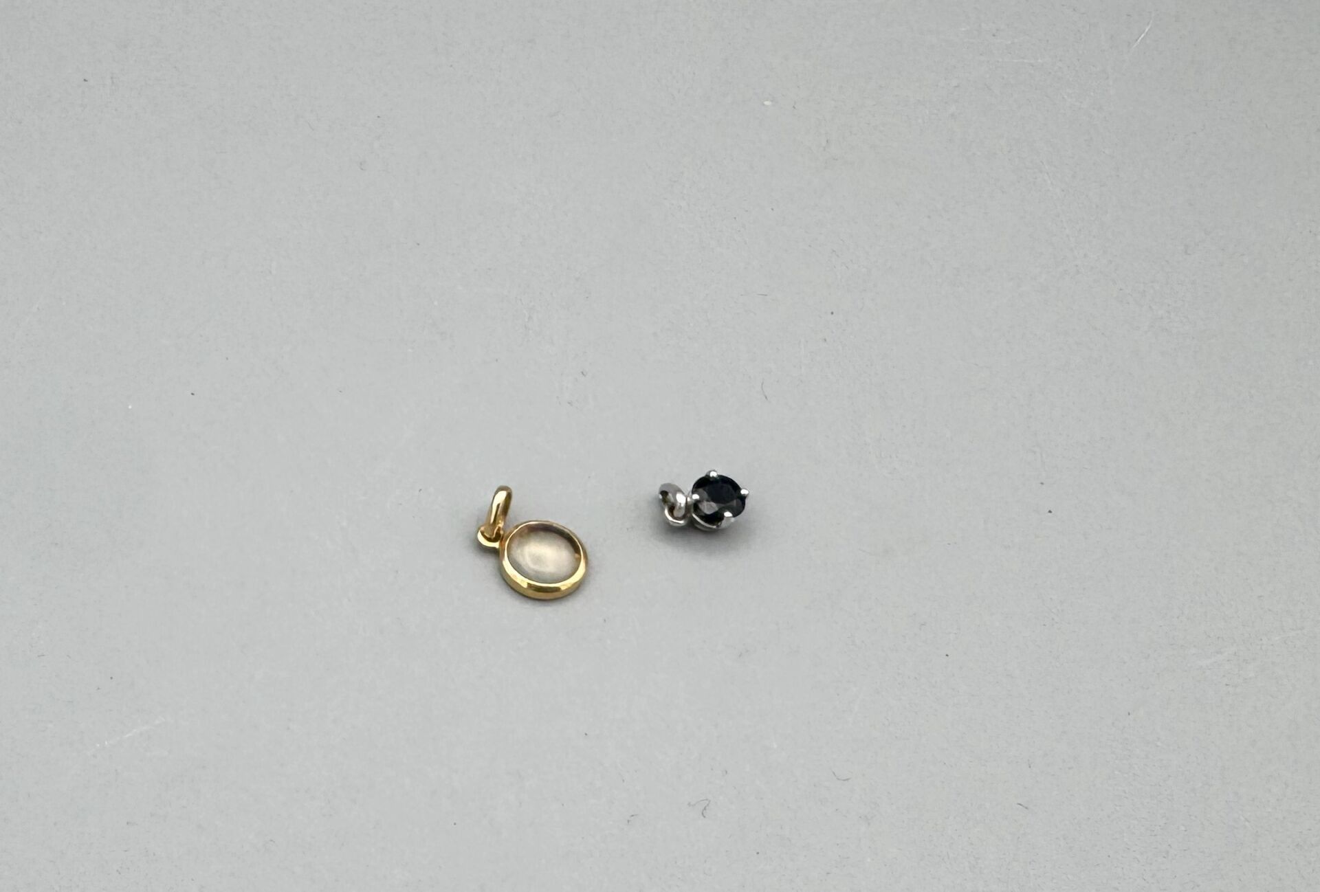Two pendants in 750 thousandths gold, one set with a moonstone and one set with a sapphire - PB: 2.1 g