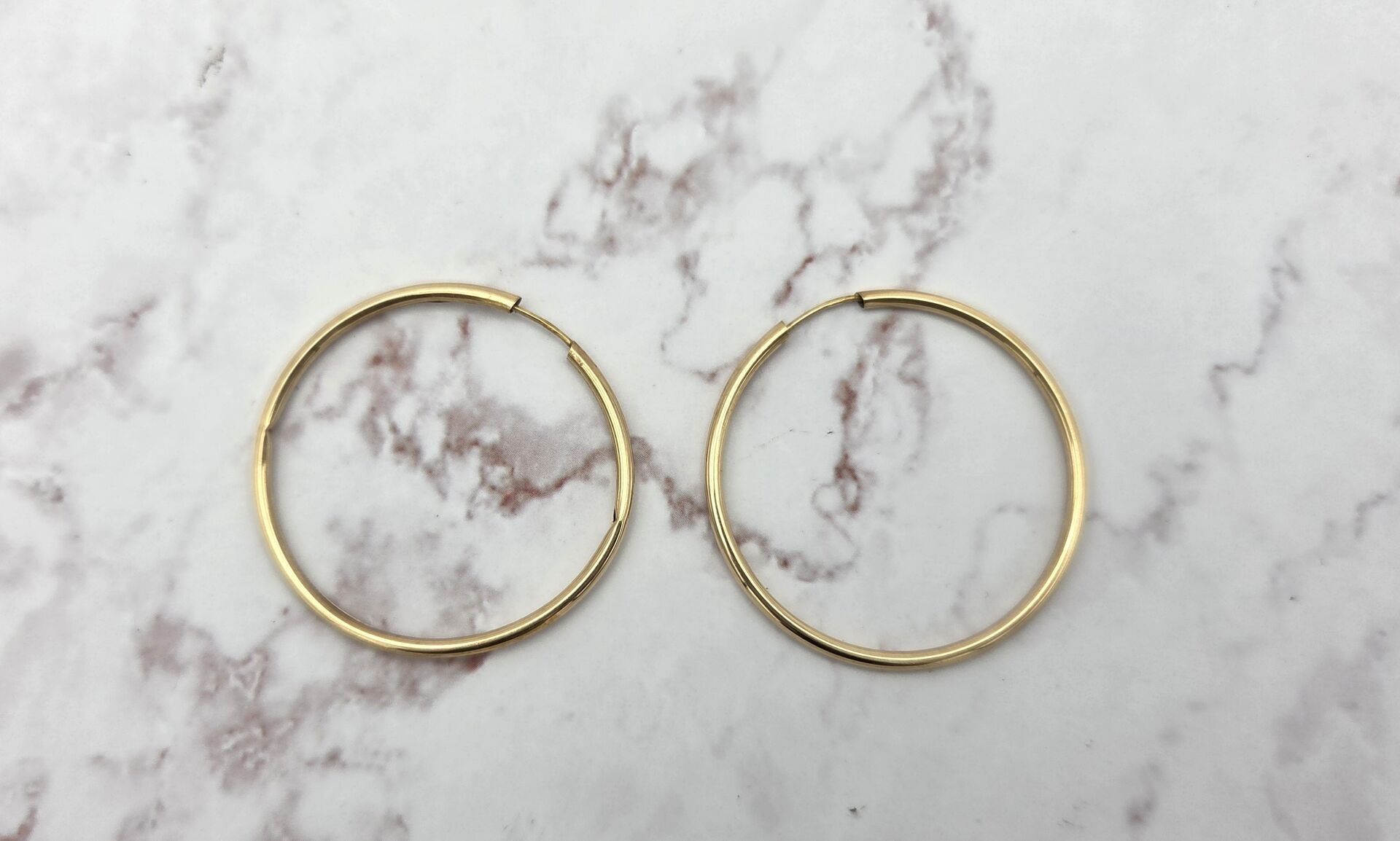 Pair of hoop earrings in 585 thousandths yellow gold, two depressions - Weight: 1.4 g - Diameter: 3.2 cm