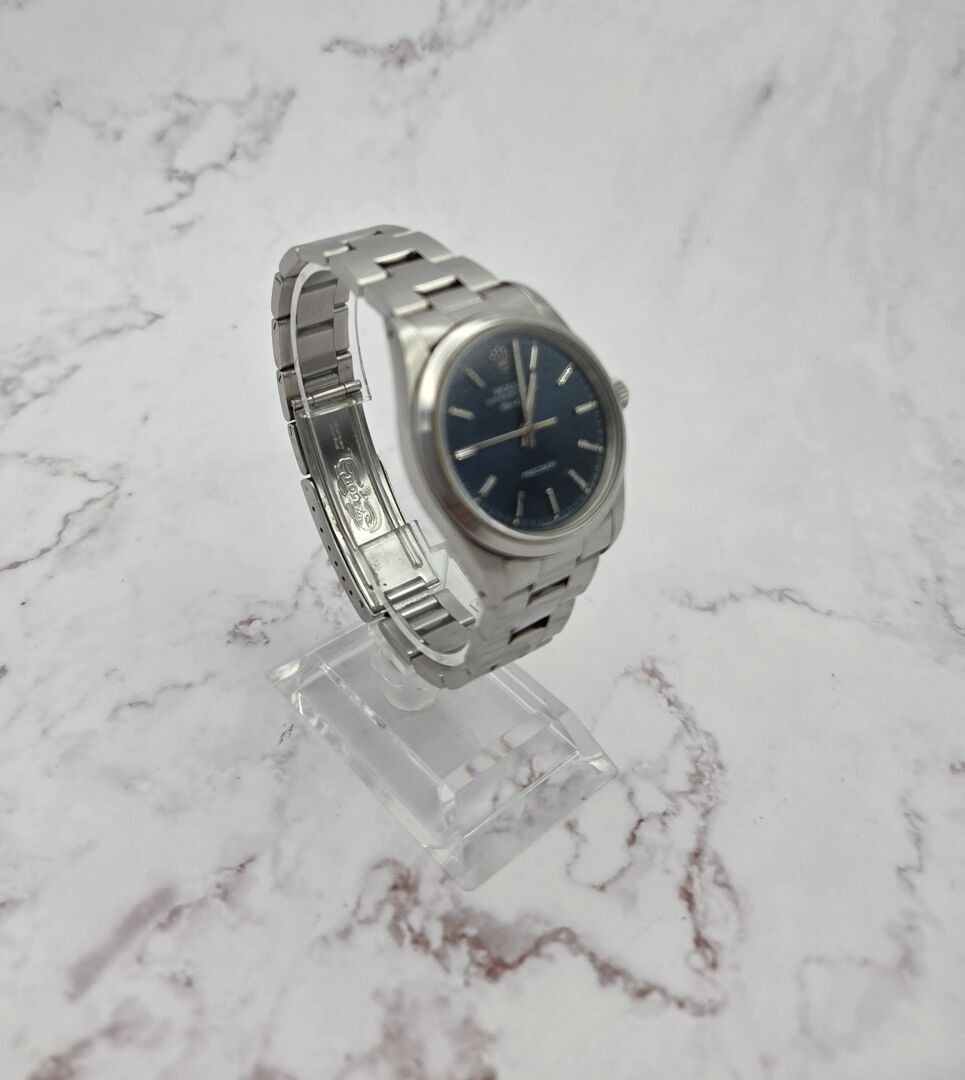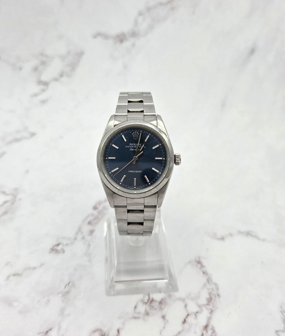 ROLEX - Oyster Perpetual Air-King Precision 14000 watch, steel bracelet, round case, navy blue dial, applied baton hour markers, Oyster bracelet with folding clasp, serial number F7503** - Case diameter: 35mm, appears to be working at time of survey