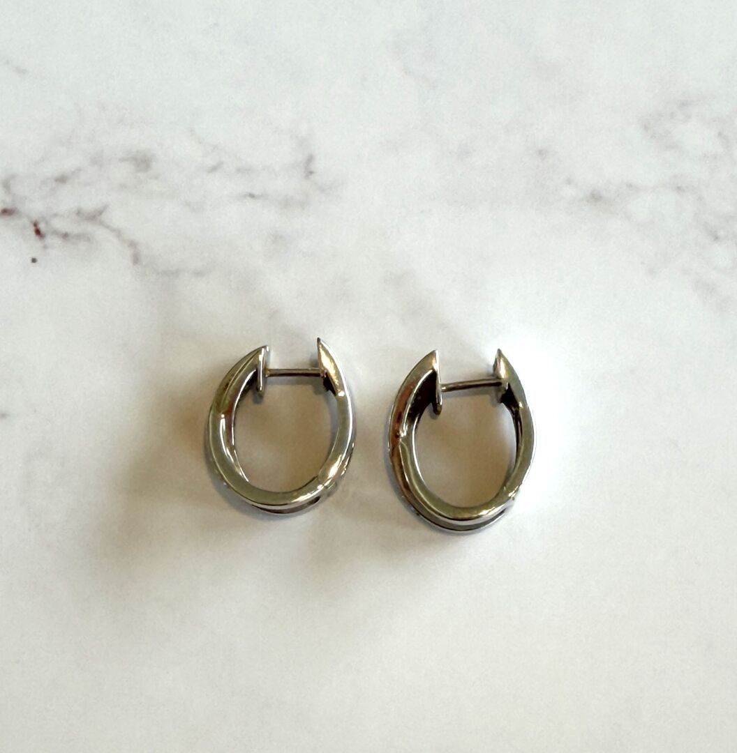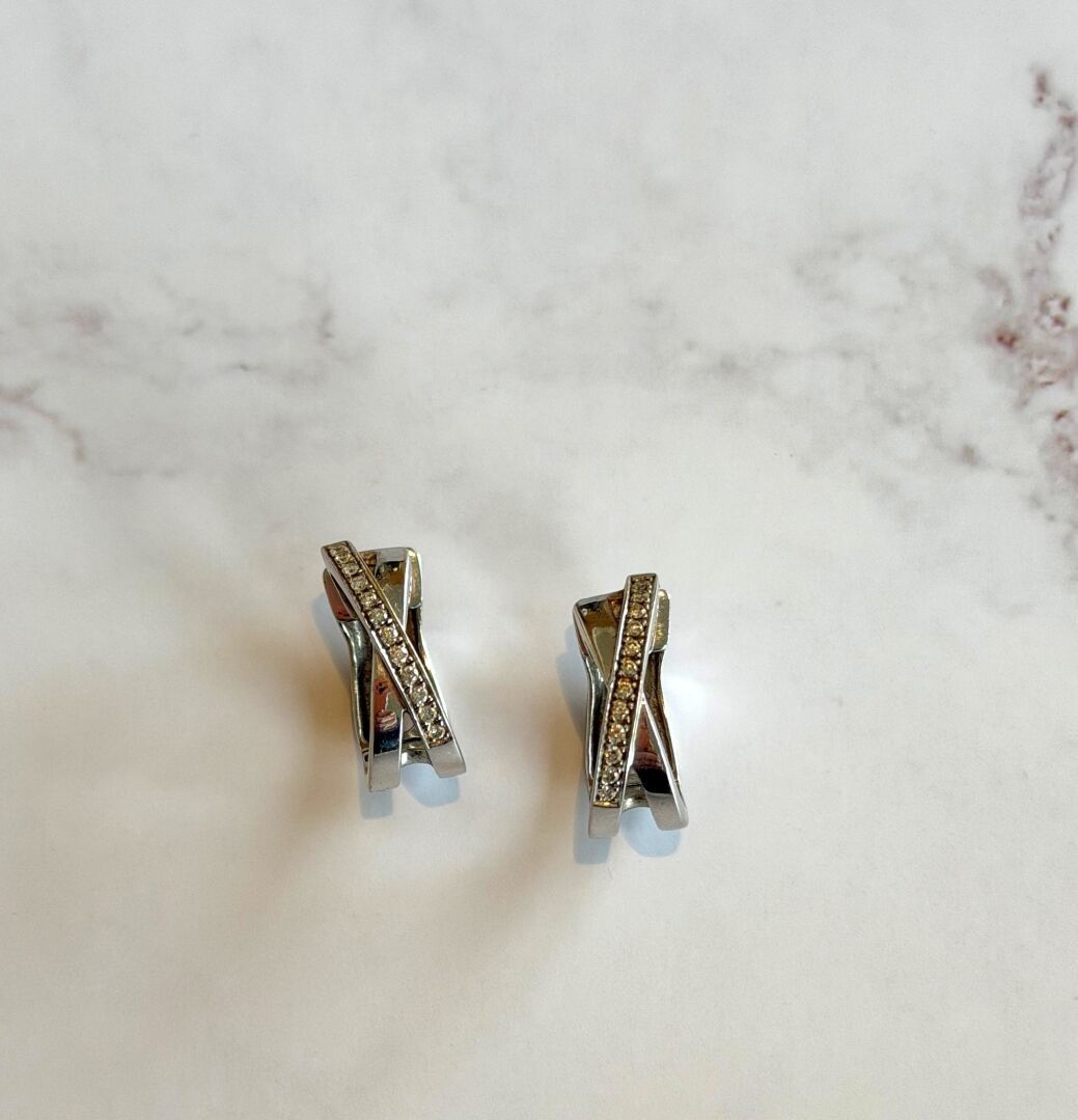 Pair of earrings in 585 thousandths white gold, double crossed motifs, diamond-paved, weight: 6.6 g, length: 2 cm