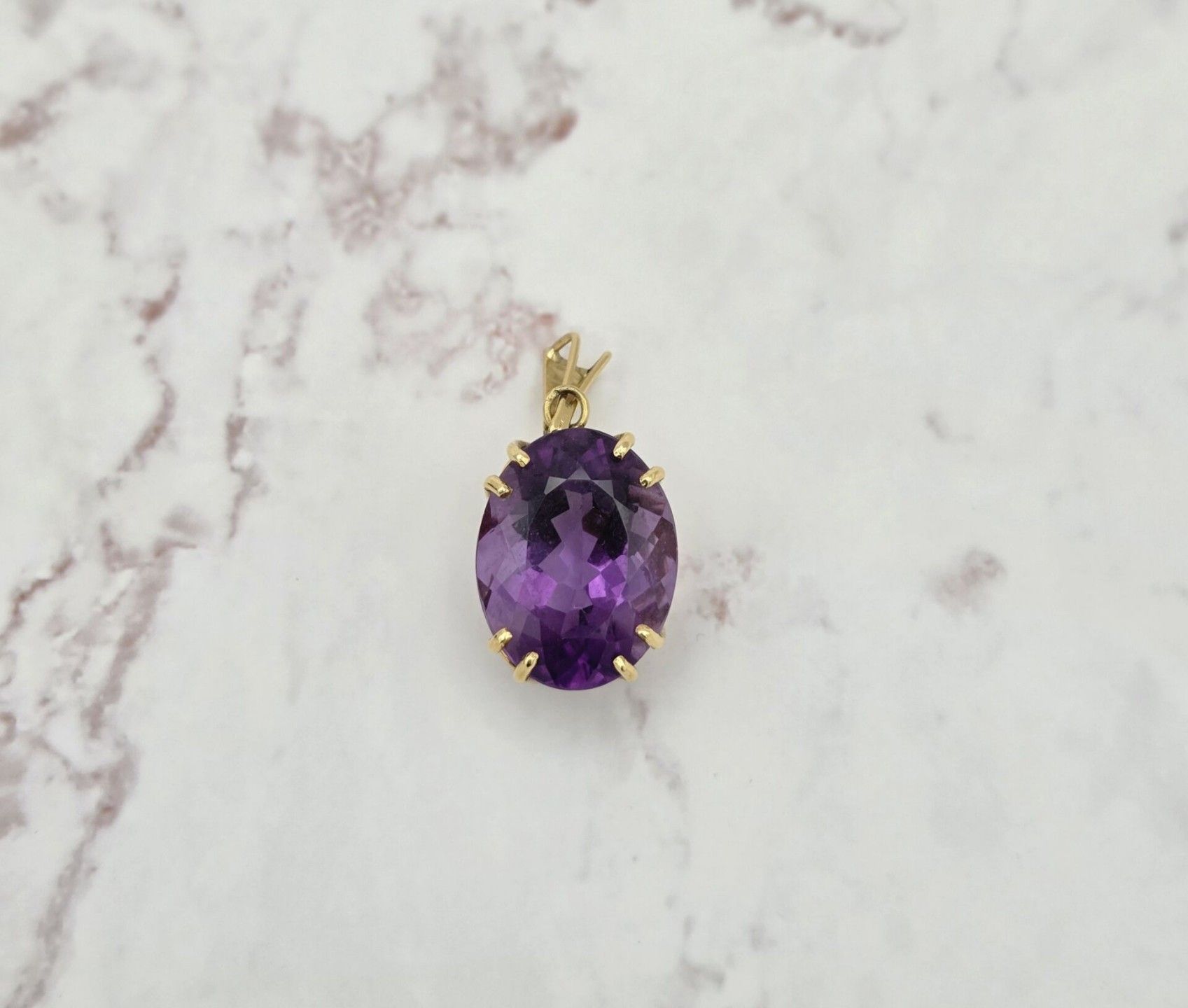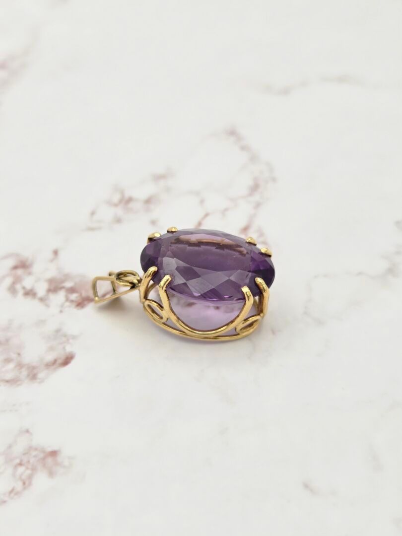 A pendant in yellow gold 750 thousandths set with an oval amethyst - PB: 11.5g - Dimensions: 24.7 x 19.05 x 12.9 mm - Approximately 30K - Hallmarked Owl