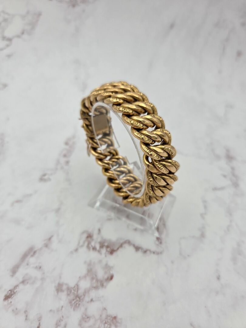 A bracelet in 750 thousandths yellow gold, American stitch - B.P.: 48.1g - Length: approximately 17 cm - Width: 2 cm