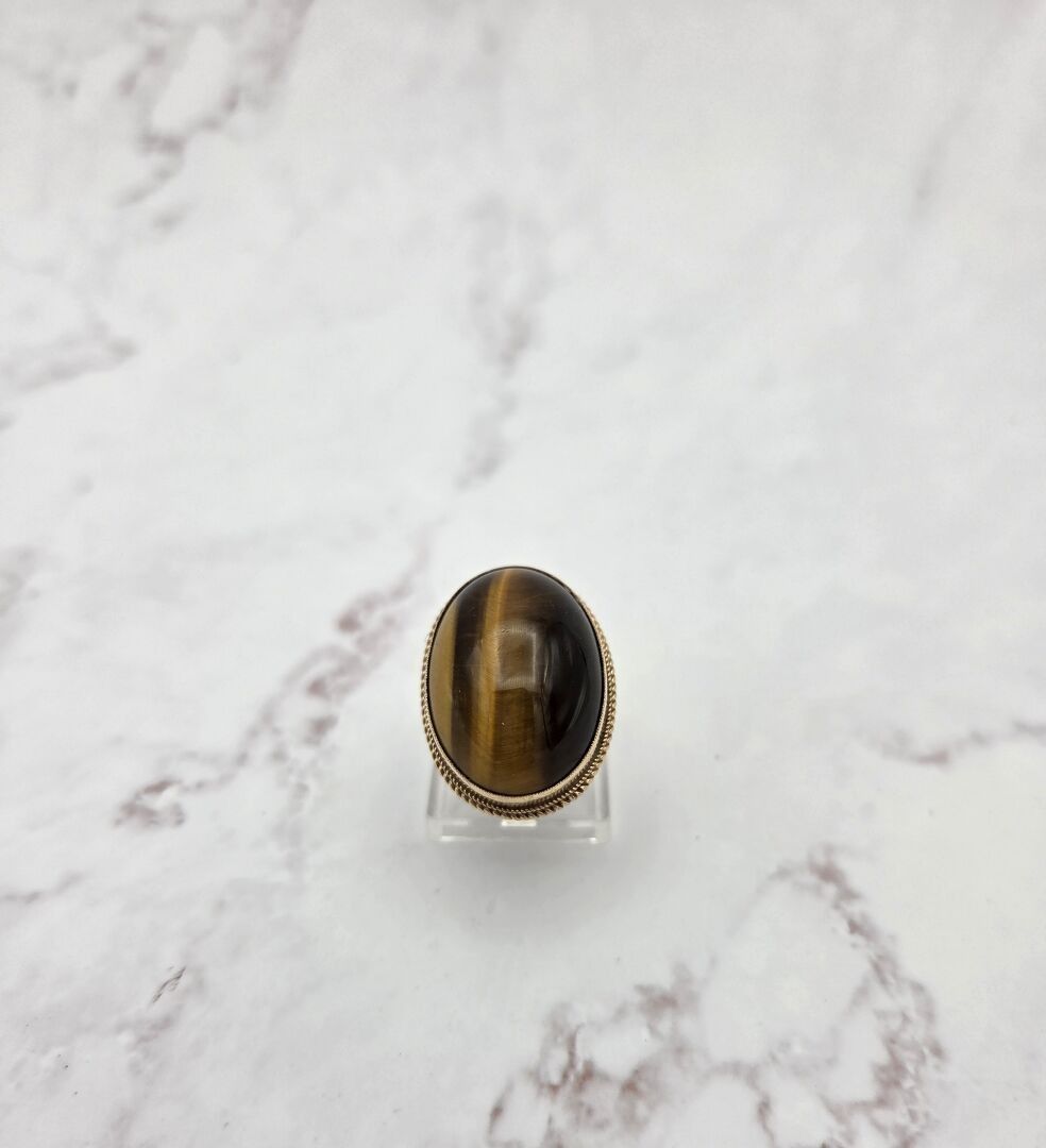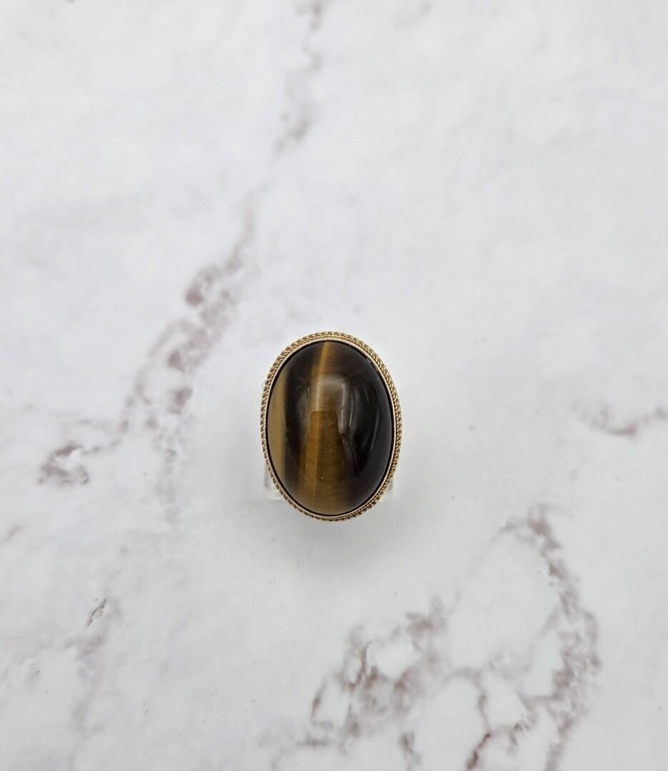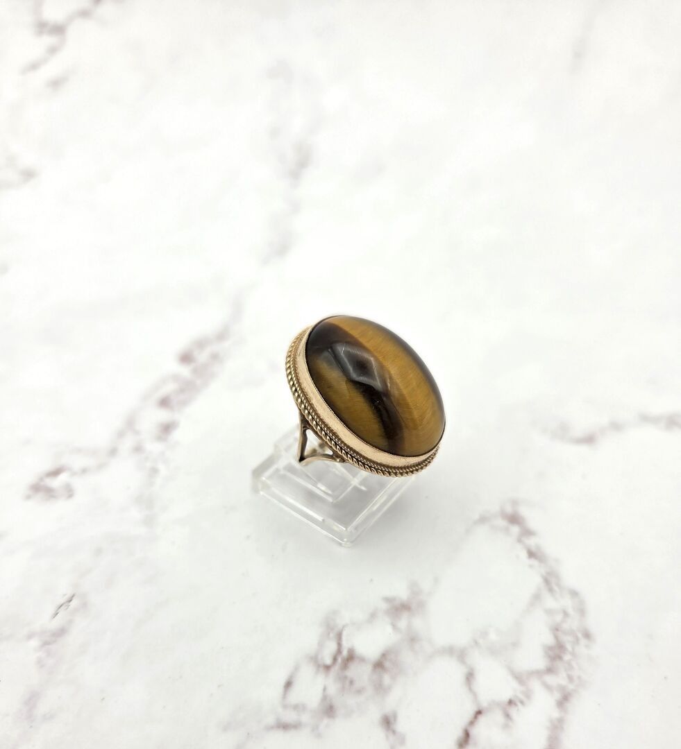 A ring in 375 thousandths gold, set with a tiger's eye quartz - PB: 9.2g