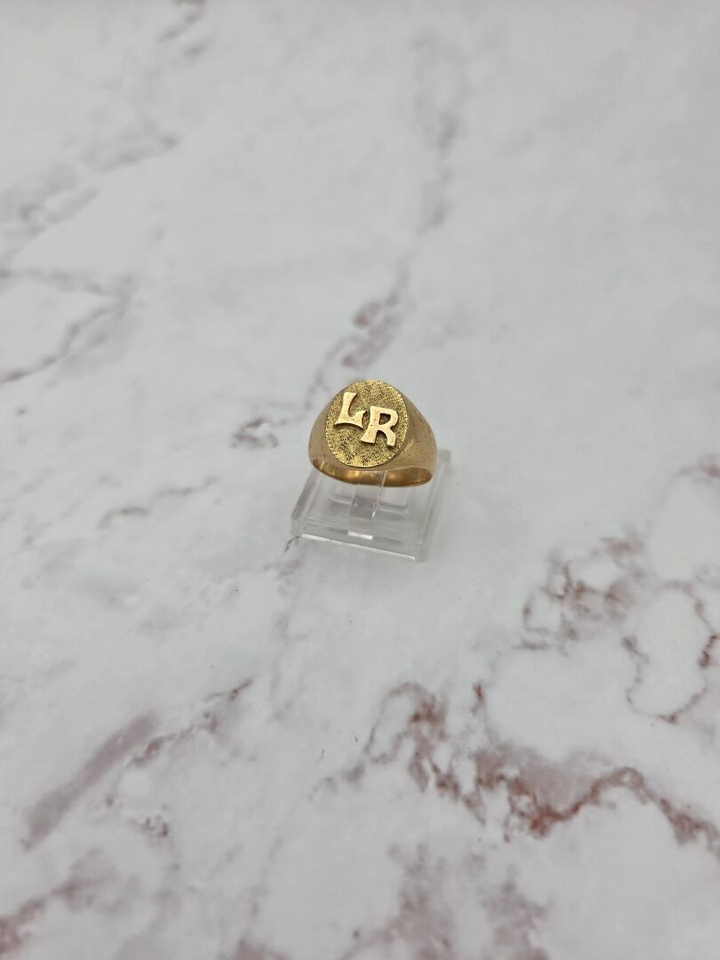 Chevalière in 750 thousandths yellow gold, numbered LR Weight: 7.6 g TDD 52