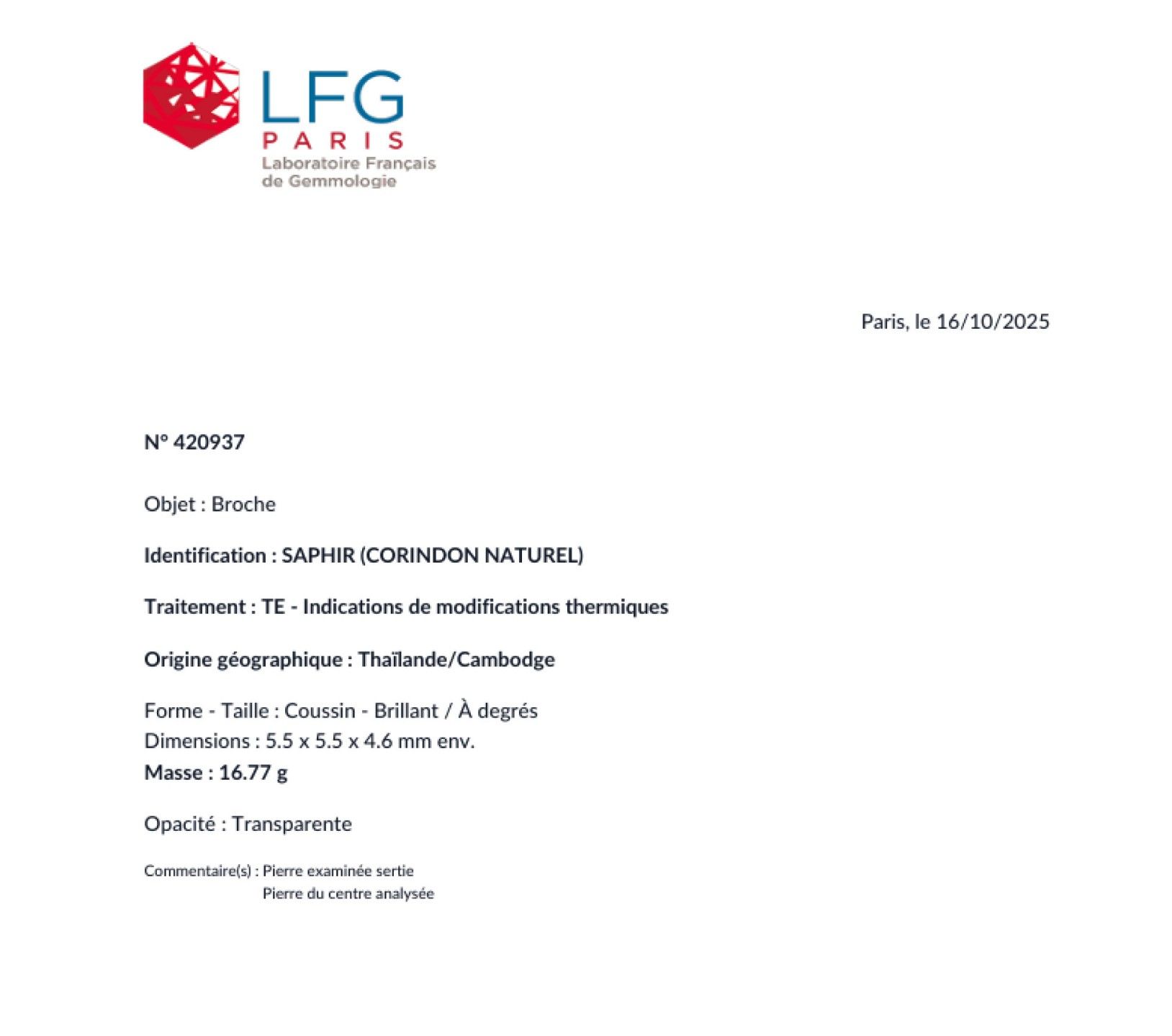 Geographical origin: Thailand/Cambodia