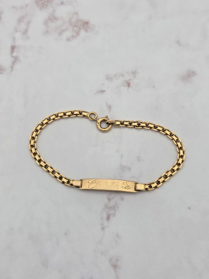 Child's identity bracelet in engraved 750 thousandths yellow gold - D: 4.9 g