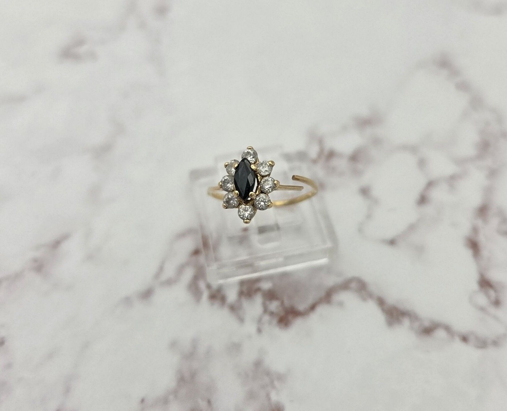 A broken ring in yellow gold 750 thousandths, set with blue and white stones - PB: 1.4 g