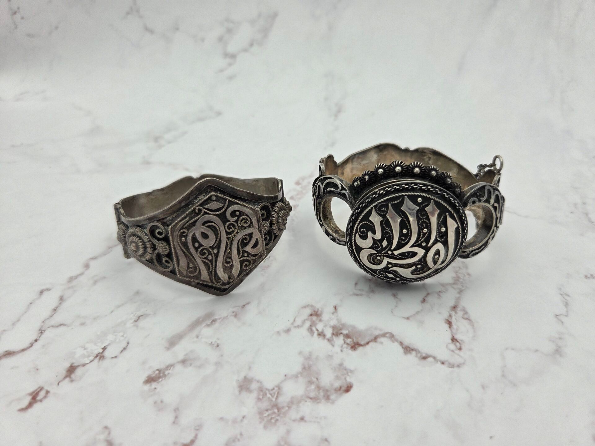 Two silver half-bracelet bracelets, filigree and pseudo-Kufi…