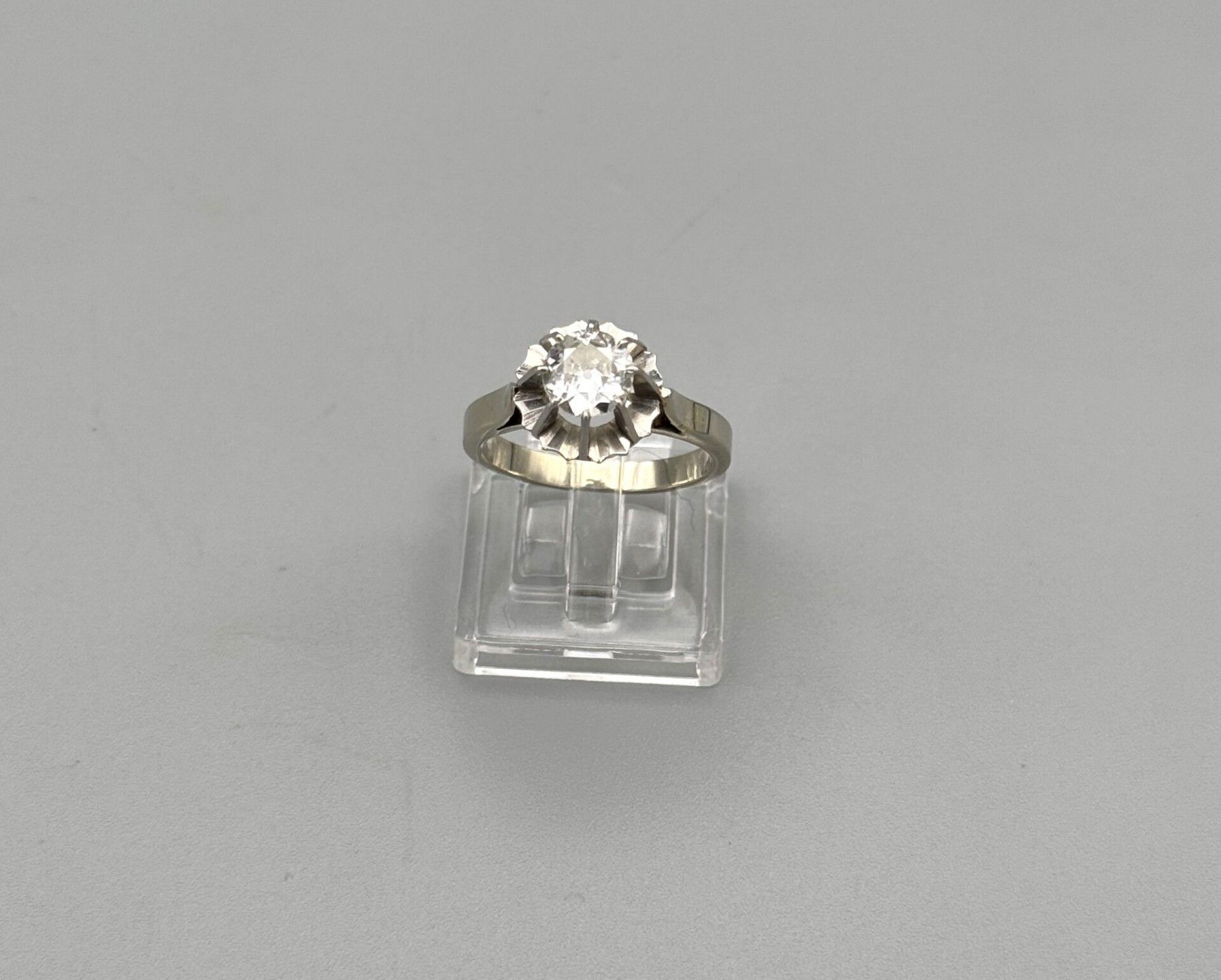 A 750 thousandths white gold and platinum ring set with an old-cut diamond weighing approximately 0.90 cts, PB: 5.4 g TDD: 55, diamond size: 6.7 x 3.2, estimated clarity VS2, estimated colour: I
