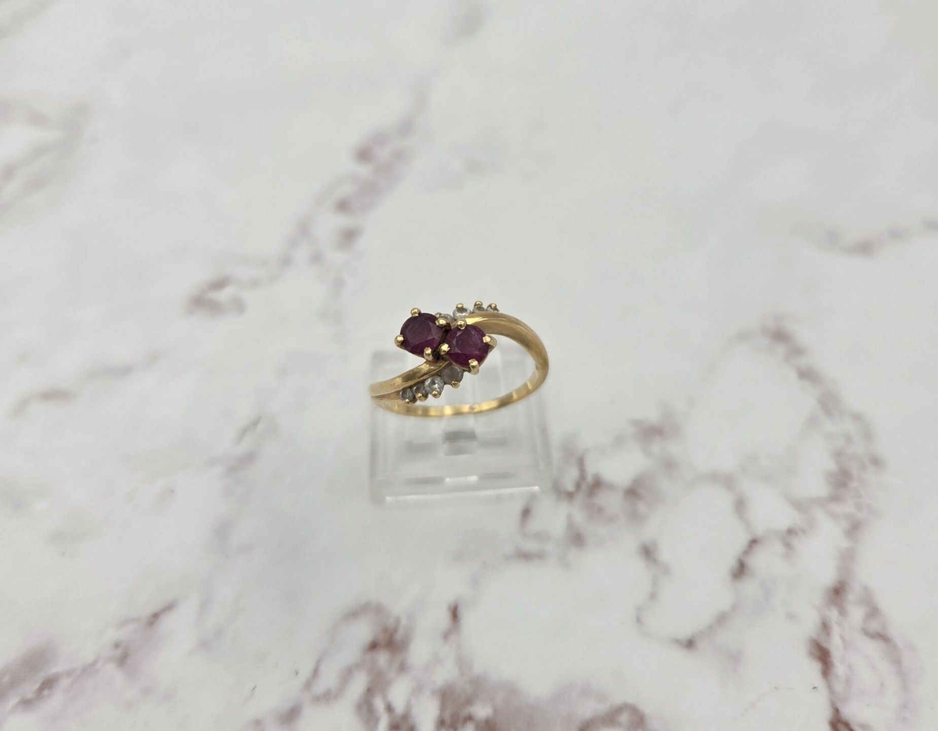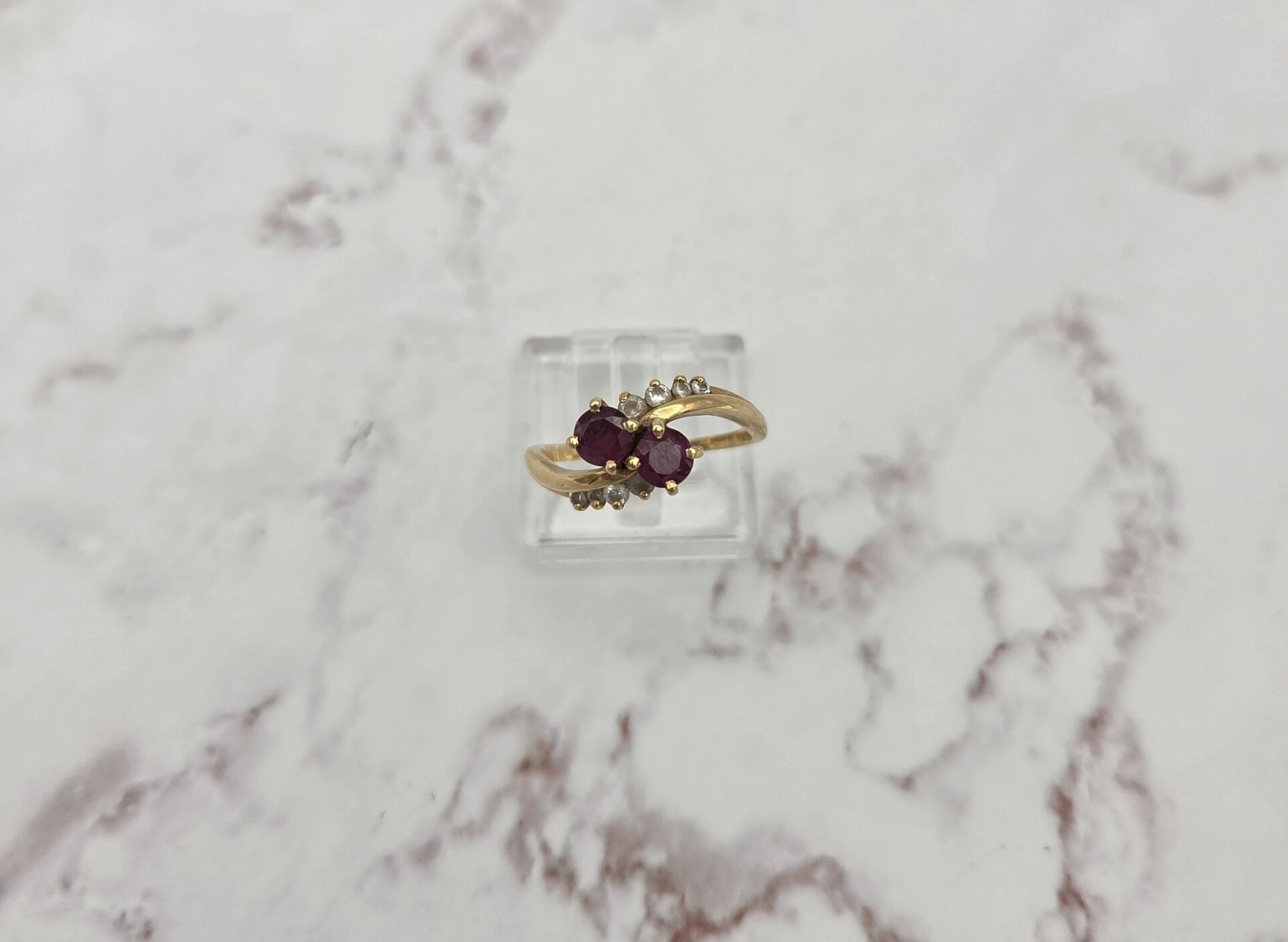 Ring in 750 thousandths yellow gold set with two rubies and eight diamonds - PB: 3.1 g