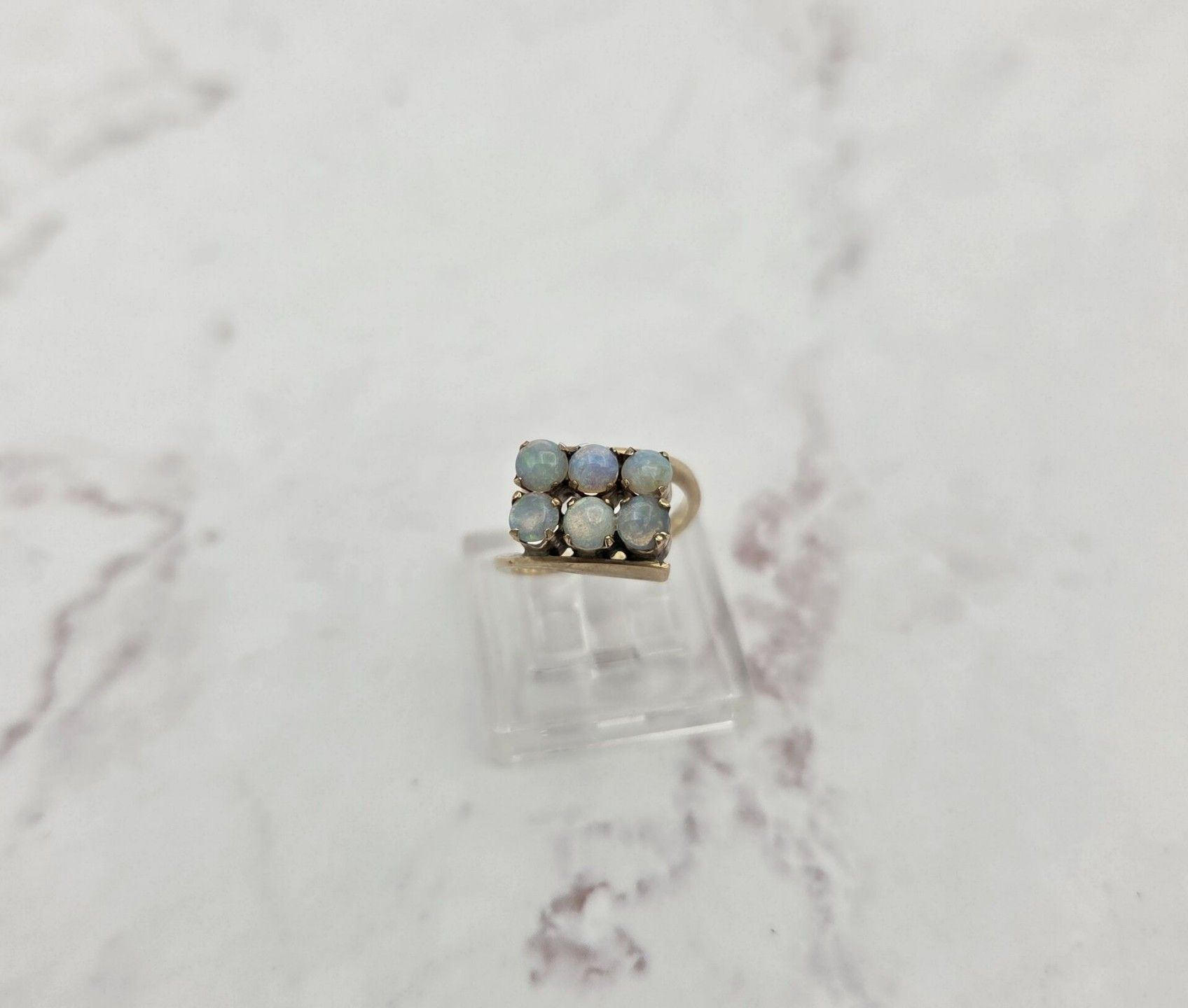 A ring in 375 thousandths gold, set with two rows of opal cabochons - PB: 2.3 g