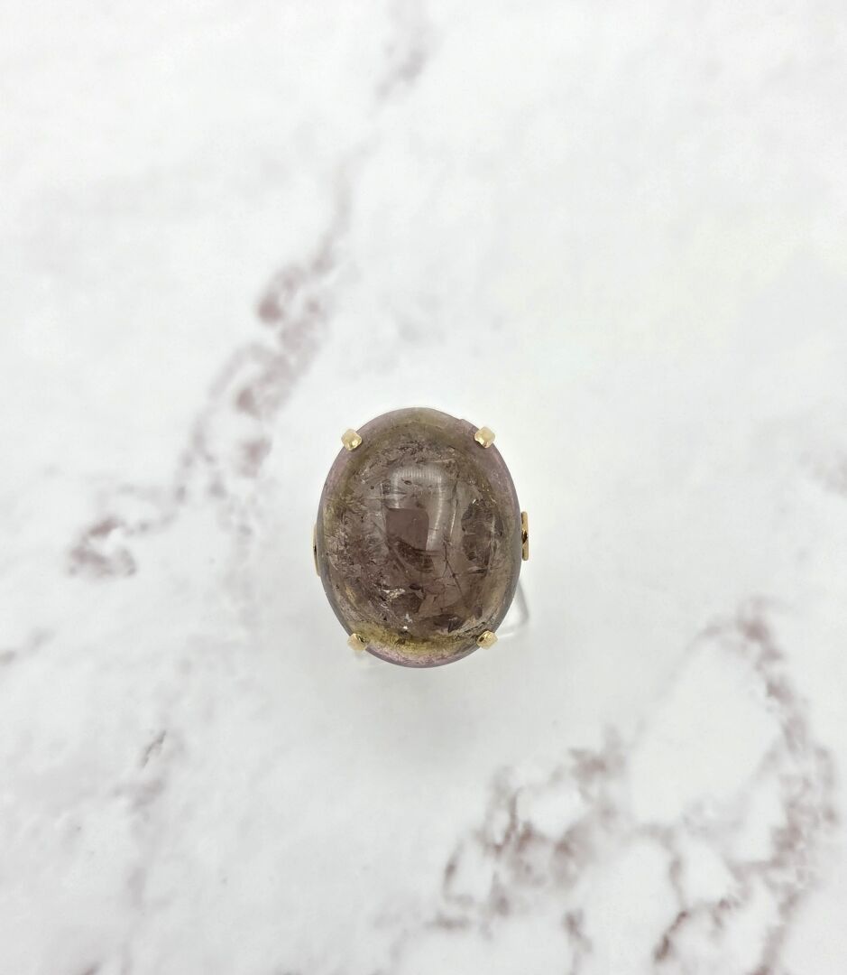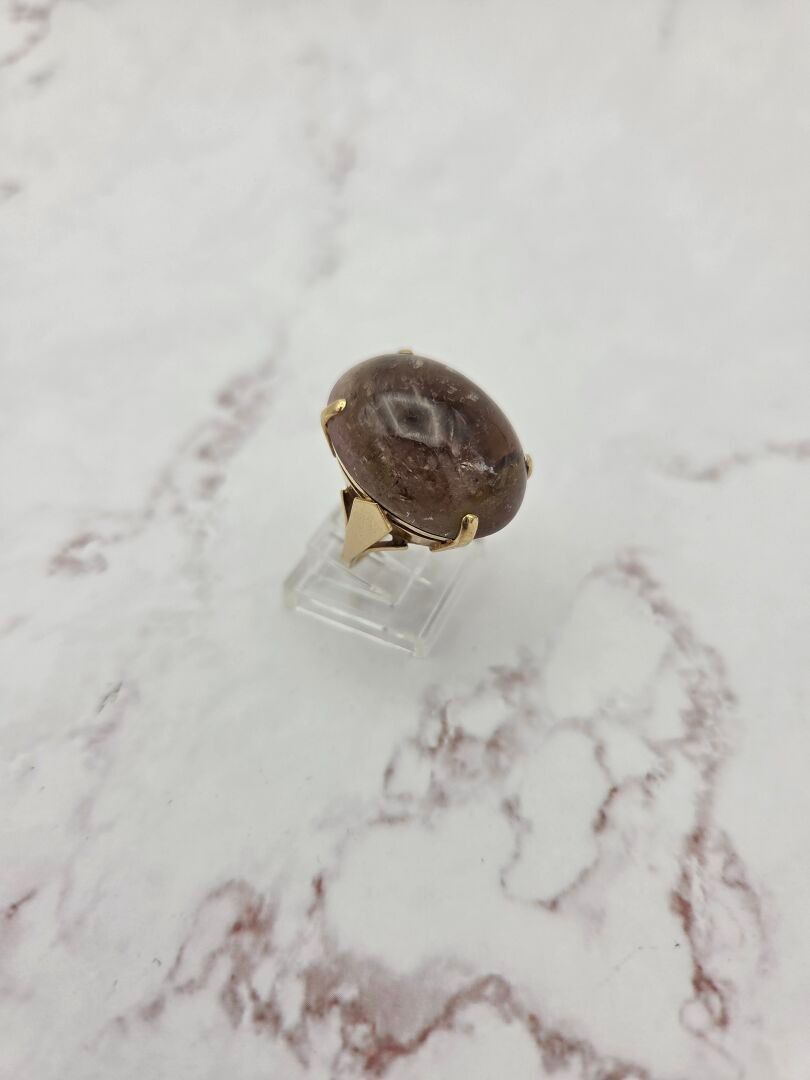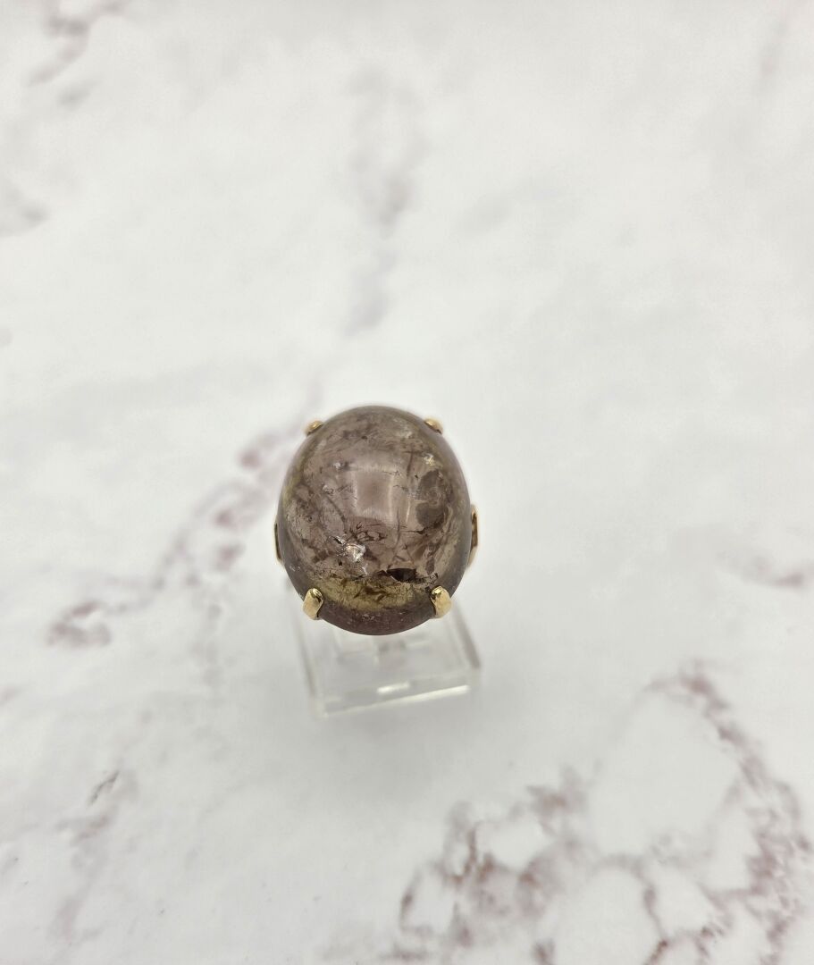 A ring in 750 thousandths gold, set with a cabochon of quartz with inclusions - PB: 13.1 g (quartz damaged)